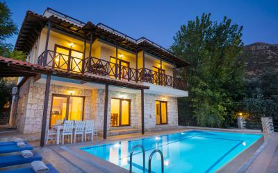 Kalkan Denize Yakın Balayı Villaları: Kalkan’ın meşhur koylarına yürüme mesafesinde, modern mimarinin lüks detaylarla buluştuğu aşk yuvaları.
