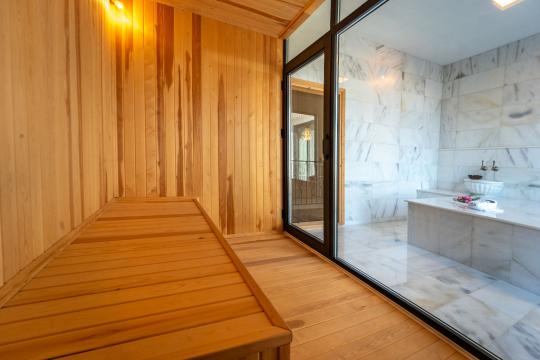 Balayım Villada ayrıcalığıyla deneyimleyeceğiniz bu eşsiz evde, size özel sunulan geleneksel Türk hamamı, sauna ve ebeveyn yatak odasında yer alan şık jakuzi, tatilinizi bir tazelenme şölenine dönüştürüyor. Düğün yorgunluğunu ya da yılın stresini bu size özel spa alanlarında atarken, aşkınızı doğanın kalbinde yeniden keşfedeceksiniz.