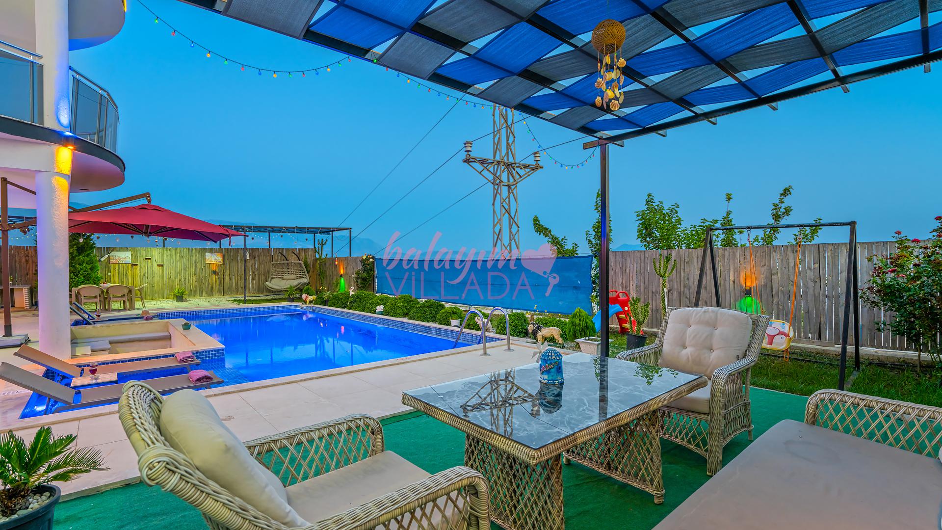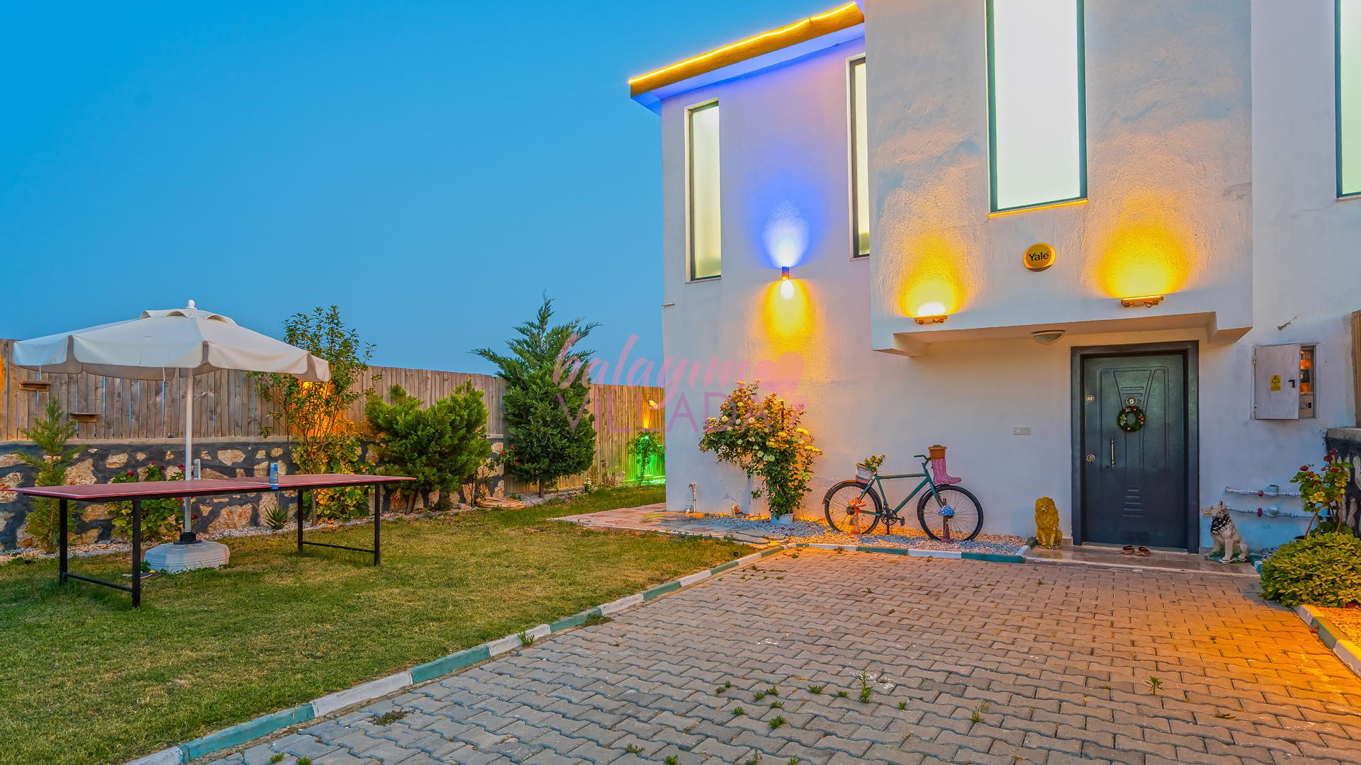 Size Özel İzole Bir Dünya: Villamızın en büyük farkı olan geniş bahçesi ve havuz alanı mükemmel bir tatil sunar ve havuzu mahremiyet esas alınarak tasarlanmıştır. Dış dünyadan tamamen izole bu bahçede, eşinizle baş başa salıncağın ve havuzun tadını çıkarabilirsiniz.