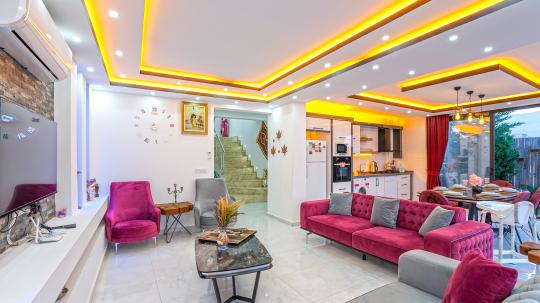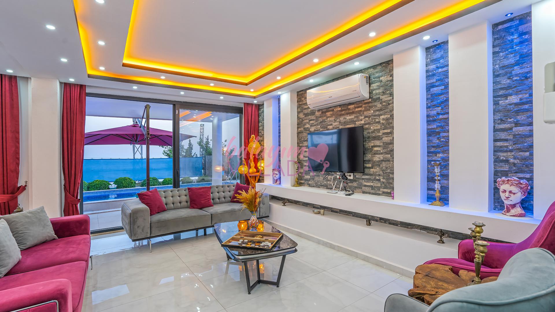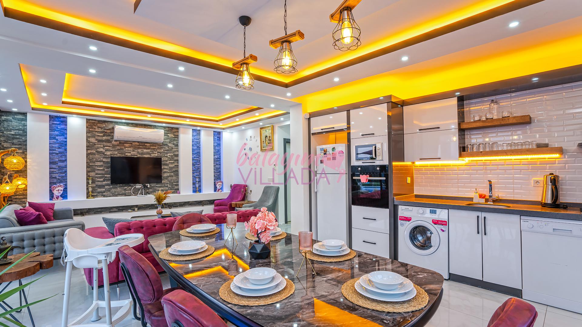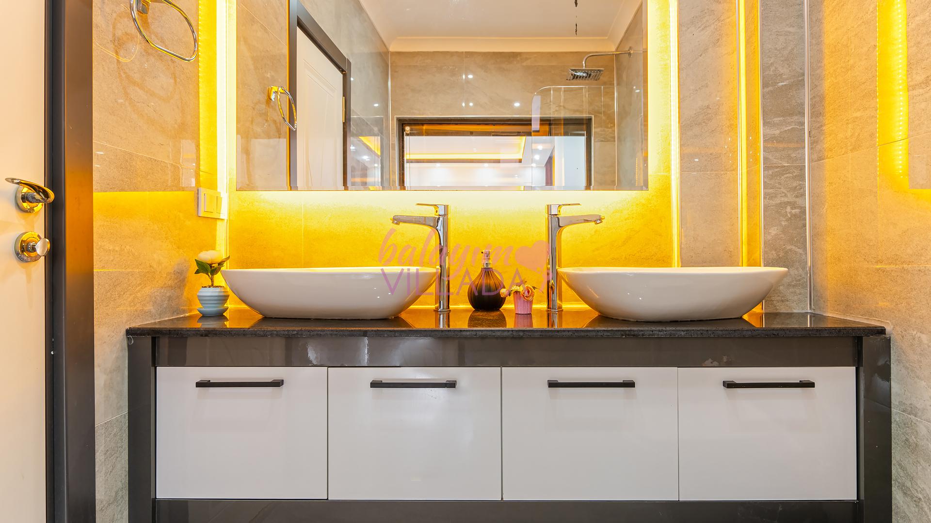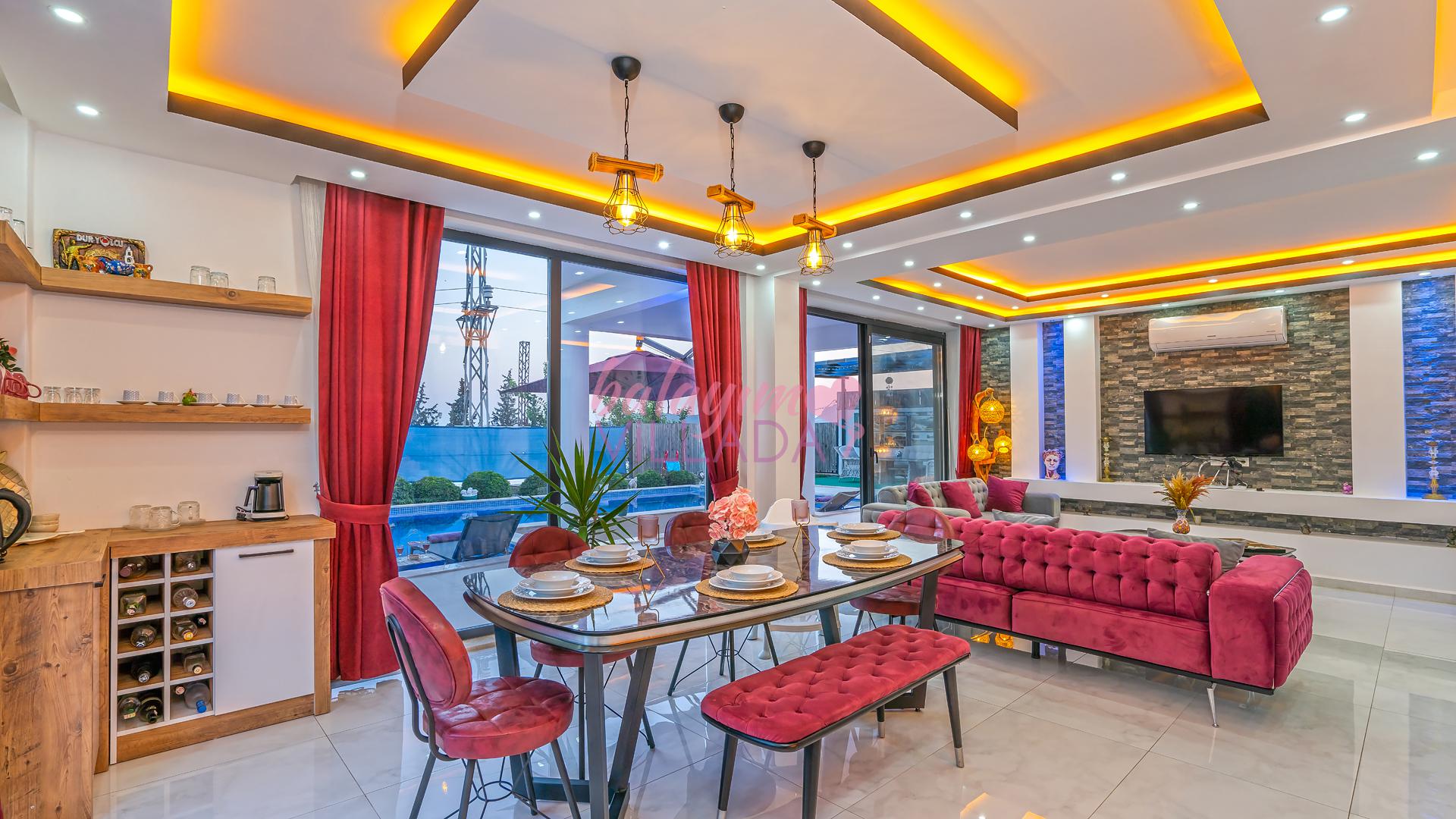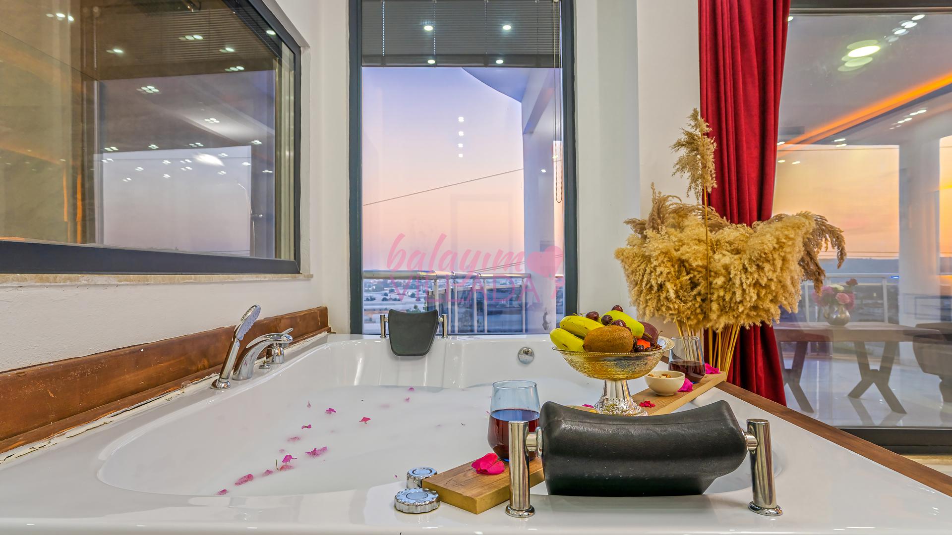 Romantik Detaylarla Arınma: Ebeveyn yatak odasında yer alan şık jakuzi, tatilinizi bir spa deneyimine dönüştürürken; villanın modern tasarımı her anınızı özel hissettirecek.