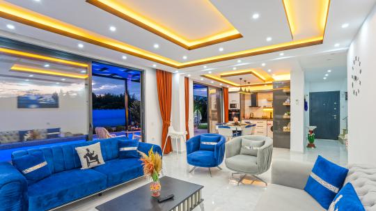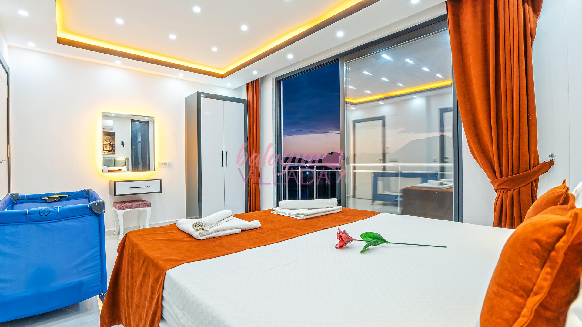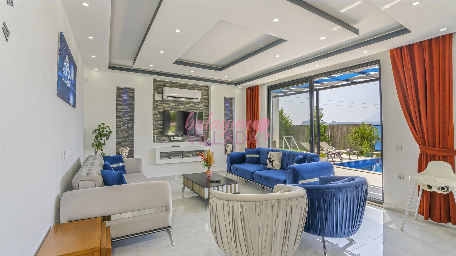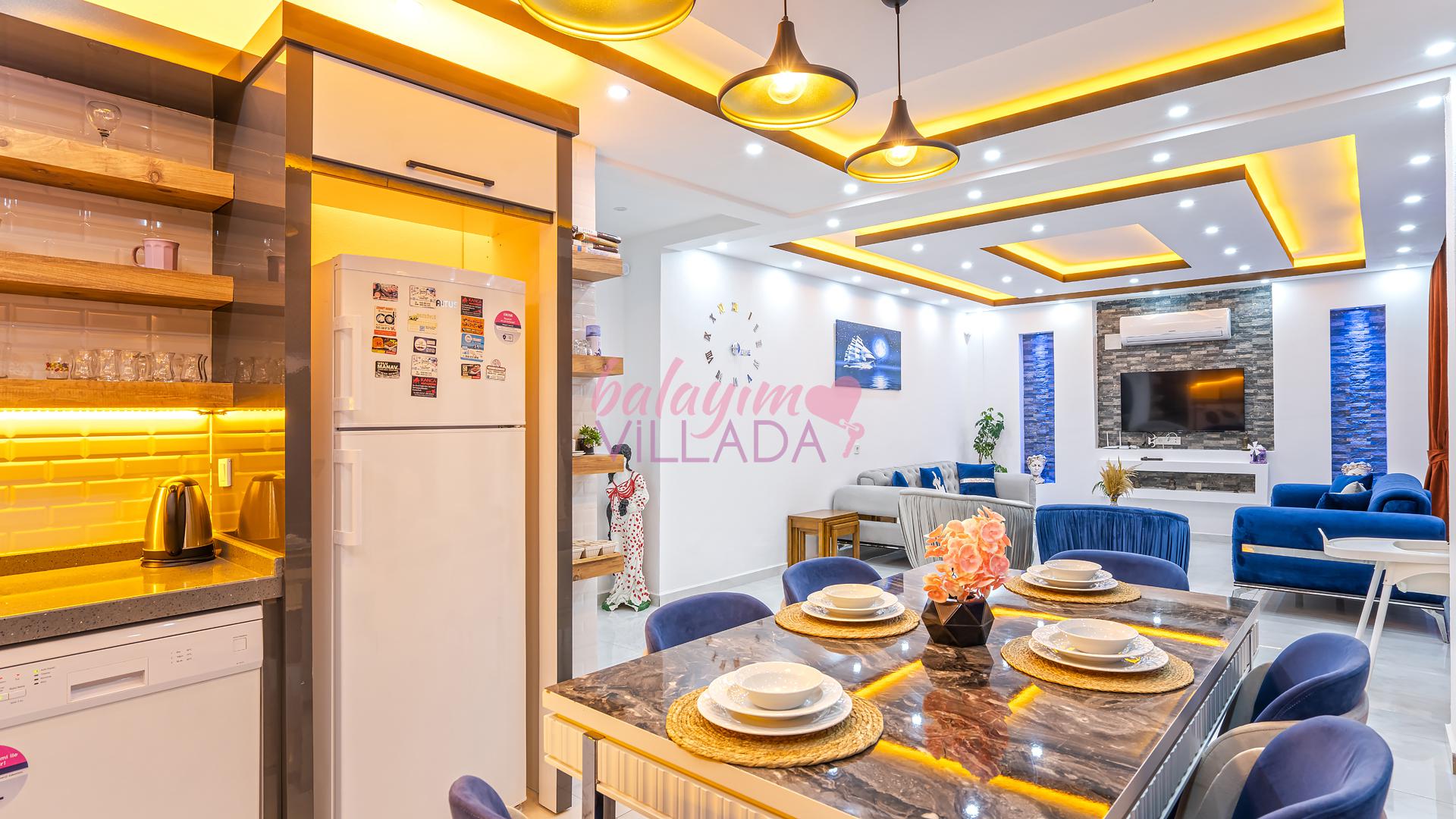 Modern ve Ferah Tasarım: Şık mobilyalarla döşenmiş iç mekanları ve geniş bahçe alanı ile balayınızda konforu ve lüksü her an hissedeceksiniz.