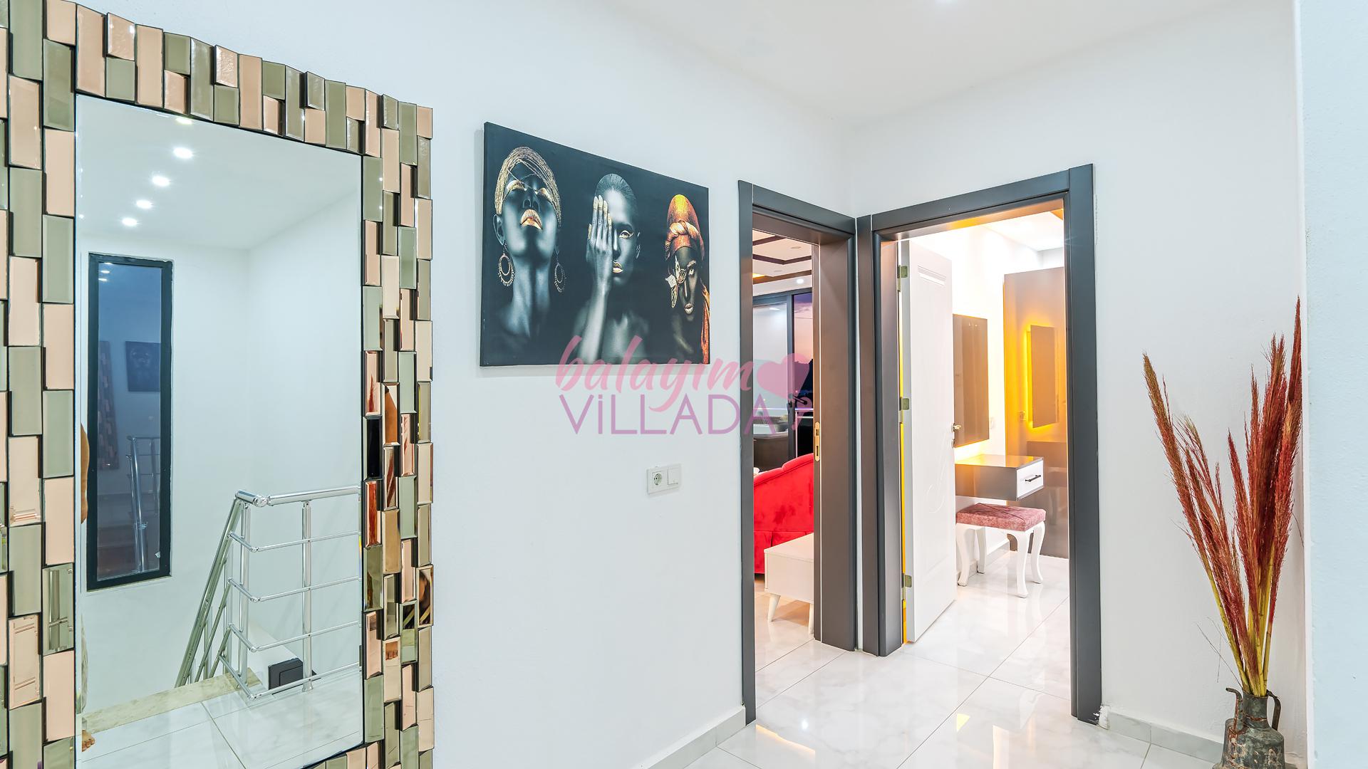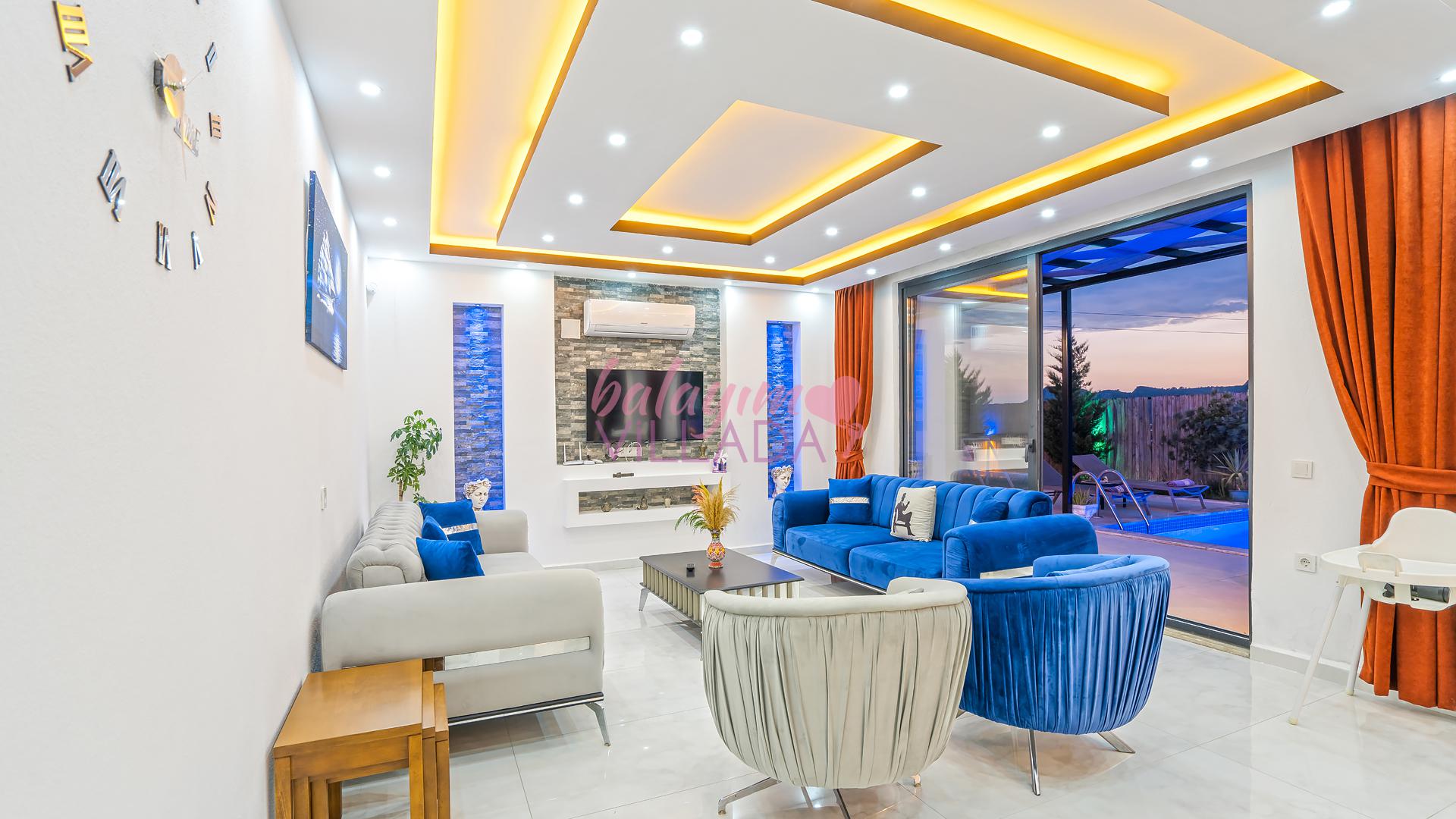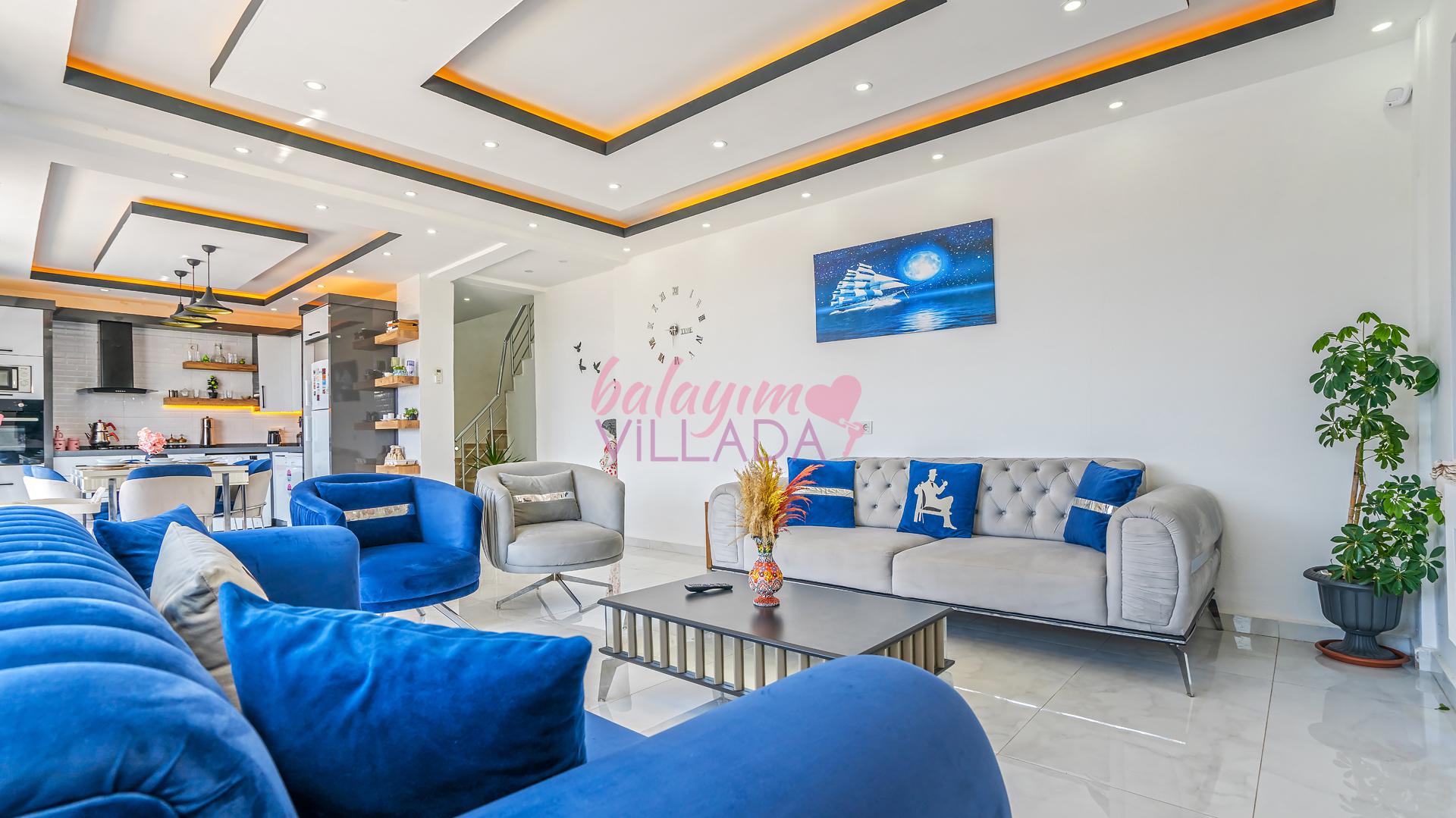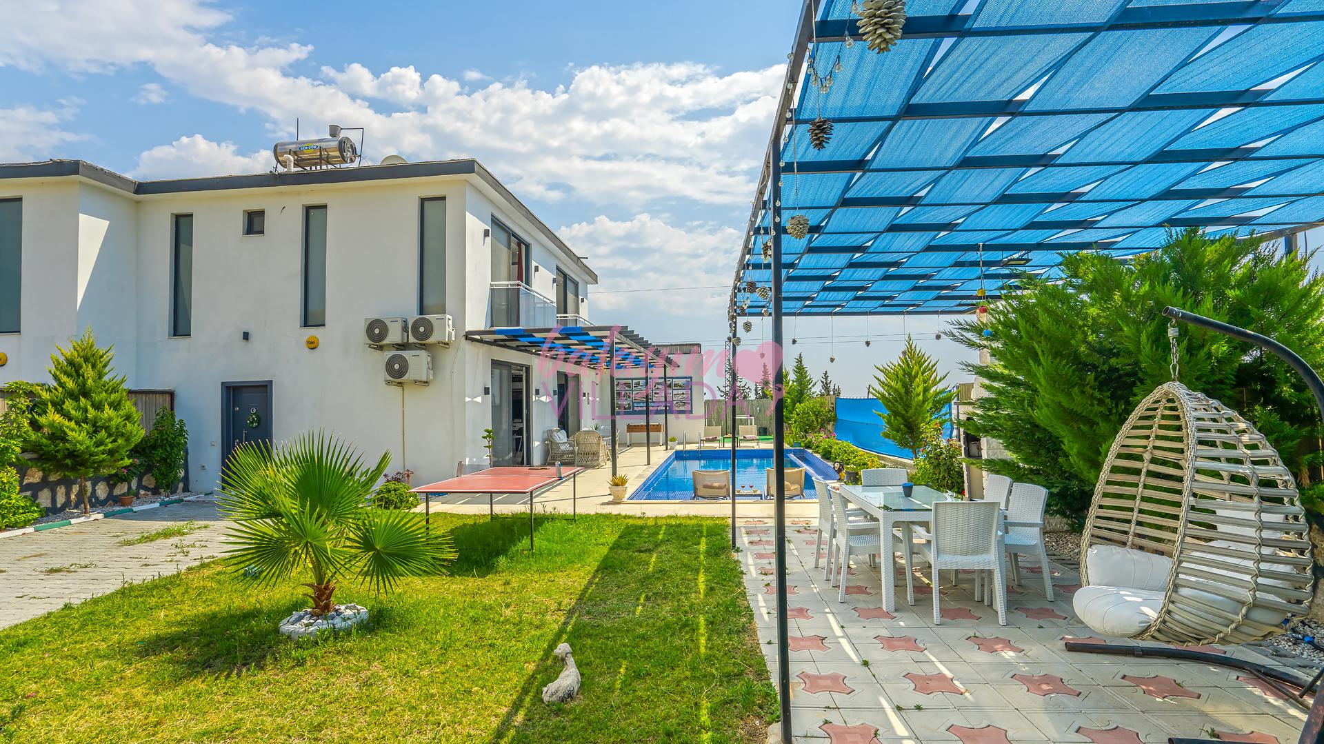 Modern ve Ferah Tasarım: Şık mobilyalarla döşenmiş iç mekanları ve geniş bahçe alanı ile balayınızda konforu ve lüksü her an hissedeceksiniz.