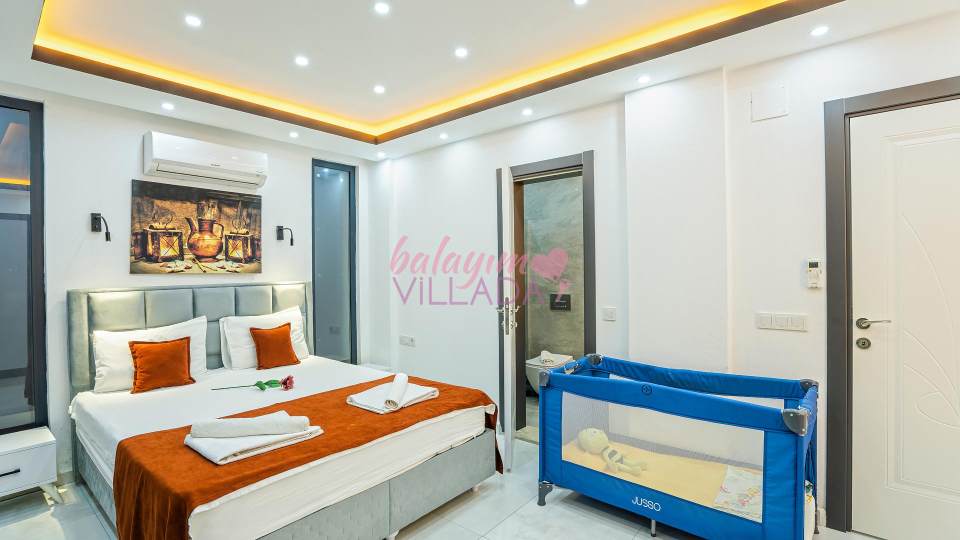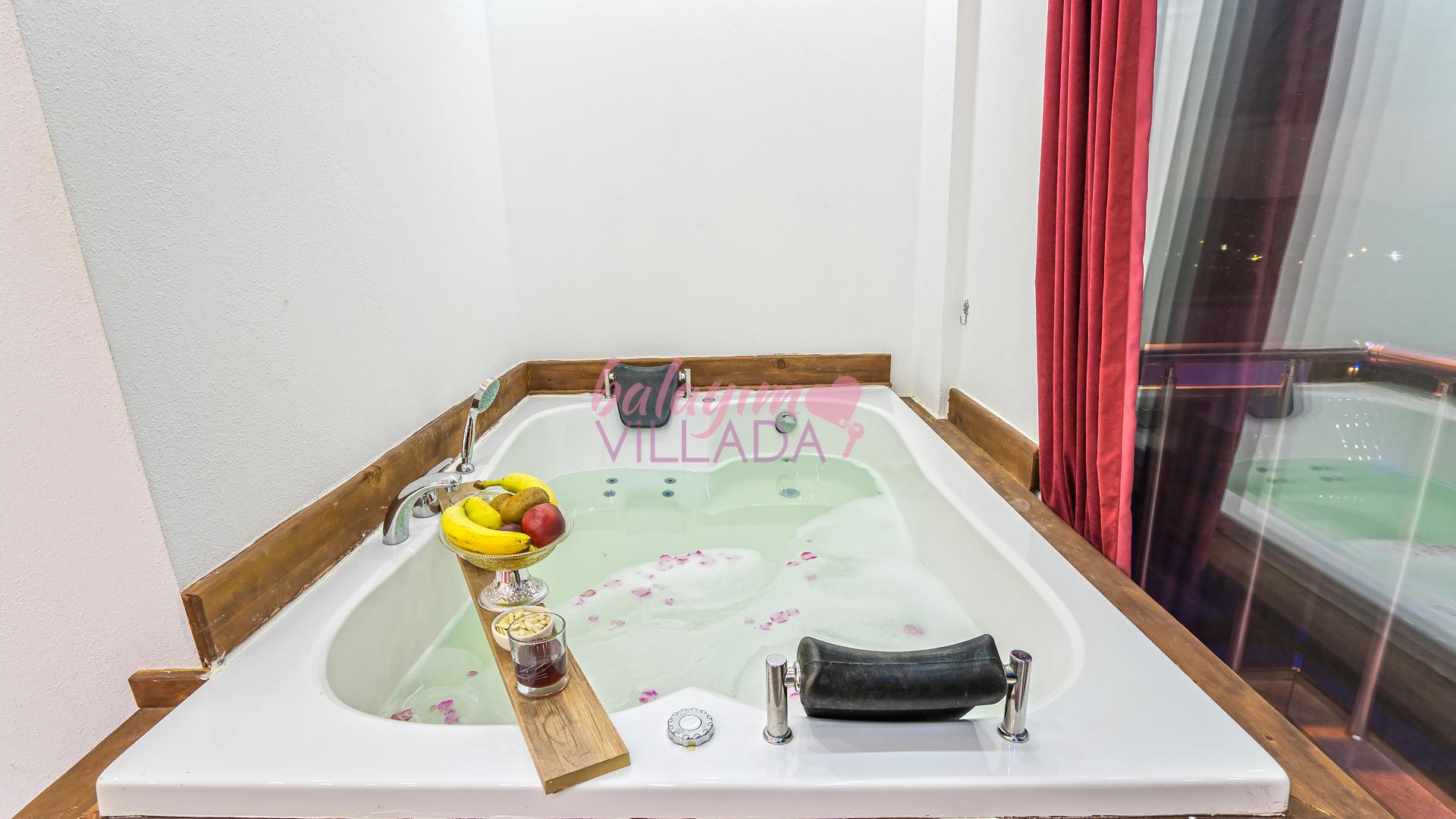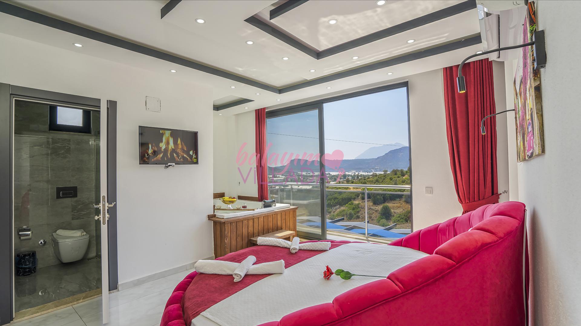 Romantik Jakuzi Keyfi: Ebeveyn yatak odasında yer alan şık jakuzi, gün boyu süren tatlı yorgunluğunuzu romantik bir atmosferde atmanız için sizi bekliyor.