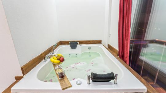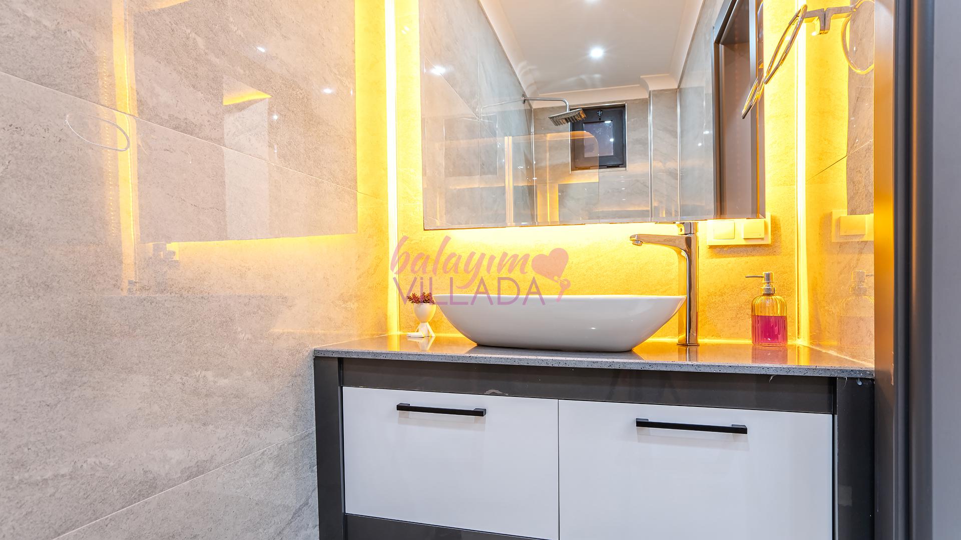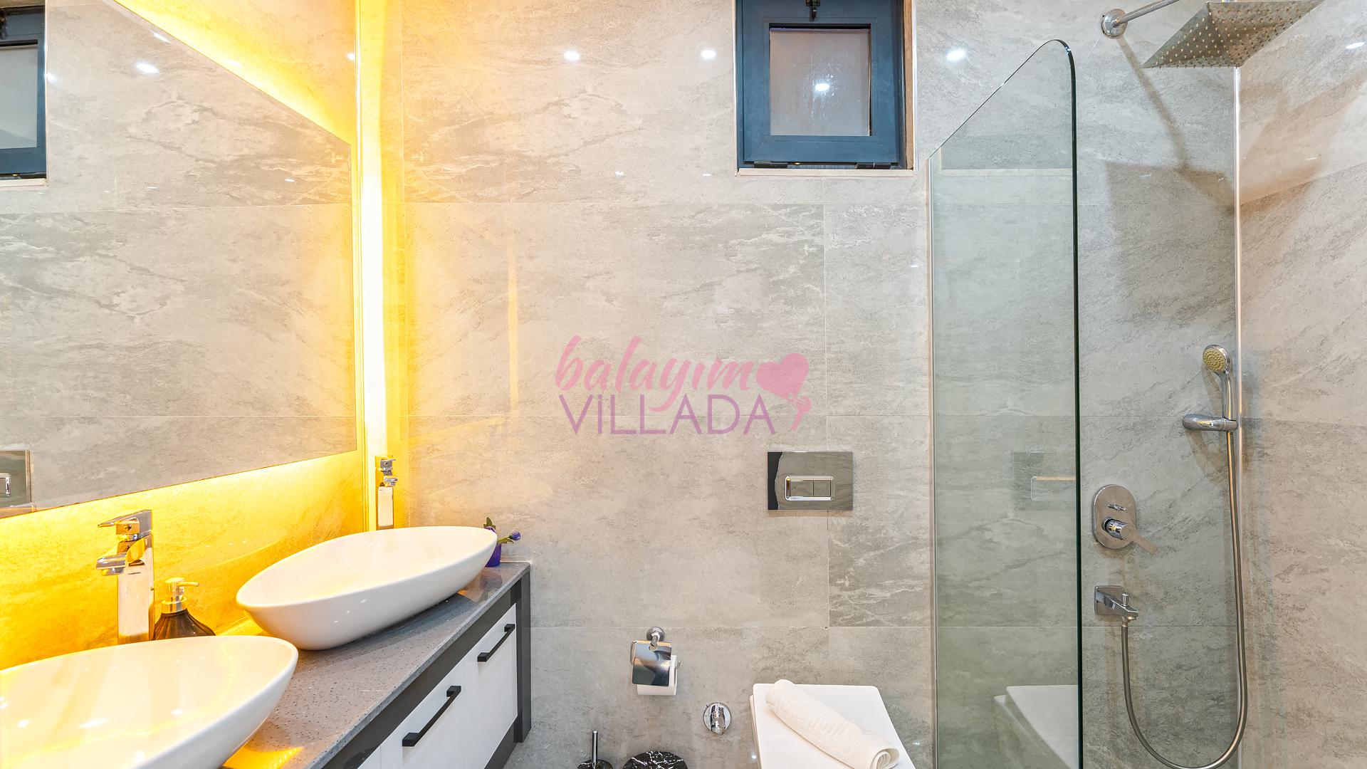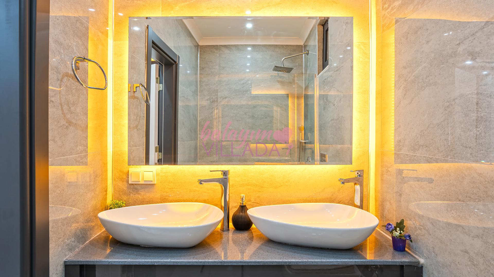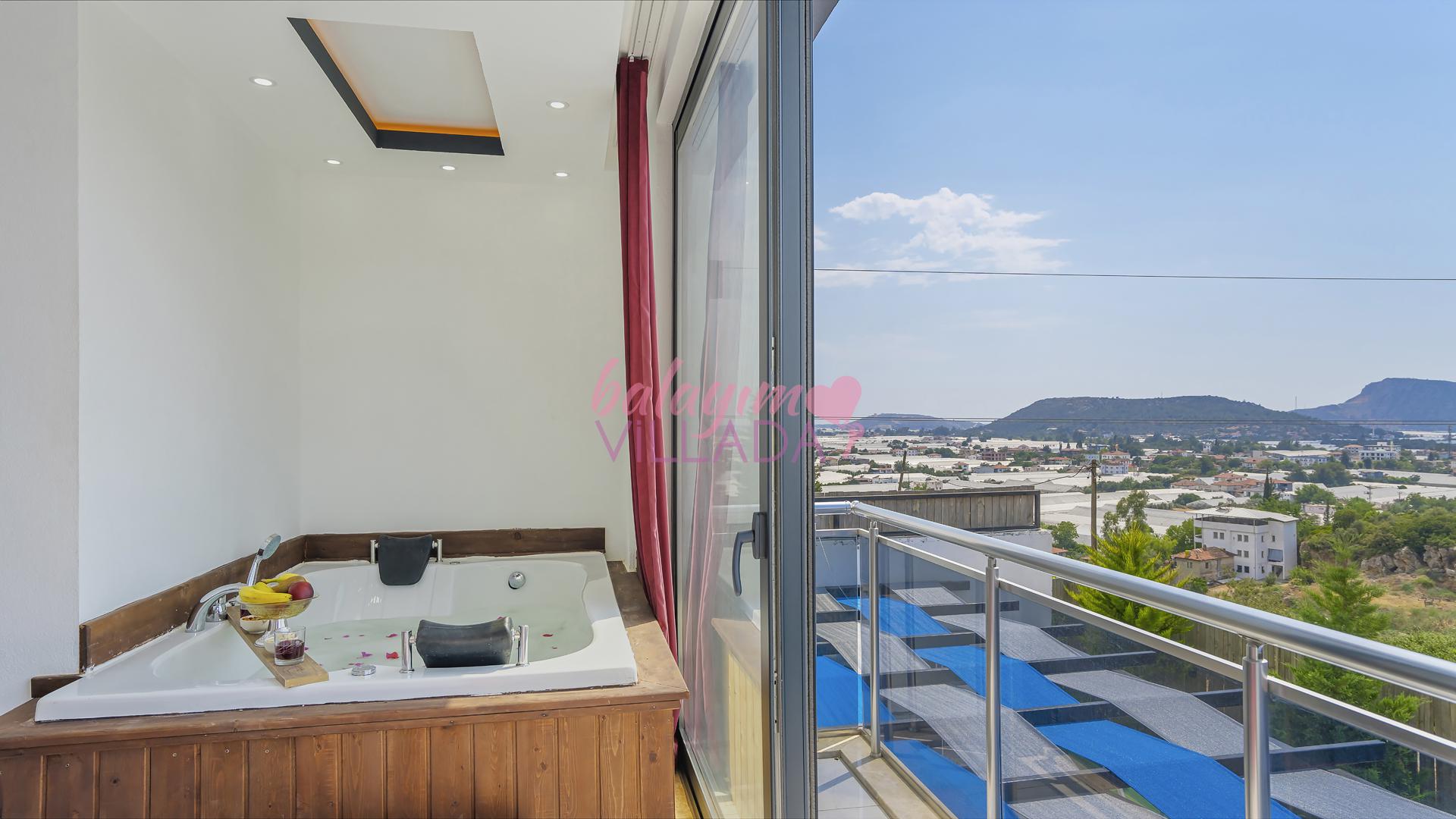 Romantik Jakuzi Keyfi: Ebeveyn yatak odasında yer alan şık jakuzi, gün boyu süren tatlı yorgunluğunuzu romantik bir atmosferde atmanız için sizi bekliyor.