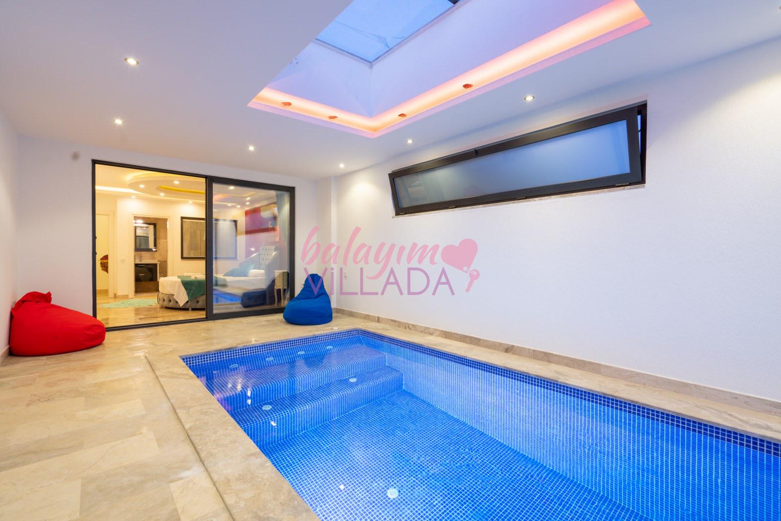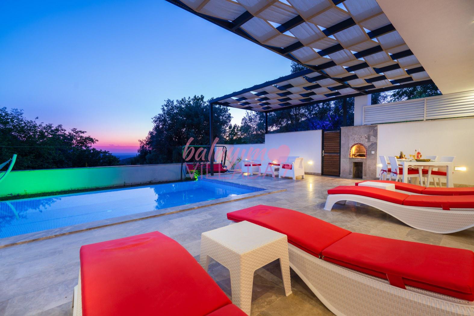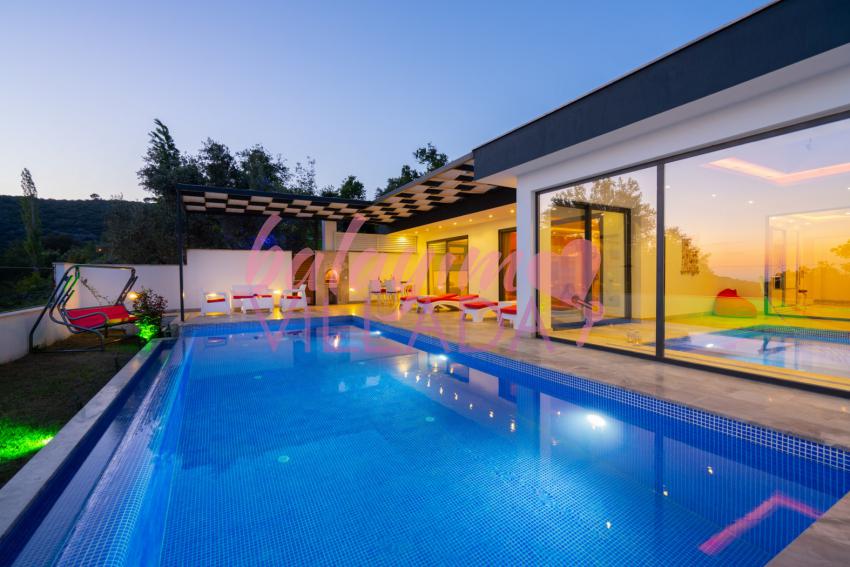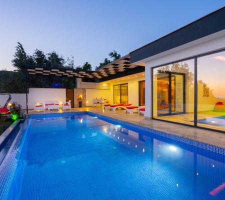 Villa Aşkım, baş başa romantik bir tatile çıkmak isteyen misafirlerimiz için doğa içinde oldukça keyifli bir bölge olan Kalkan Üzümlü Köyü'nde bulunuyor. Geniş ve ferah havuz terası bulunan villamız gözlerden uzak tatil yapmak isteyen misafirlerimiz için uygundur. Havuzu ve terası dışarıdan görülmez. Oldukça şık ve modern bir şekilde tasarlanmış olan villamızda jakuzi, sauna ve kapalı ısıtmalı havuz bulunmaktadır.