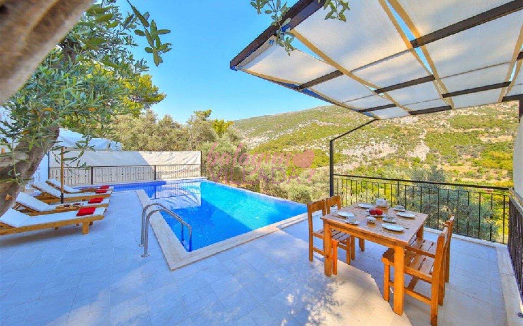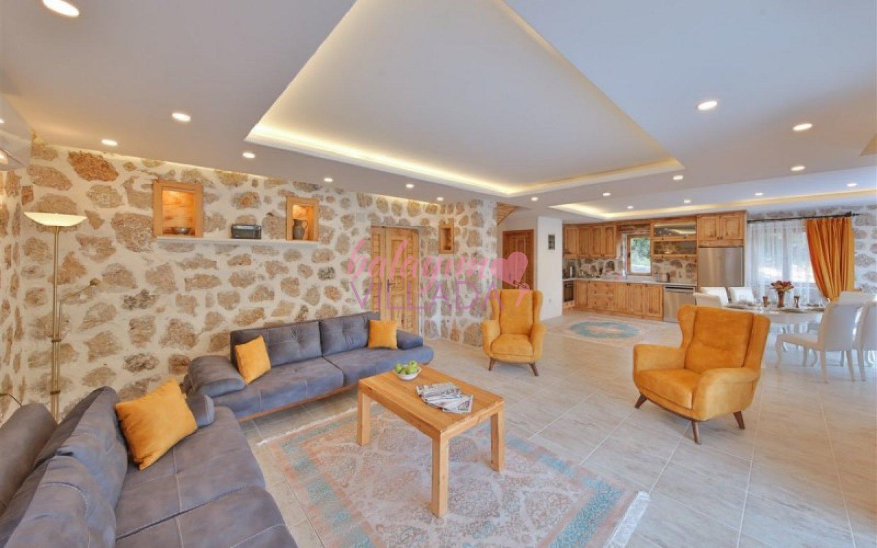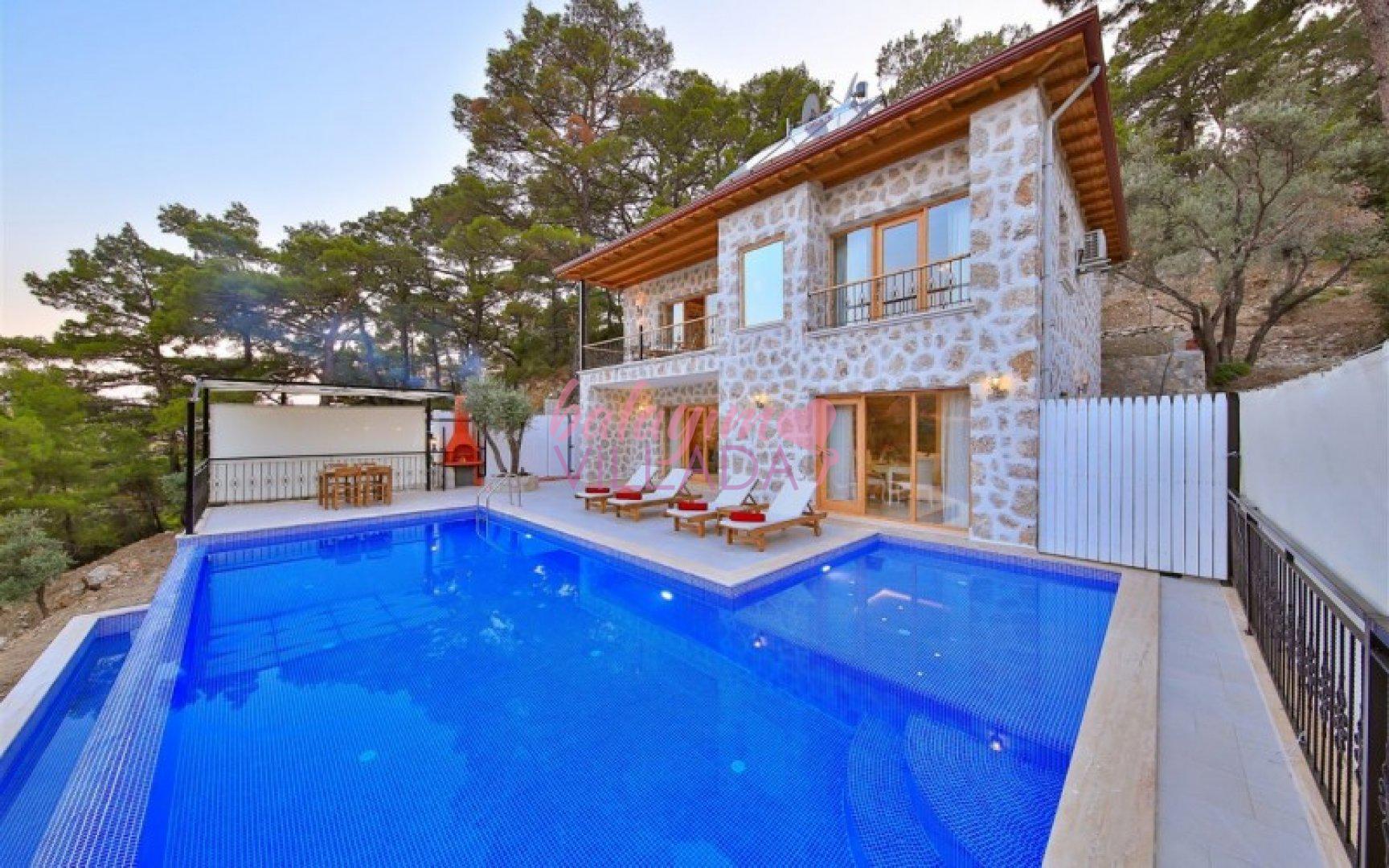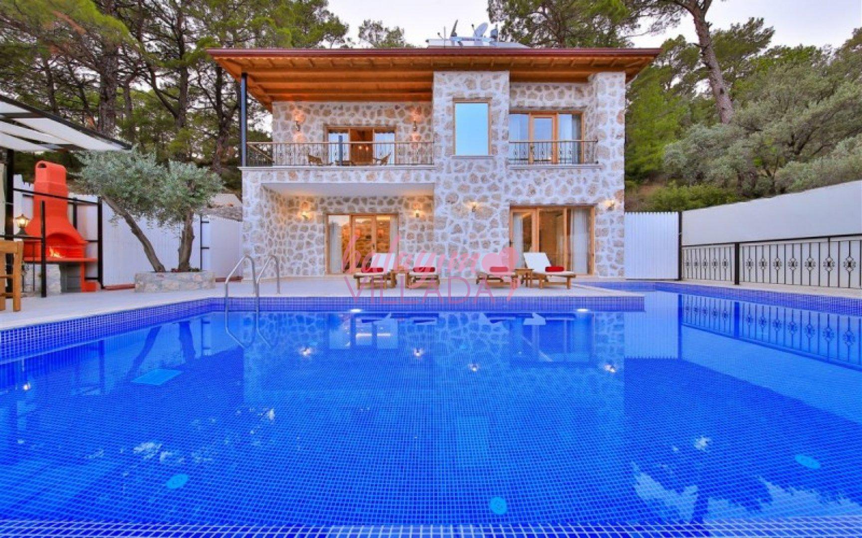 Villa Aslan, Kalkan İslamlar’da bulunan , doğa içerisinde balayı villasıdır. Taş yapısı ve şık dekorasyonu ile keyifli bir tatil imkanı sunan villamızın havuz ve terası dışarıdan görülmez. Bu haliyle muhafazakar misafirlerimiz için oldukça idealdir. İki katlı villamızın zemin katında; havuz terasına açılan, ferah ve modern dizayn edilmiş, doğa manzarasına hakim amerikan mutfak & salon bulunur. Üst katta iki adet yatak odası bulunmaktadır.