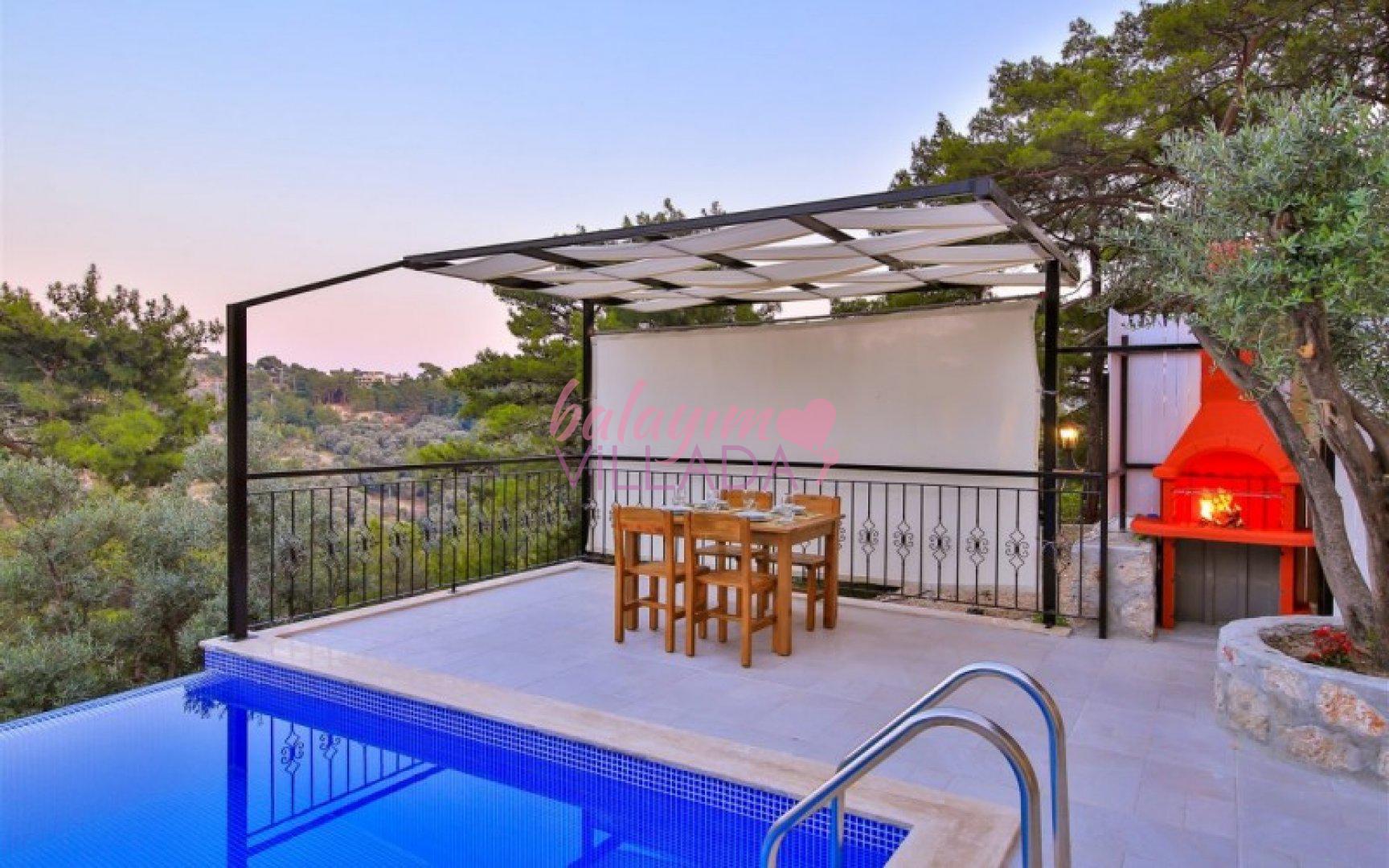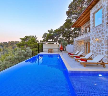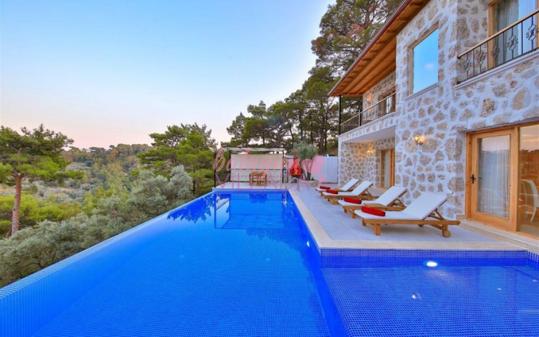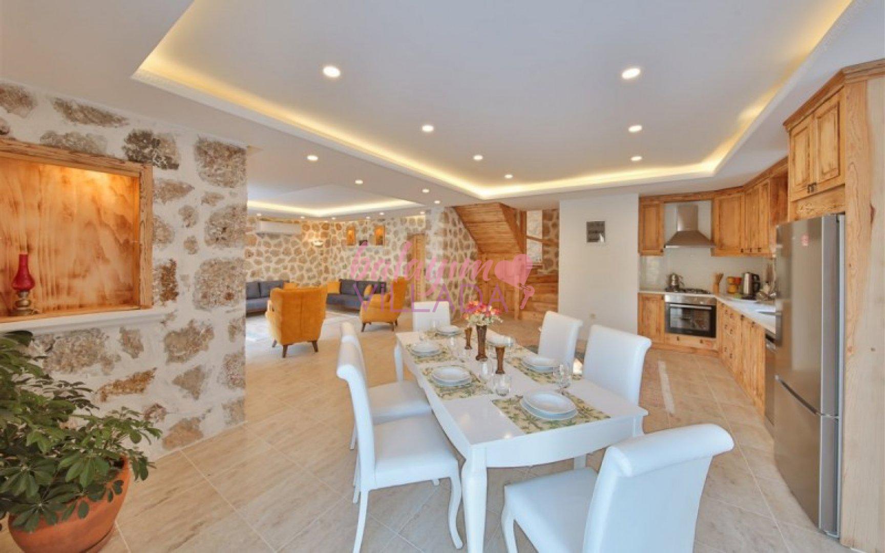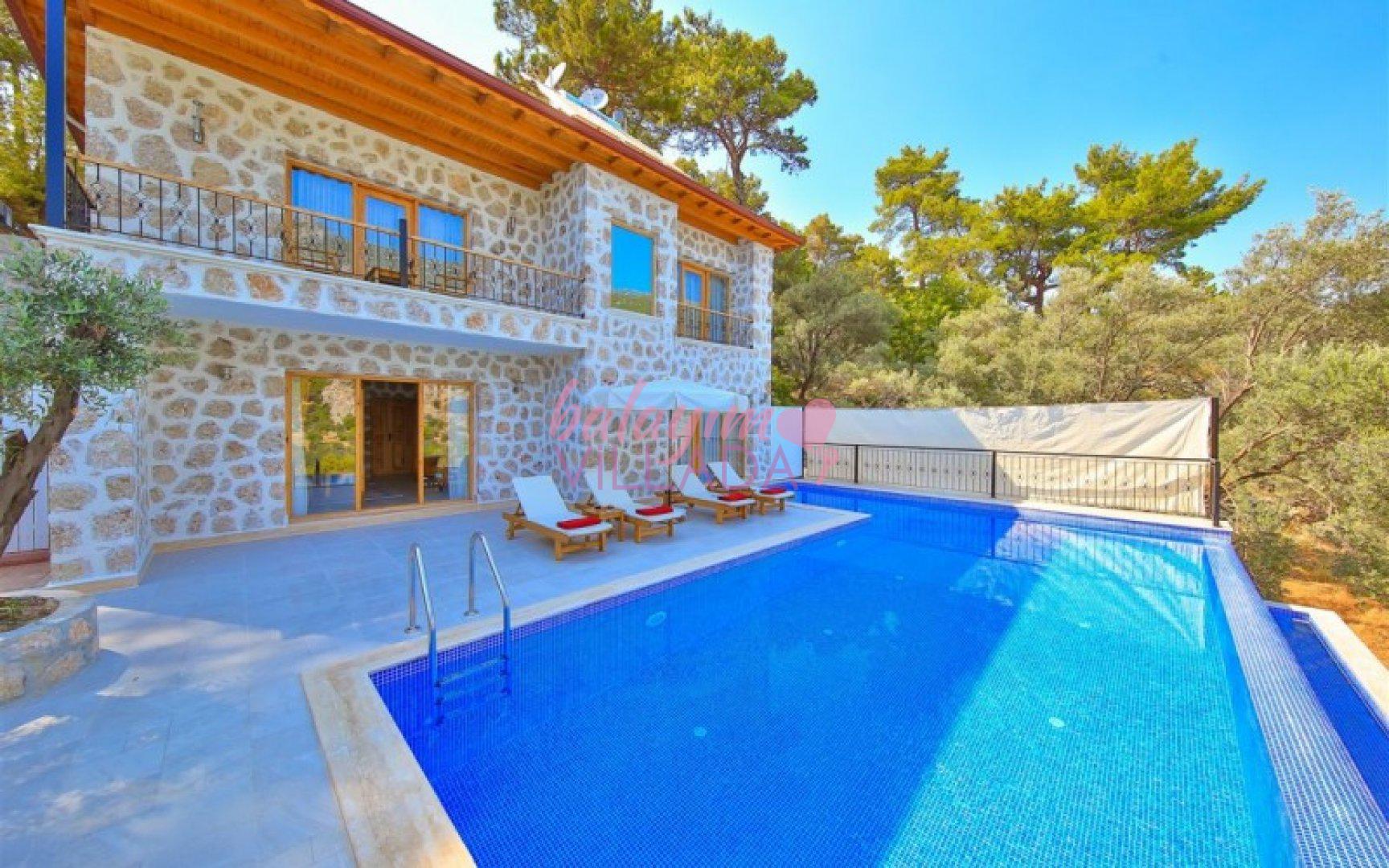 Villa Aslan, Kalkan İslamlar’da bulunan , doğa içerisinde balayı villasıdır. Taş yapısı ve şık dekorasyonu ile keyifli bir tatil imkanı sunan villamızın havuz ve terası dışarıdan görülmez. Bu haliyle muhafazakar misafirlerimiz için oldukça idealdir. İki katlı villamızın zemin katında; havuz terasına açılan, ferah ve modern dizayn edilmiş, doğa manzarasına hakim amerikan mutfak & salon bulunur. Üst katta iki adet yatak odası bulunmaktadır.
