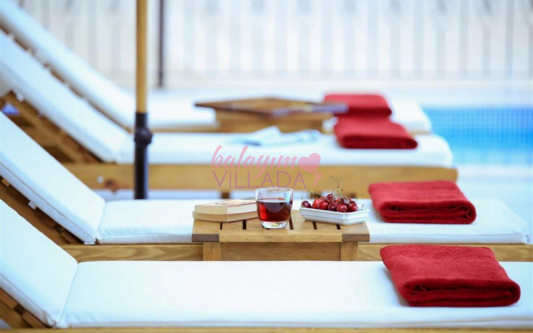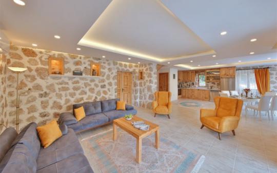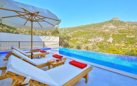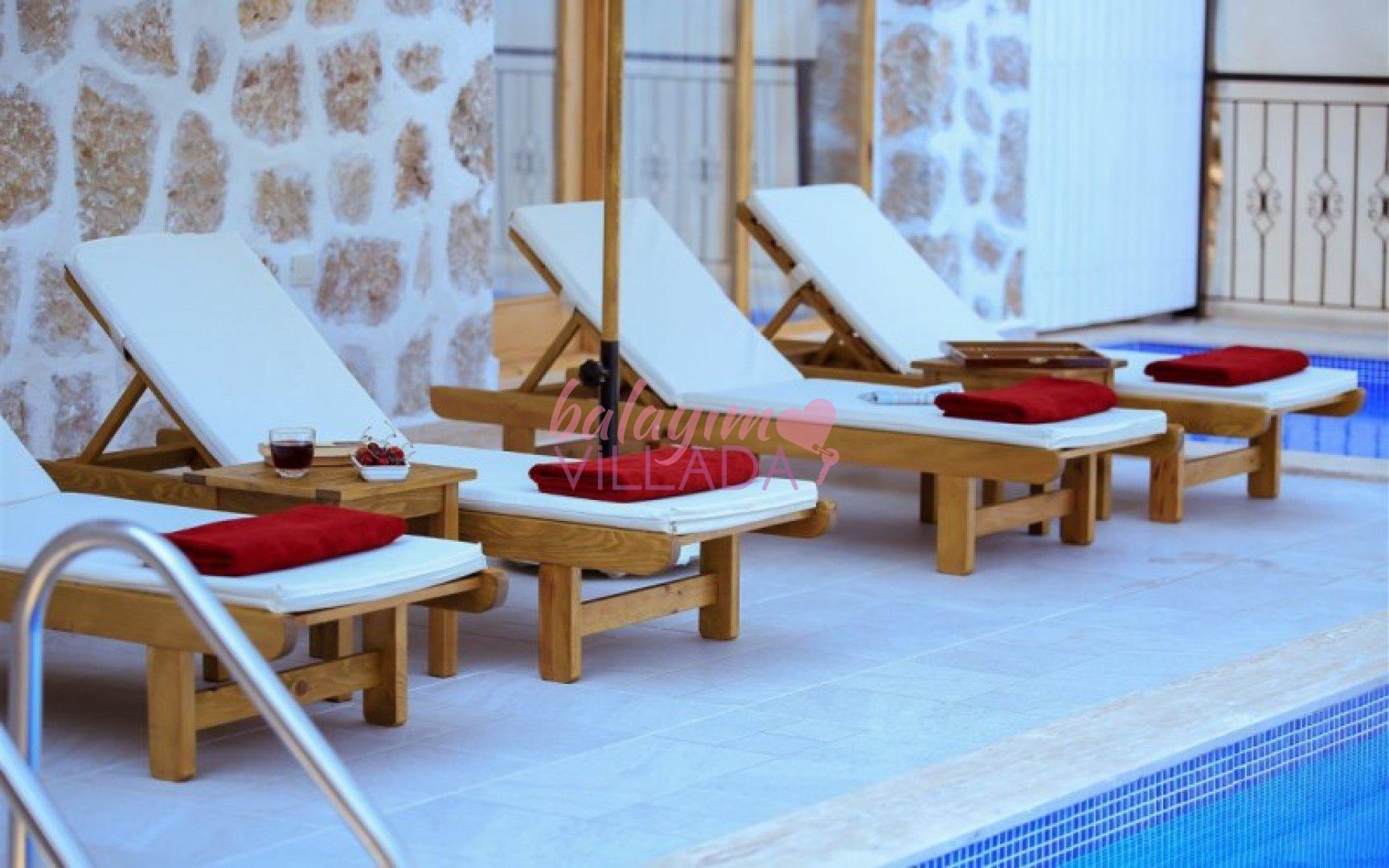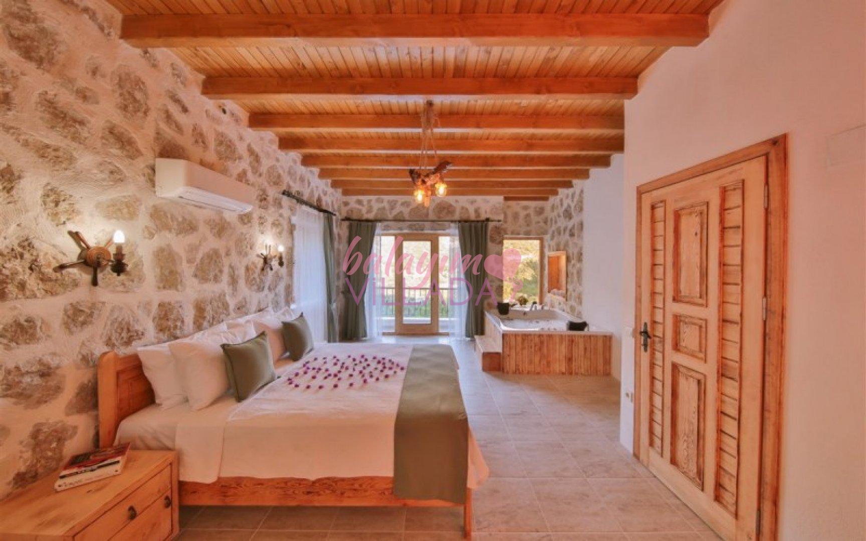 Villa Aslan, Kalkan İslamlar’da bulunan , doğa içerisinde balayı villasıdır. Taş yapısı ve şık dekorasyonu ile keyifli bir tatil imkanı sunan villamızın havuz ve terası dışarıdan görülmez. Bu haliyle muhafazakar misafirlerimiz için oldukça idealdir. İki katlı villamızın zemin katında; havuz terasına açılan, ferah ve modern dizayn edilmiş, doğa manzarasına hakim amerikan mutfak & salon bulunur. Üst katta iki adet yatak odası bulunmaktadır.