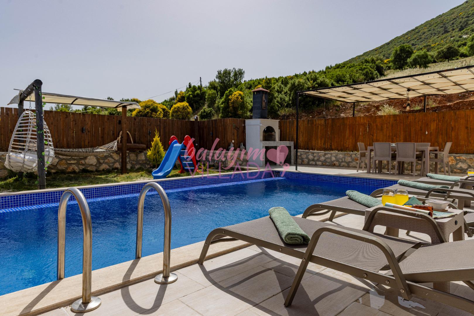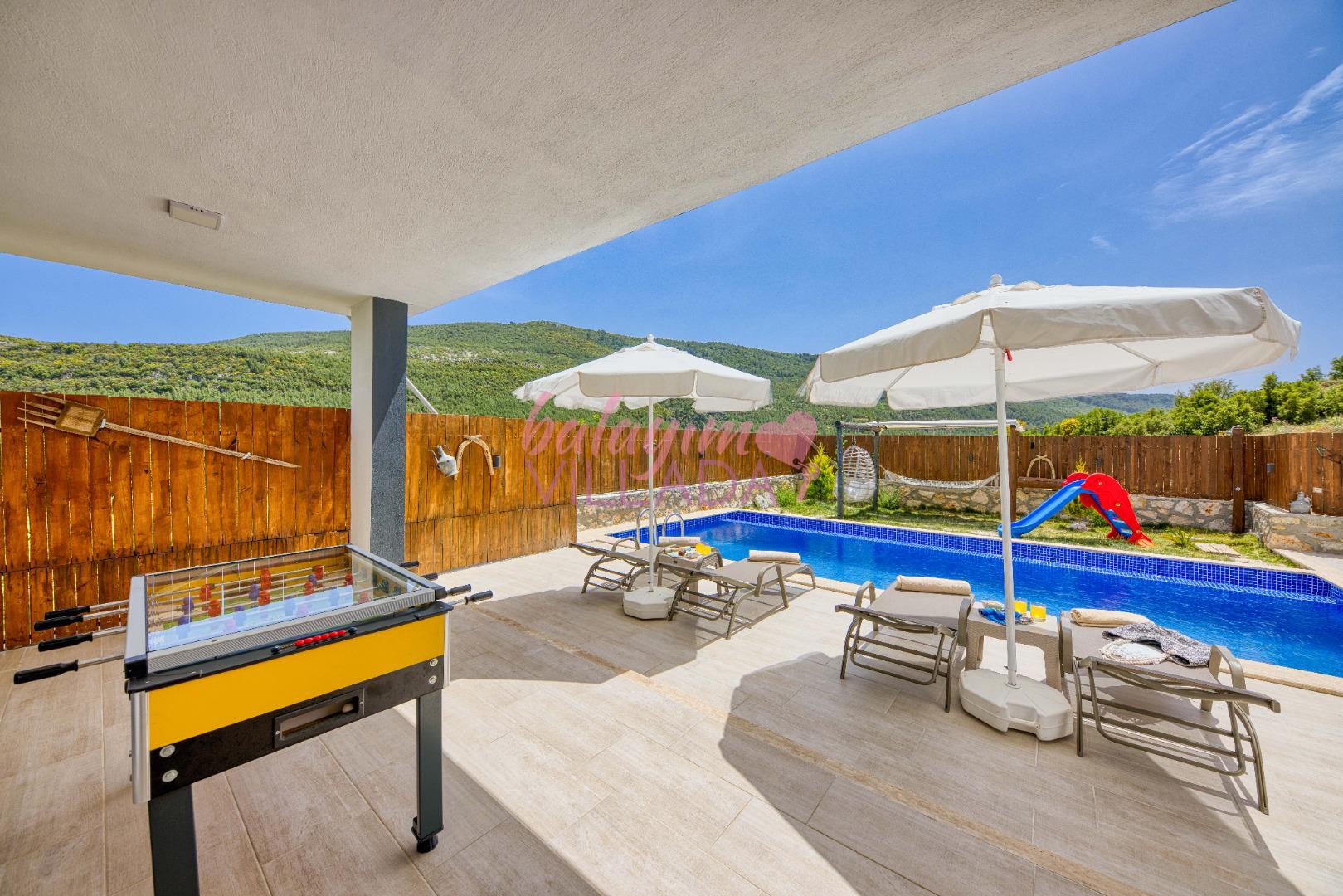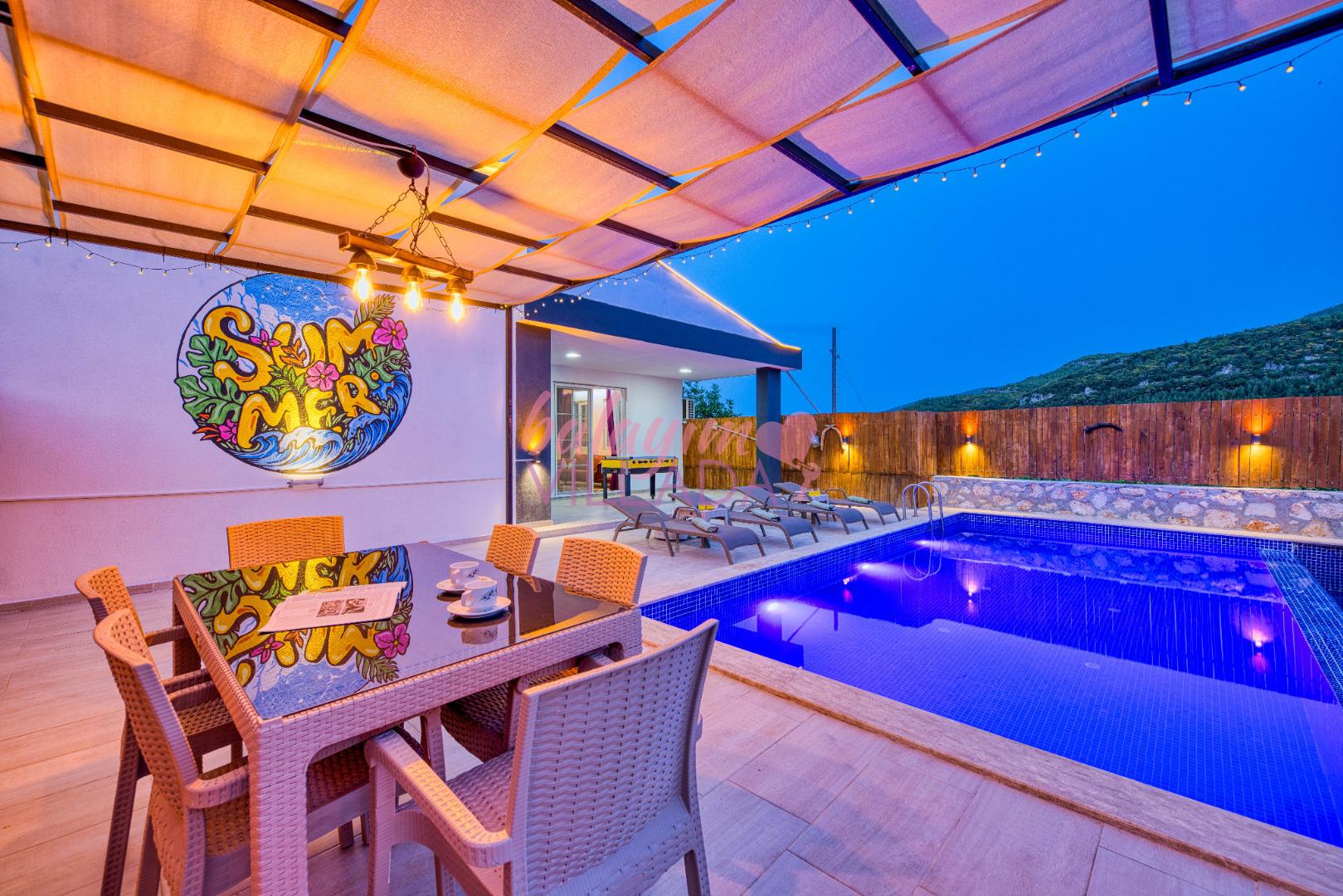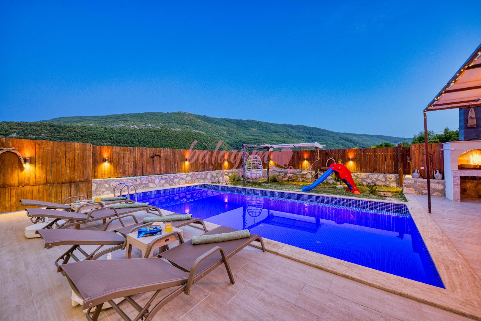 Villa Atakan Hacıoğlan, Kalkan Hacıoğlan mevkiinde bulunan havuzu korunaklı kiralık balayı villamızdır. Havuzunun korunaklı olması sayesinde gözlerden uzakta tatil yapmak isteyen çiftlerimiz için ideal bir seçenektir. Doğa içerisinde konumu olan villamı Kalkan merkeze yaklaşık 25-30 dk uzaklıktadır.