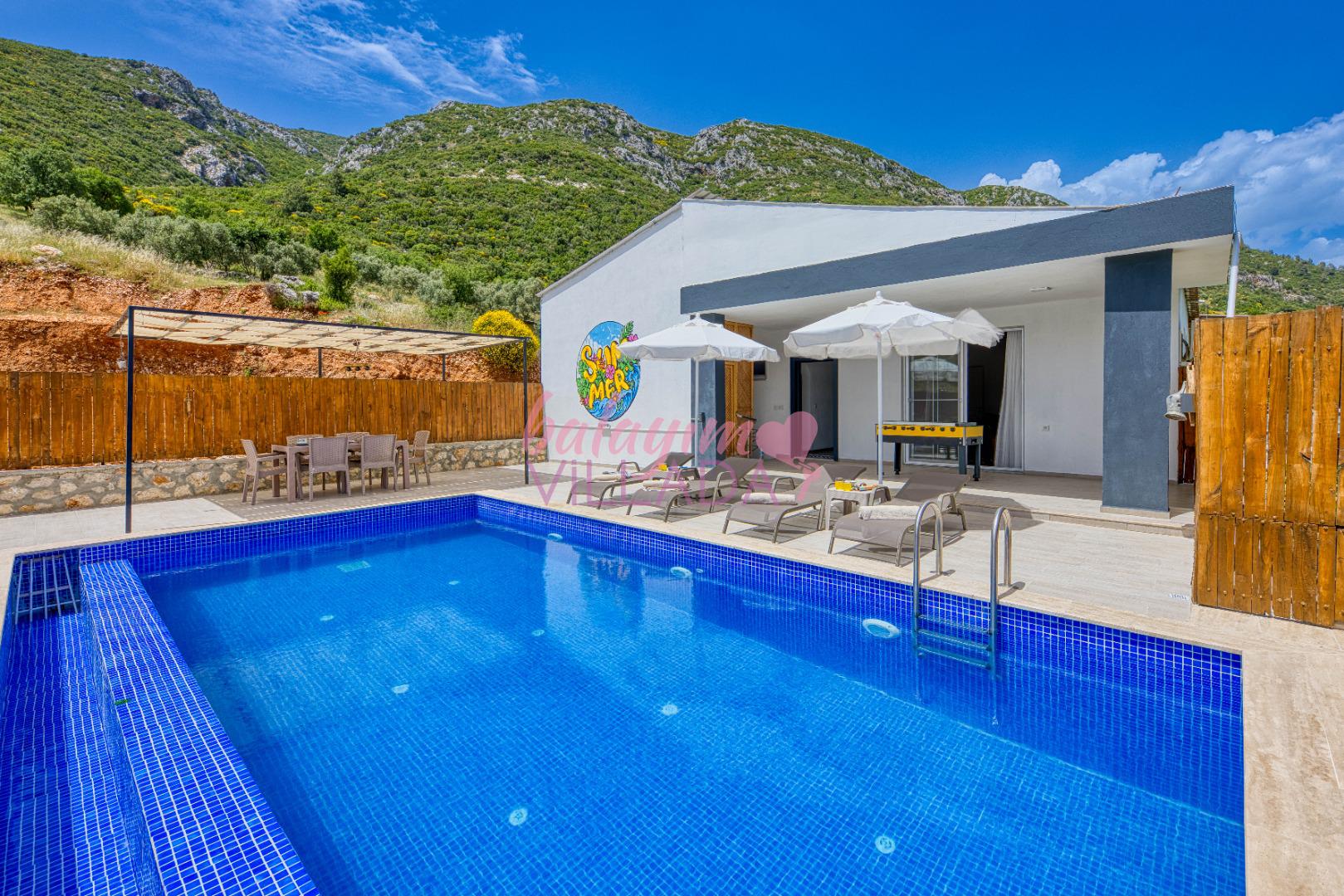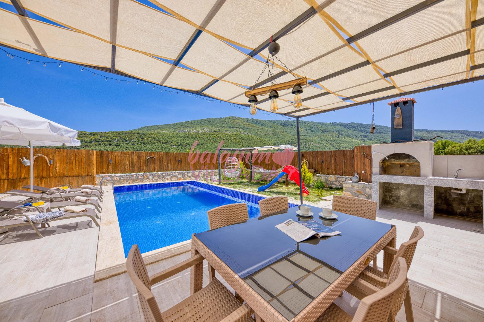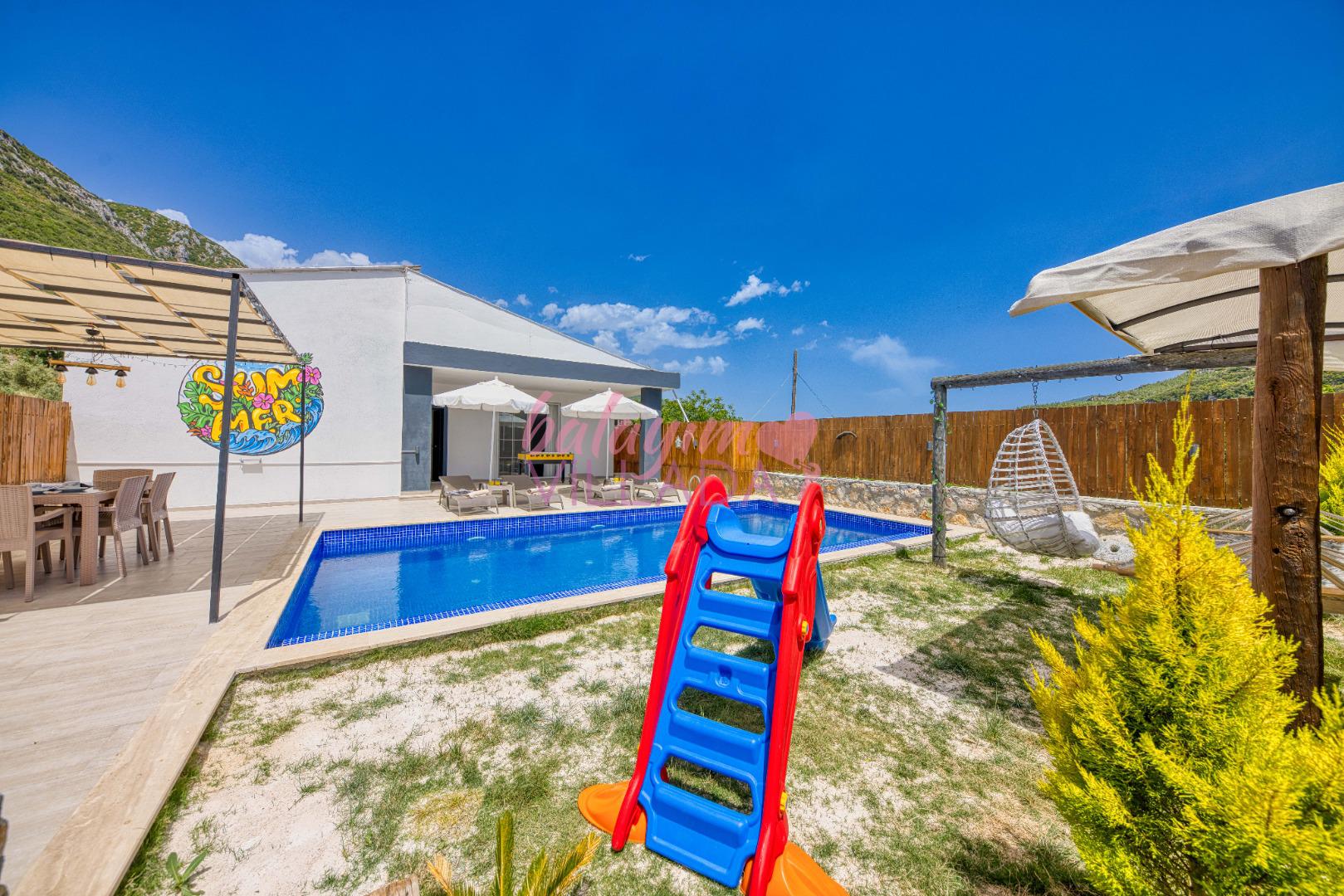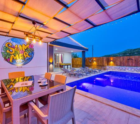 Villa Atakan Hacıoğlan, Kalkan Hacıoğlan mevkiinde bulunan havuzu korunaklı kiralık balayı villamızdır. Havuzunun korunaklı olması sayesinde gözlerden uzakta tatil yapmak isteyen çiftlerimiz için ideal bir seçenektir. Doğa içerisinde konumu olan villamı Kalkan merkeze yaklaşık 25-30 dk uzaklıktadır.