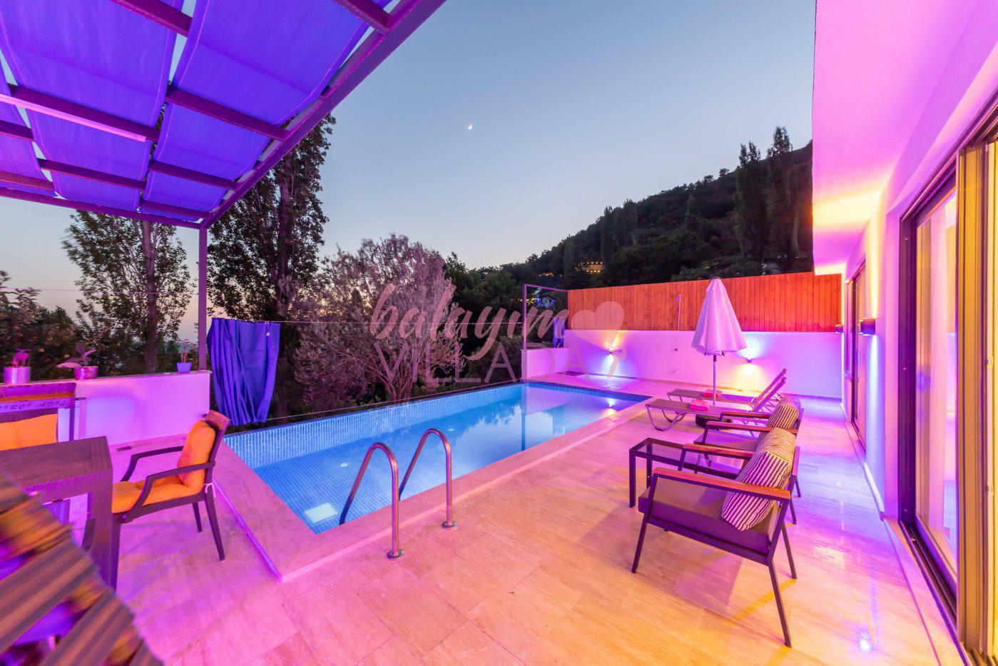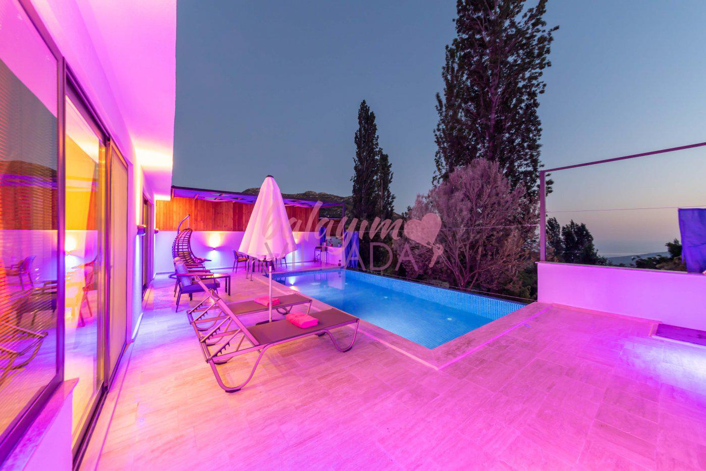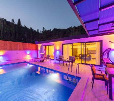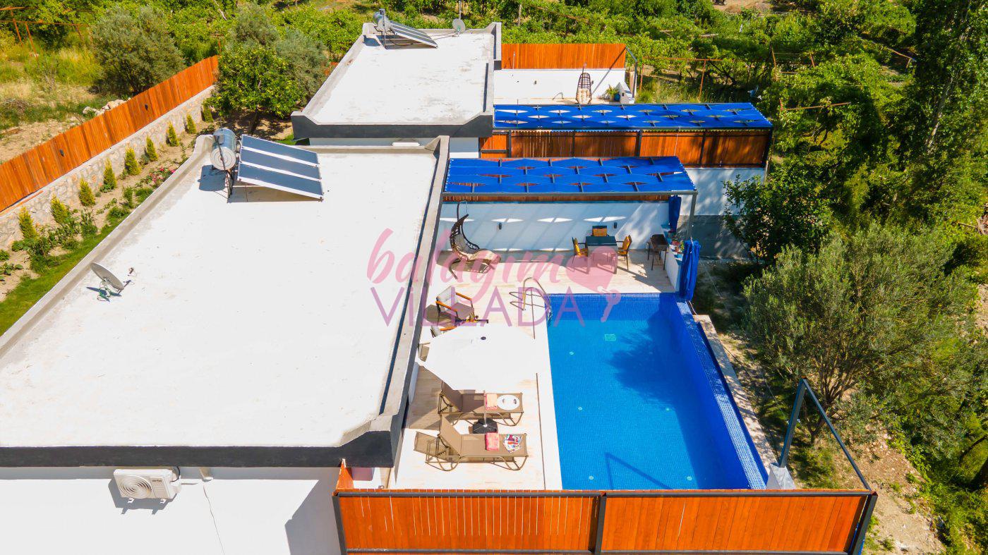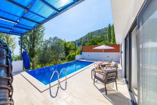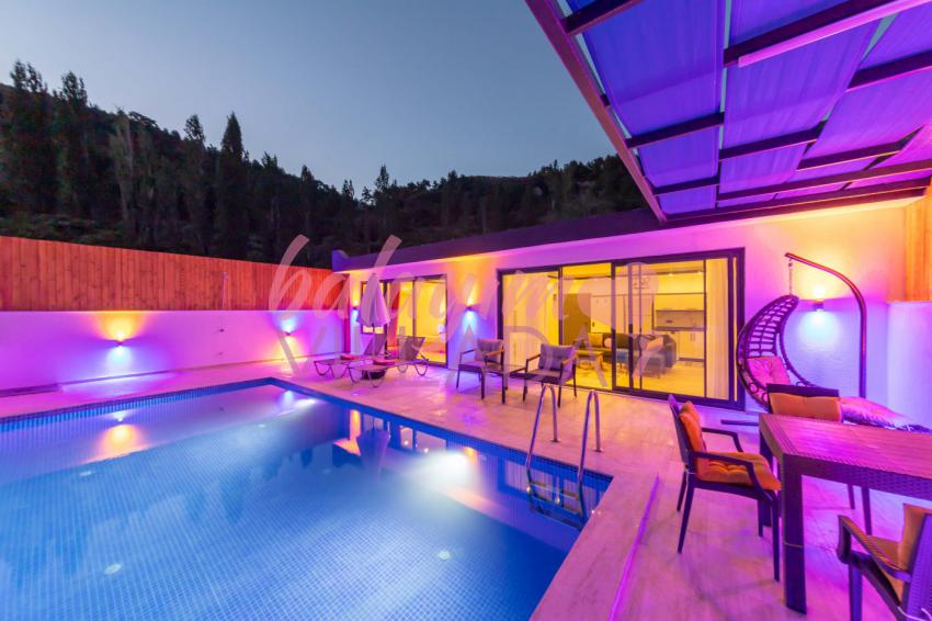 Villa Ayaz 1, Kalkan İslamlar Bölgesi'nde doğa manzarasına sahip, bir balayı villasıdır. Villamızın yatak odasında çiftlerimiz için düşünülmüş, keyifli dakikalar geçirebileceğiniz geniş bir jakuzi bulunmaktadır. Villamızın havuzunun korunaklı olması sayesinde baş başa tatile çıkmayı düşünen çiftlerimiz veya çekirdek ailelerimiz için oldukça ideal bir seçenektir. Villamızın bulunduğu konum itibari ile muhteşem doğa manzarasına sahiptir. Villamızın manzaralı bahçesinde havuz, mangal, keyifle manzara eşliğinde yemek yiyebileceğiniz yemek masası ve salıncağı bulunmaktadır.