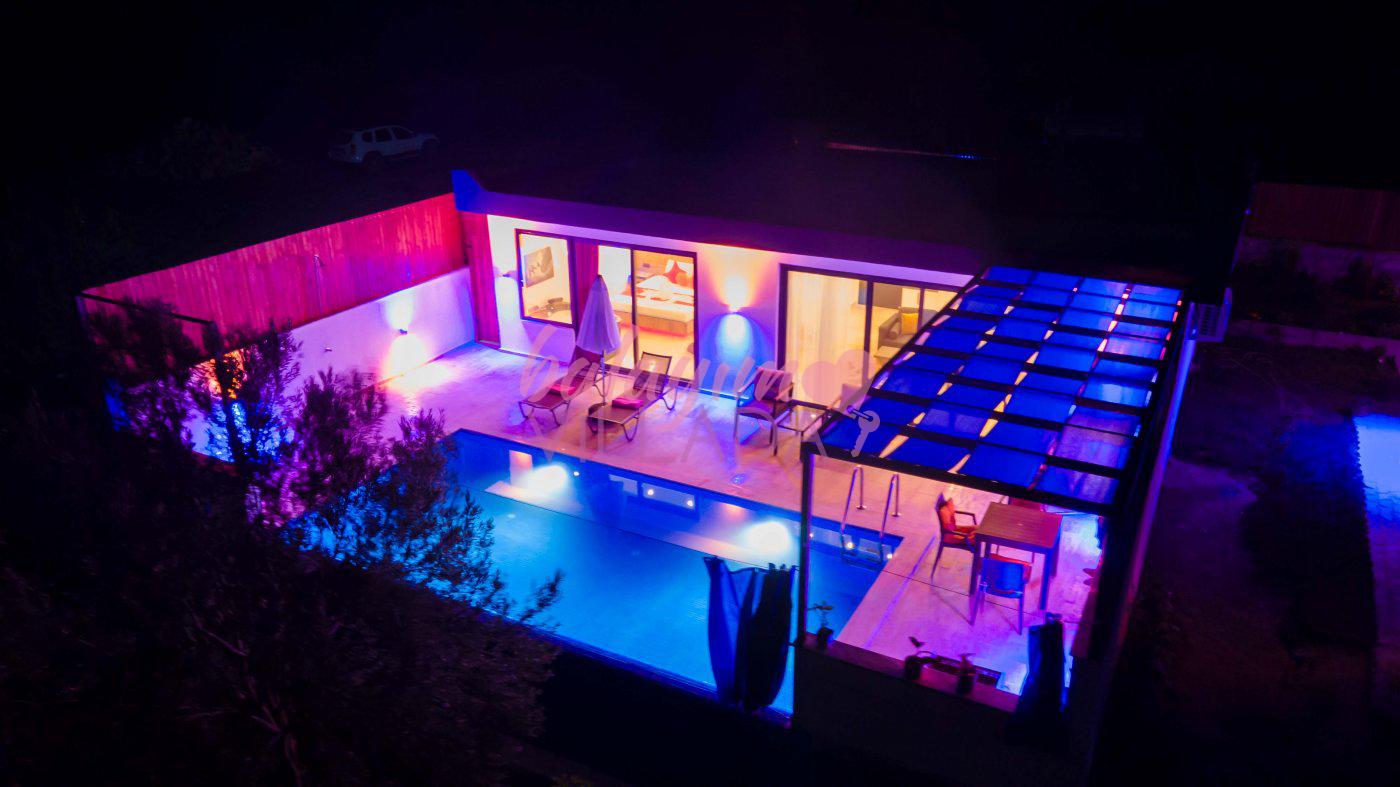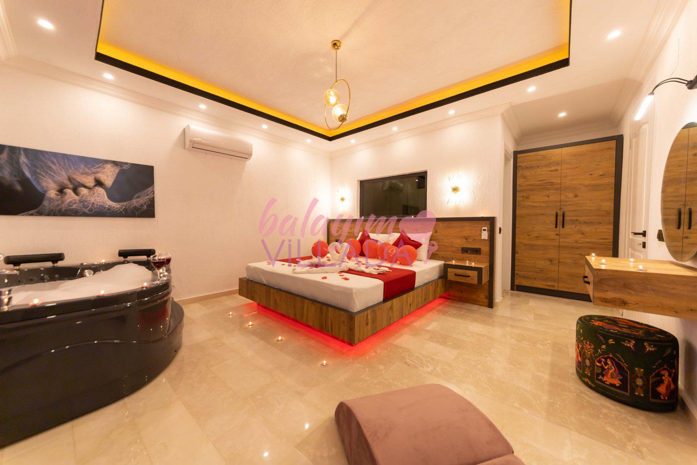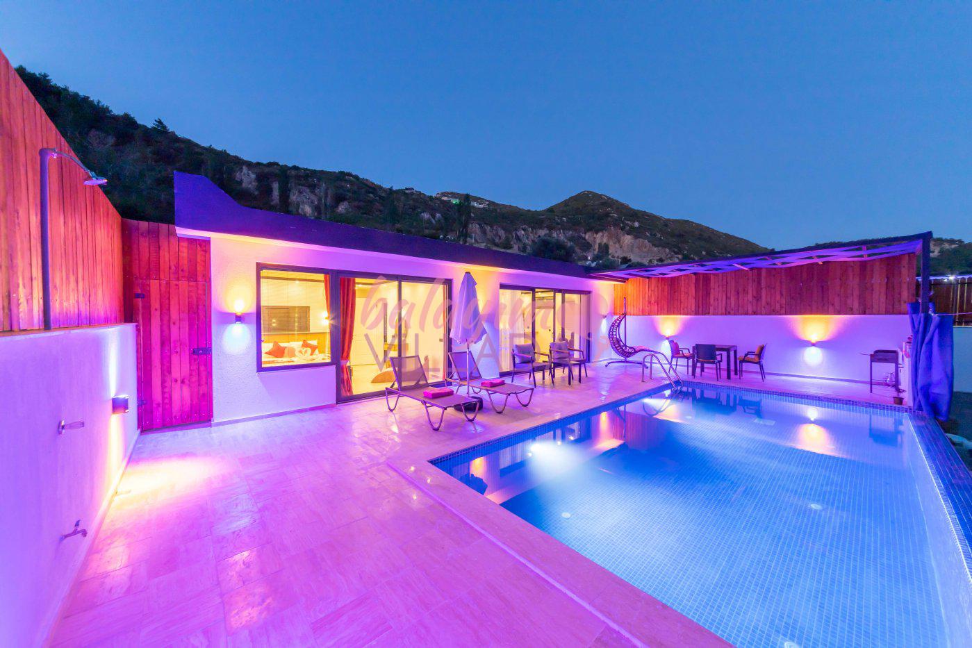 Villa Ayaz 1, Kalkan İslamlar Bölgesi'nde doğa manzarasına sahip, bir balayı villasıdır. Villamızın yatak odasında çiftlerimiz için düşünülmüş, keyifli dakikalar geçirebileceğiniz geniş bir jakuzi bulunmaktadır. Villamızın havuzunun korunaklı olması sayesinde baş başa tatile çıkmayı düşünen çiftlerimiz veya çekirdek ailelerimiz için oldukça ideal bir seçenektir. Villamızın bulunduğu konum itibari ile muhteşem doğa manzarasına sahiptir. Villamızın manzaralı bahçesinde havuz, mangal, keyifle manzara eşliğinde yemek yiyebileceğiniz yemek masası ve salıncağı bulunmaktadır.