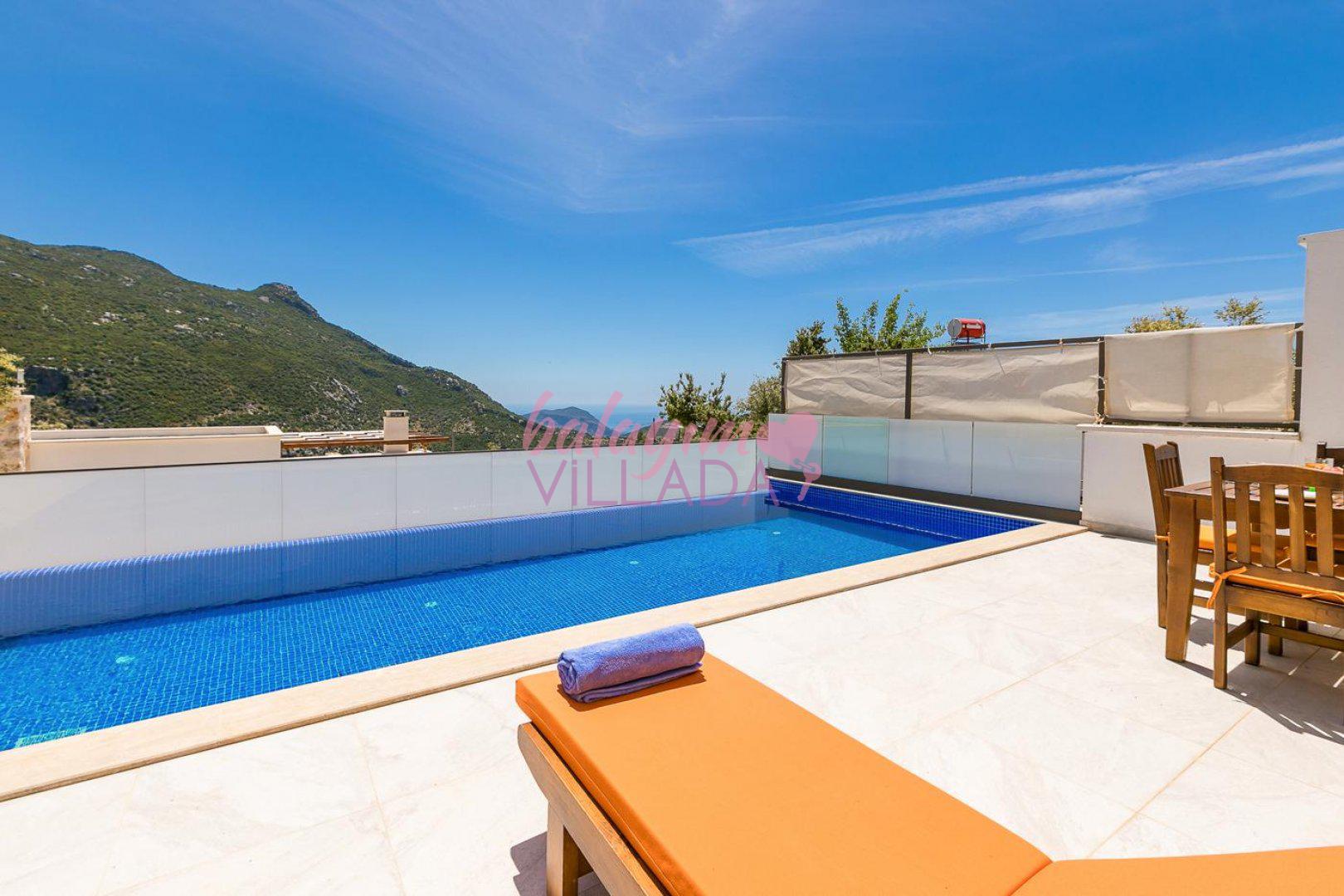 Kalkan’ın popüler tatil beldesi İslamlar Köyü’nde bulunan kiralık özel havuzlu villamız Bella 3, harika deniz ve doğa manzarasına sahiptir. Baş başa tatile çıkmak isteyen çiftler için oldukça ideal bir seçimdir. Villamızın her detayı incelikle düşünülmüştür. Şık bir şekilde düzenlenmiştir. Havuzu ve terası dışarıdan görünmeyen kiralık villamız, gözlerden uzak tatil yapmak isteyen misafirlerimiz için oldukça idealdir.