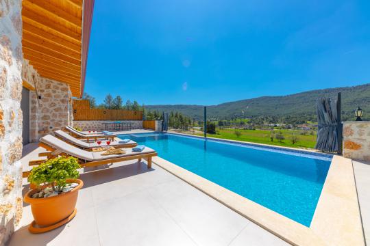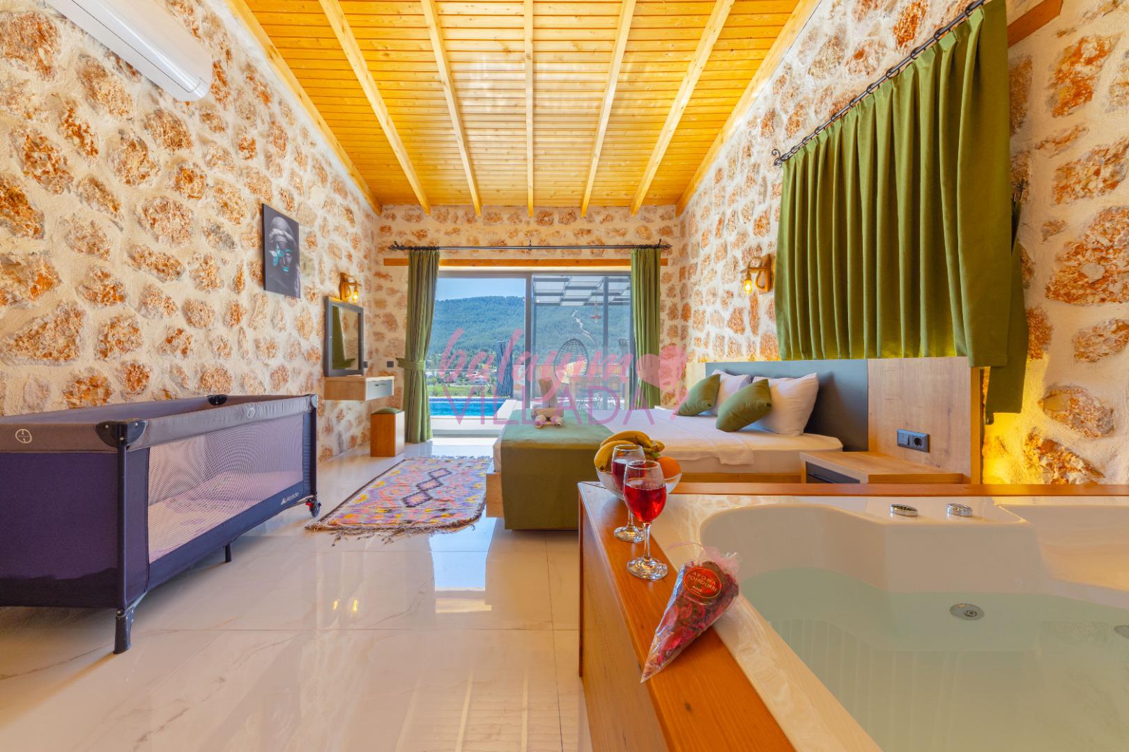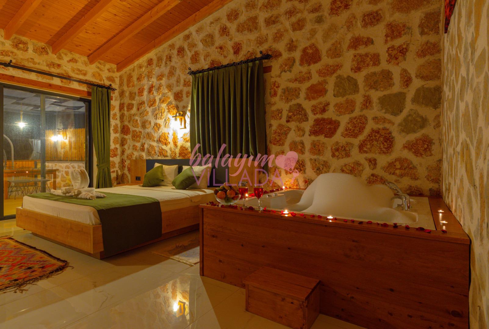 Villa Berceste, Kalkan Sarıbelen Mevkii'nde bulunan kiralık balayı villasıdır. Villamız sessizliğin, huzurun hakim olduğu bir bölgede yer almaktadır. Gözlerden uzakta sessiz sakin bir konumda tatil yapmak isteyen çiftlerimiz için oldukça uygun bir seçenektir. Muhafazakar villalar ve balayı villaları kategorisinde yer alan almaktadır. Havuzu korunaklı ve bahçesi dışarıdan görünmeyen Villa Berceste, mahremiyete önem veren çiftlerimiz için huzur dolu bir tatil fırsatı sunuyor. Ayrıca çift kişilik yatak odasında keyifli bir tatil geçirmeniz için geniş bir jakuzi de yer almaktadır.