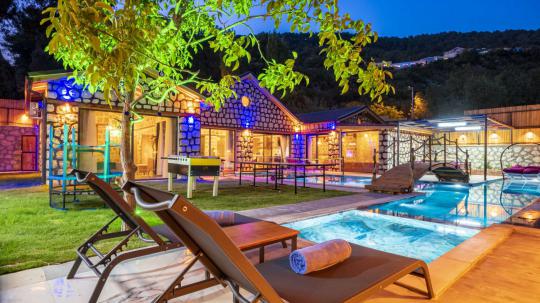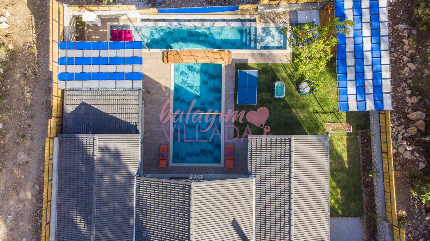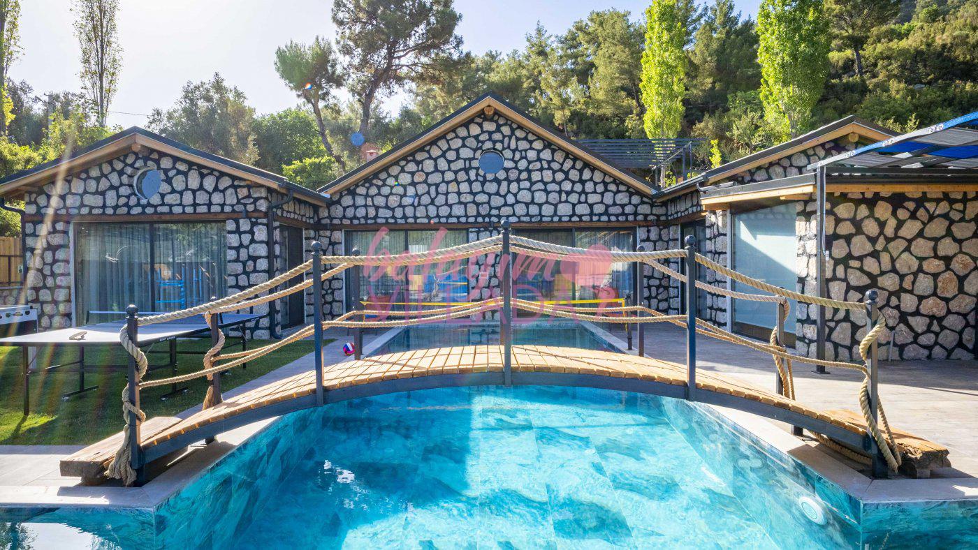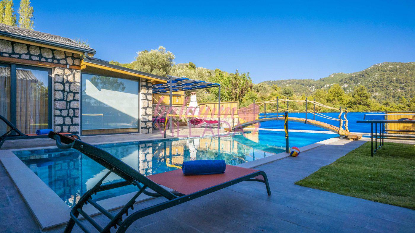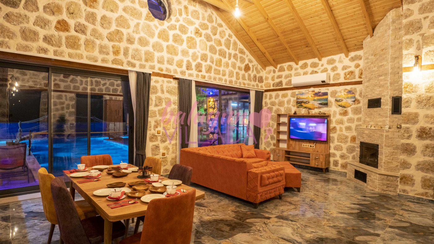 Big Boss, Kalkan İslamlar’da bulunan taş mimarili ile özenle dekore edilmiş , yeşillikler içinde özel muhafazakar havuzlu, masa tenisi, şömine, langırt, çocuklar için düşünülmüş oyun parkı, salıncak, mini futbol kalesi, küçük basket potası, oturma köşkü, tranbolin, masa tenisi, langırt, minyatür kale, havuzda voleybol filesi, tavla, satranç, domino, sauna ve oda içerisinde jakuzi bulunan villamız bölgenin modern villalarından olup muhafazakar balayı çiftine uygun, lüks balayı villasıdır. Villa Big Boss geniş bir bahçe içerisinde yapılmış olup etrafında herhangi bir yerleşim olmadığı için korunaklı bir havuza sahiptir. Not: Villaya giden yolun son 2 km stabilize toprak yoldur.