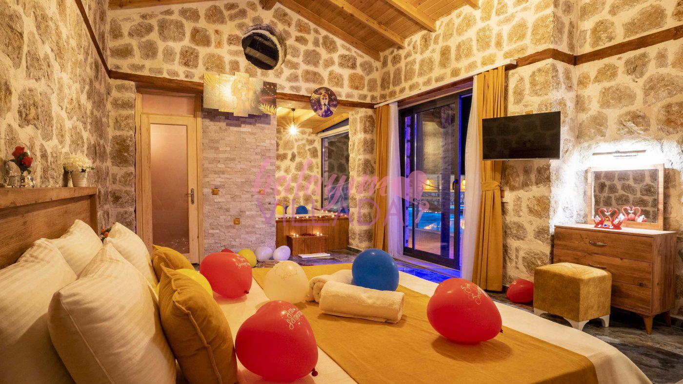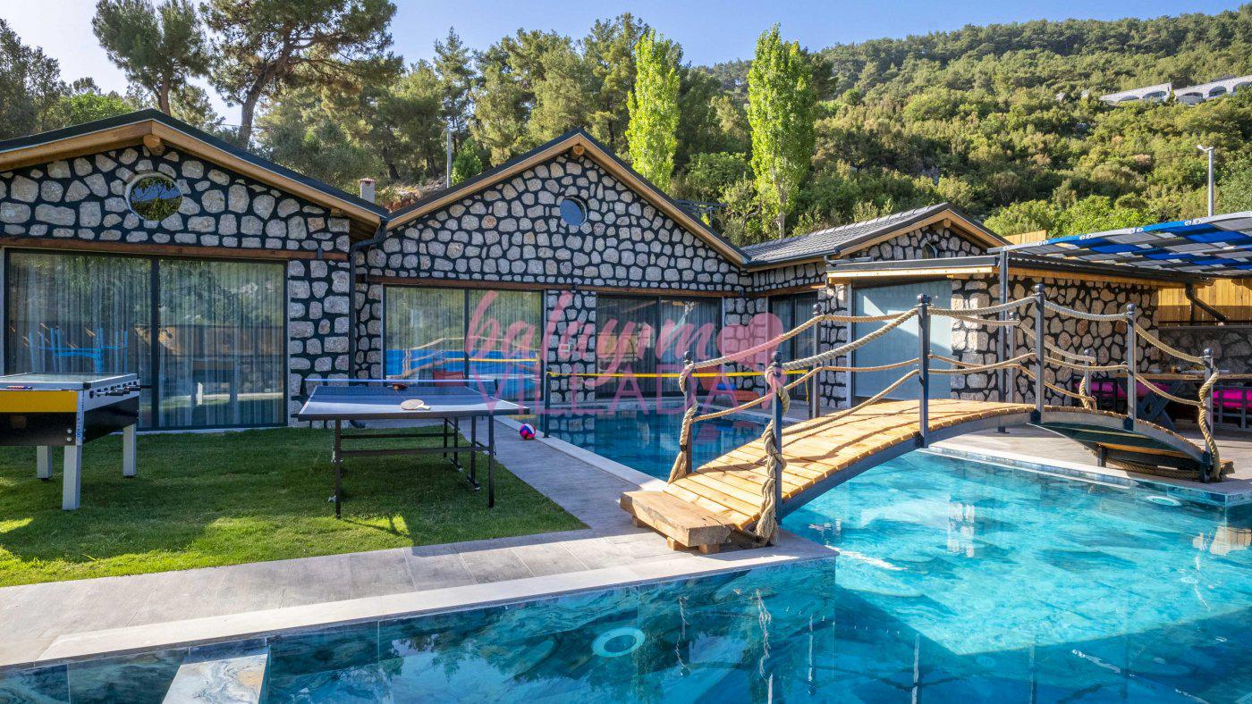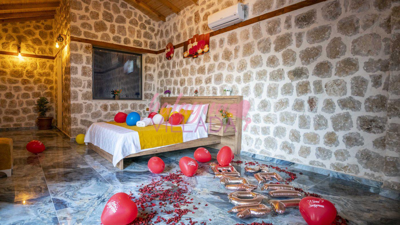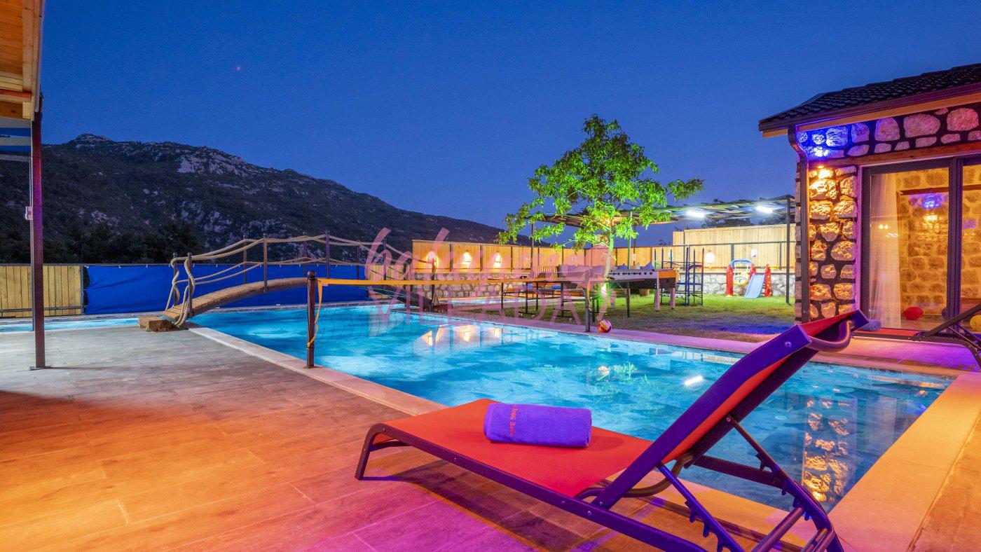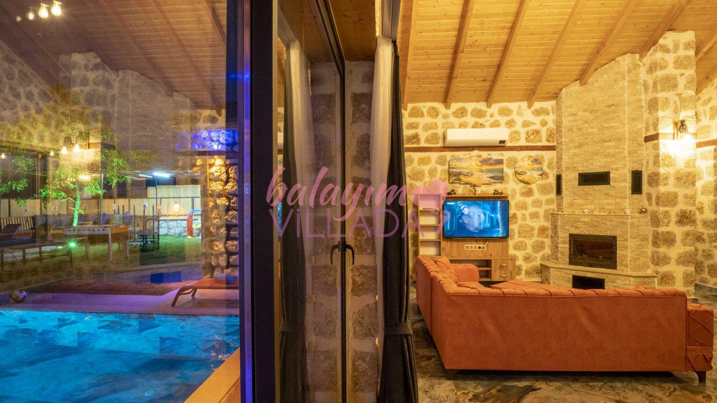 Big Boss, Kalkan İslamlar’da bulunan taş mimarili ile özenle dekore edilmiş , yeşillikler içinde özel muhafazakar havuzlu, masa tenisi, şömine, langırt, çocuklar için düşünülmüş oyun parkı, salıncak, mini futbol kalesi, küçük basket potası, oturma köşkü, tranbolin, masa tenisi, langırt, minyatür kale, havuzda voleybol filesi, tavla, satranç, domino, sauna ve oda içerisinde jakuzi bulunan villamız bölgenin modern villalarından olup muhafazakar balayı çiftine uygun, lüks balayı villasıdır. Villa Big Boss geniş bir bahçe içerisinde yapılmış olup etrafında herhangi bir yerleşim olmadığı için korunaklı bir havuza sahiptir. Not: Villaya giden yolun son 2 km stabilize toprak yoldur.