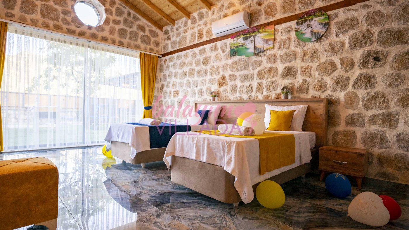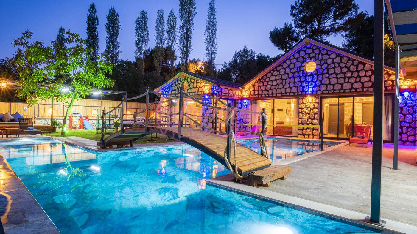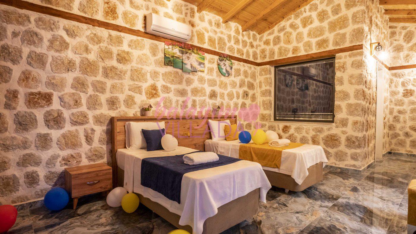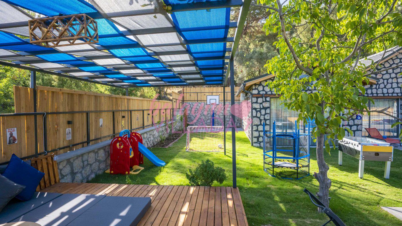 Big Boss, Kalkan İslamlar’da bulunan taş mimarili ile özenle dekore edilmiş , yeşillikler içinde özel muhafazakar havuzlu, masa tenisi, şömine, langırt, çocuklar için düşünülmüş oyun parkı, salıncak, mini futbol kalesi, küçük basket potası, oturma köşkü, tranbolin, masa tenisi, langırt, minyatür kale, havuzda voleybol filesi, tavla, satranç, domino, sauna ve oda içerisinde jakuzi bulunan villamız bölgenin modern villalarından olup muhafazakar balayı çiftine uygun, lüks balayı villasıdır. Villa Big Boss geniş bir bahçe içerisinde yapılmış olup etrafında herhangi bir yerleşim olmadığı için korunaklı bir havuza sahiptir. Not: Villaya giden yolun son 2 km stabilize toprak yoldur.