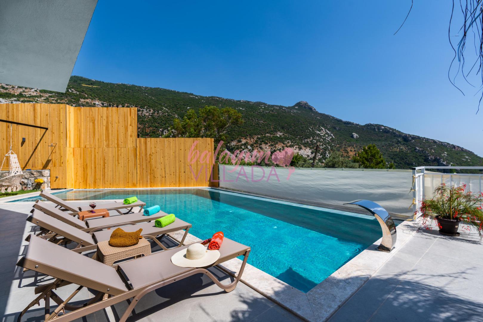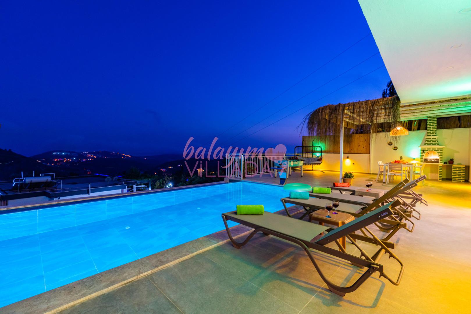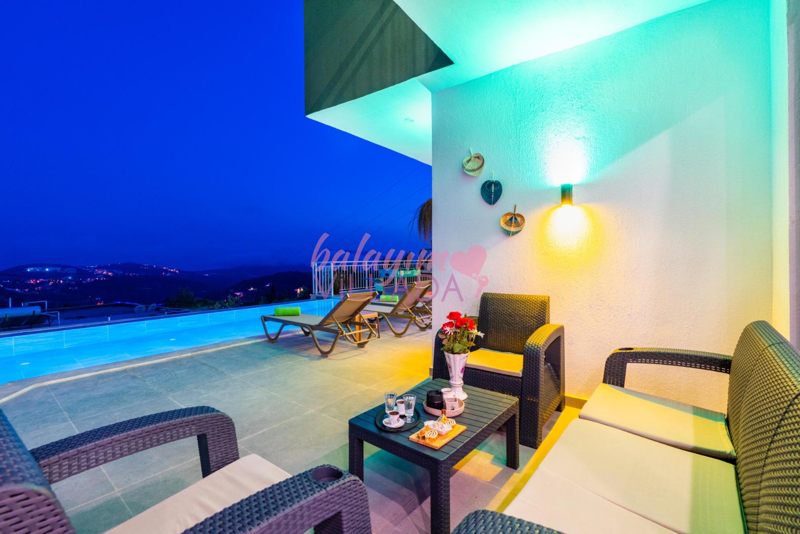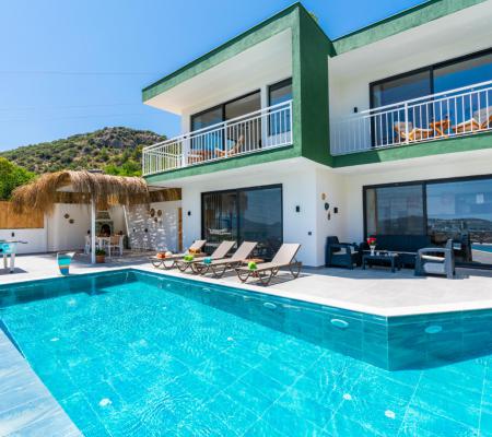 Villa Bu Yaz, gözlerden uzak bir tatil ya da balayı geçirmek isteyen çiftlerimiz için oldukça idealdir. Villamız manzarası ve suit yatak odasında bulunan jakuzisi ile çiftler tarafından oldukça talep görmektedir. Villa Bu Yaz korunaklı özel havuzu ve terası ile muhafazakar villa kategorisinde yer almaktadır. Villamız Kalkan merkezine ve denize 5-6km uzaklıkta olup; bakkal ve en yakın restorana yaklaşık 1 km mesafededir.