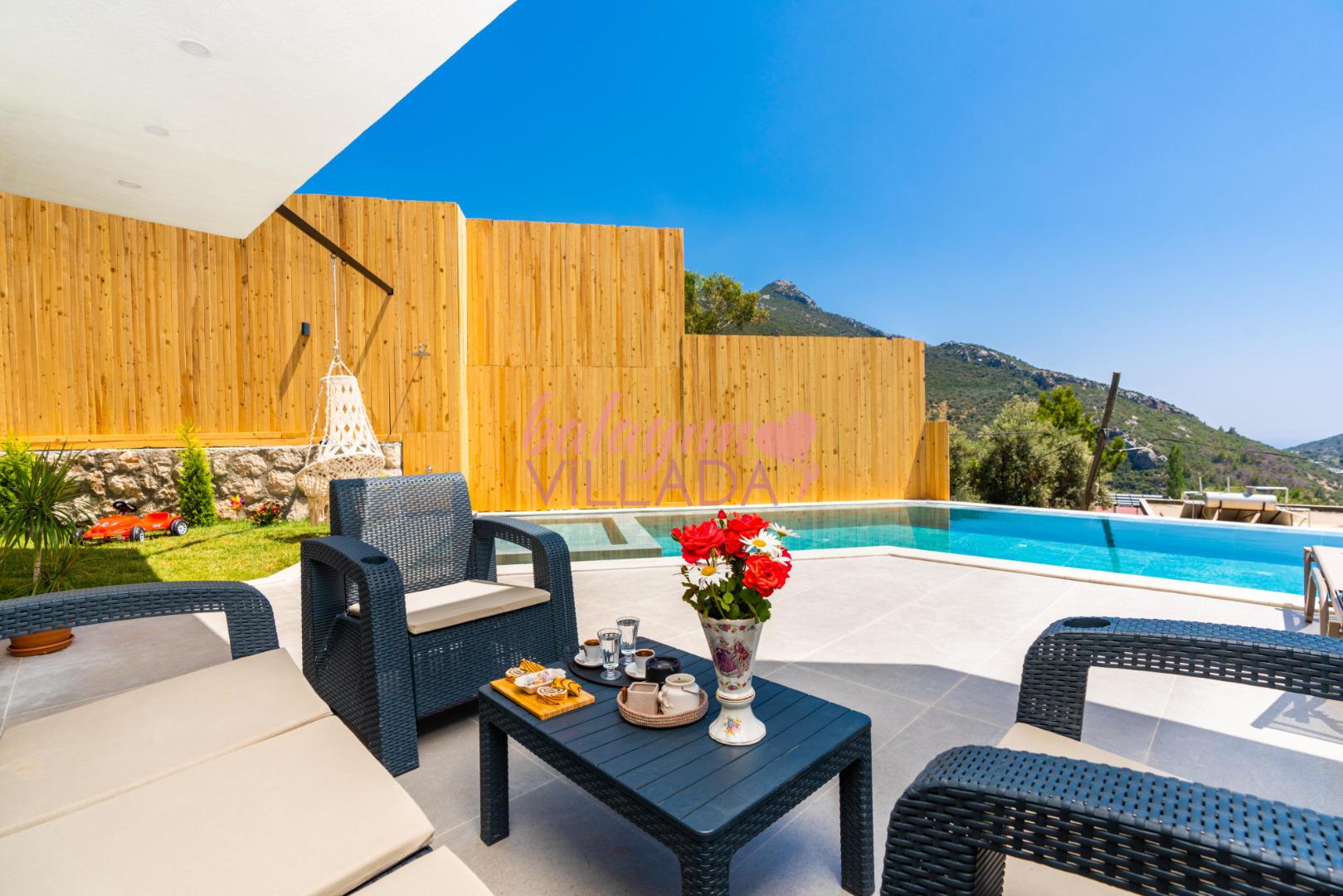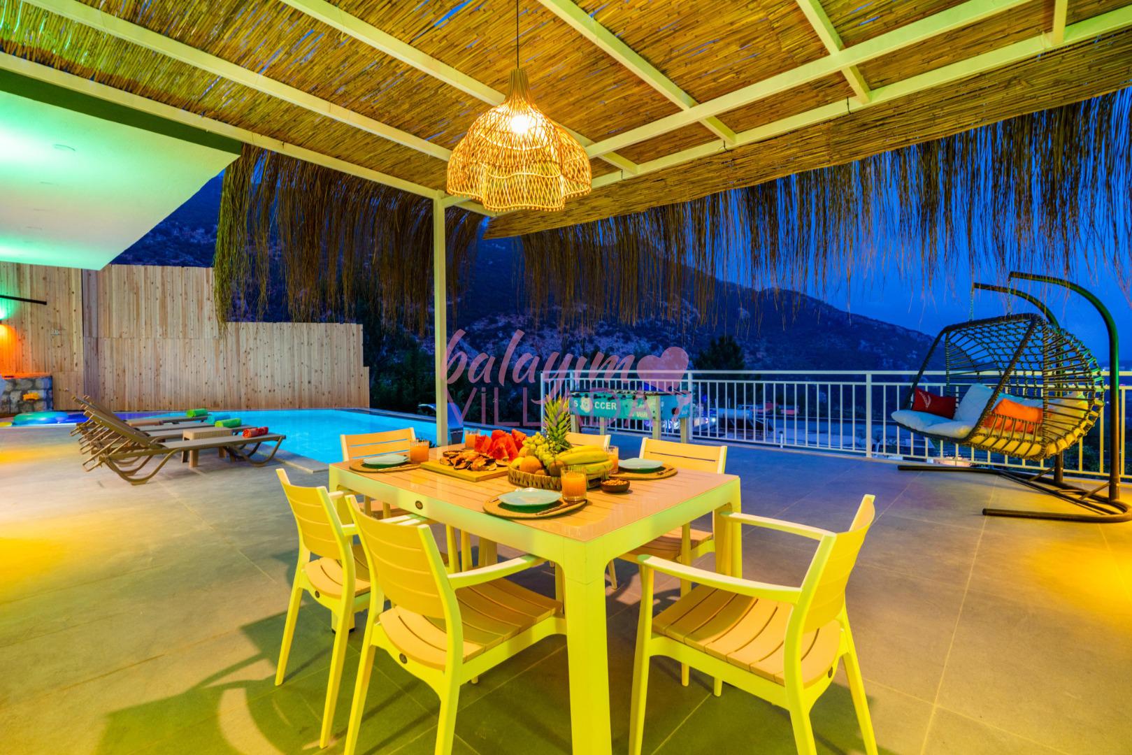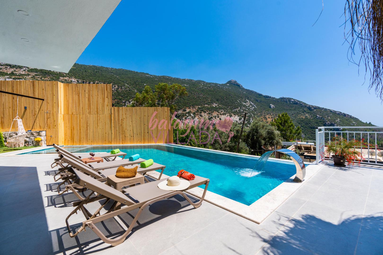 Villa Bu Yaz, gözlerden uzak bir tatil ya da balayı geçirmek isteyen çiftlerimiz için oldukça idealdir. Villamız manzarası ve suit yatak odasında bulunan jakuzisi ile çiftler tarafından oldukça talep görmektedir. Villa Bu Yaz korunaklı özel havuzu ve terası ile muhafazakar villa kategorisinde yer almaktadır. Villamız Kalkan merkezine ve denize 5-6km uzaklıkta olup; bakkal ve en yakın restorana yaklaşık 1 km mesafededir.
