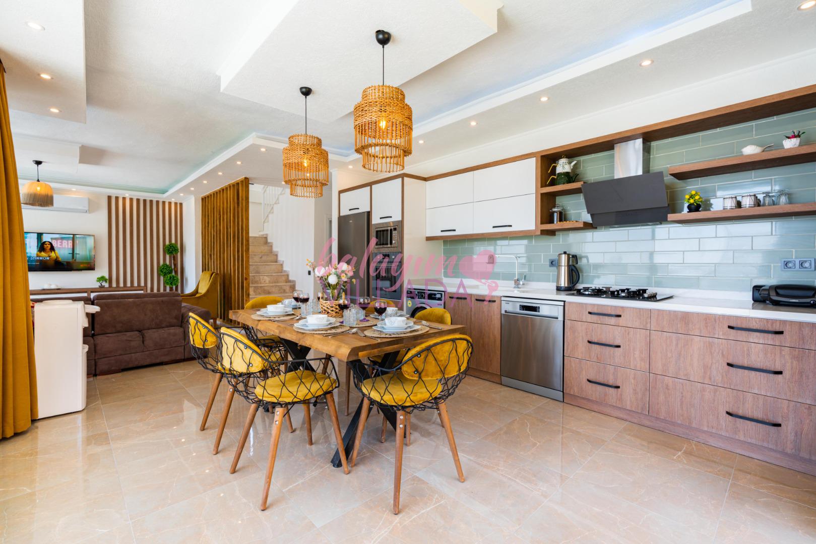 Villamız kalabalıktan uzak izole bir tatil için tam donanımlı mutfak ve tatil keyfinizi tamamlayıcı detaylar ile ihtiyacınız olan her şeyi bir arada bulabileceğiniz keyifli ve güvenli bir tatil imkanı sunuyor.