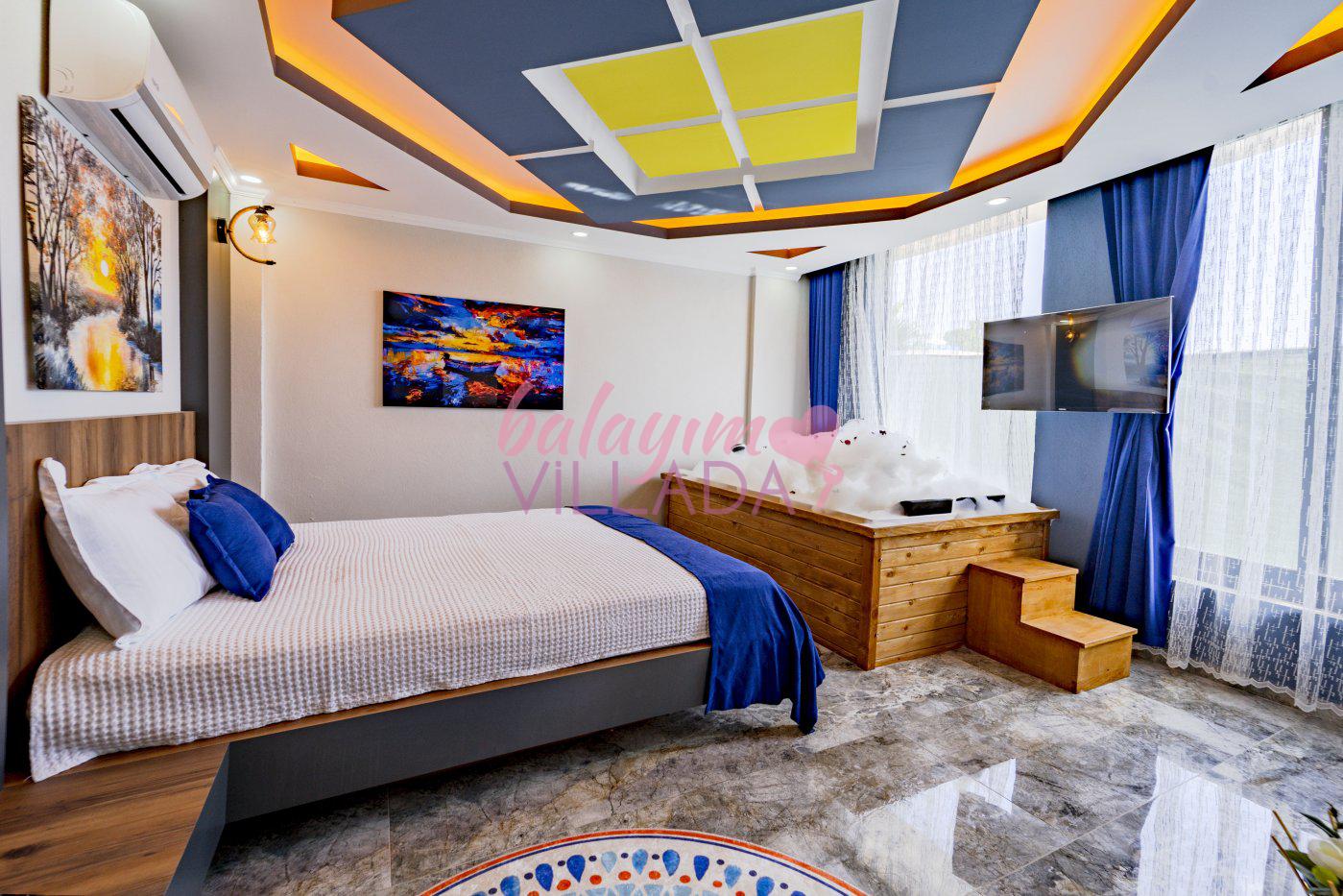 Yatak Odası 1 :1 Çift Kişilik Yatak, 1 Banyo&Tuvalet, 1 Jakuzi, 1 Klima, 1 TV