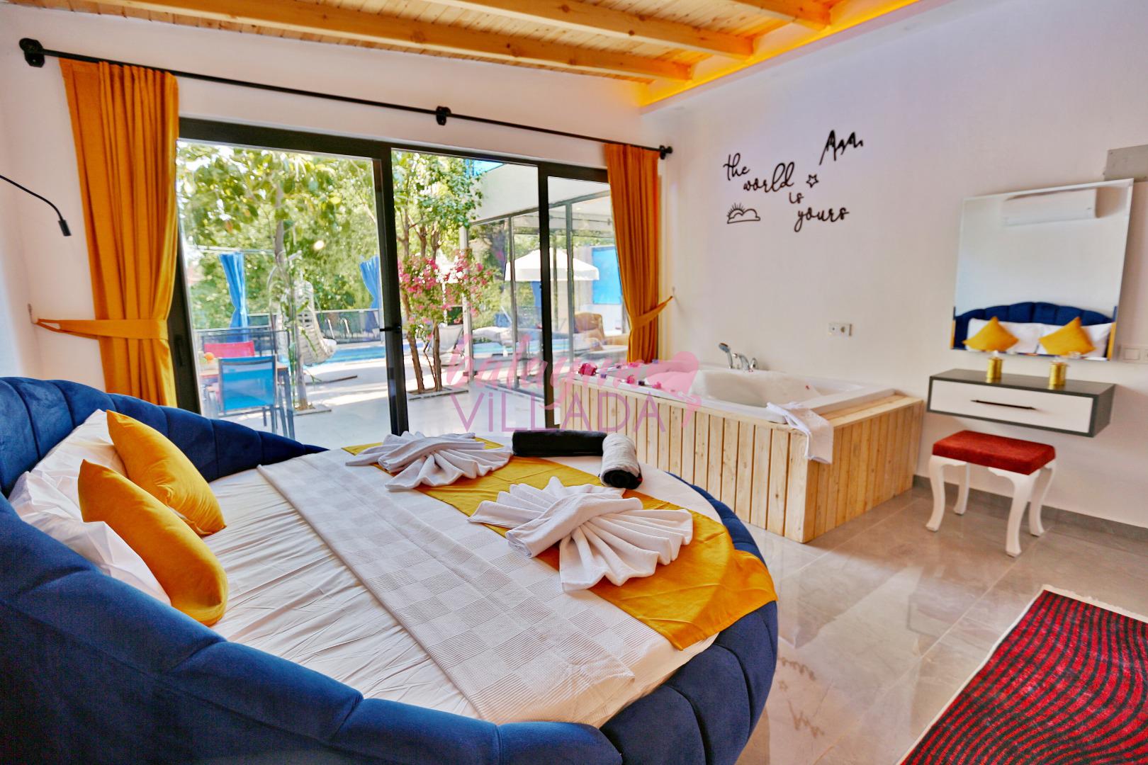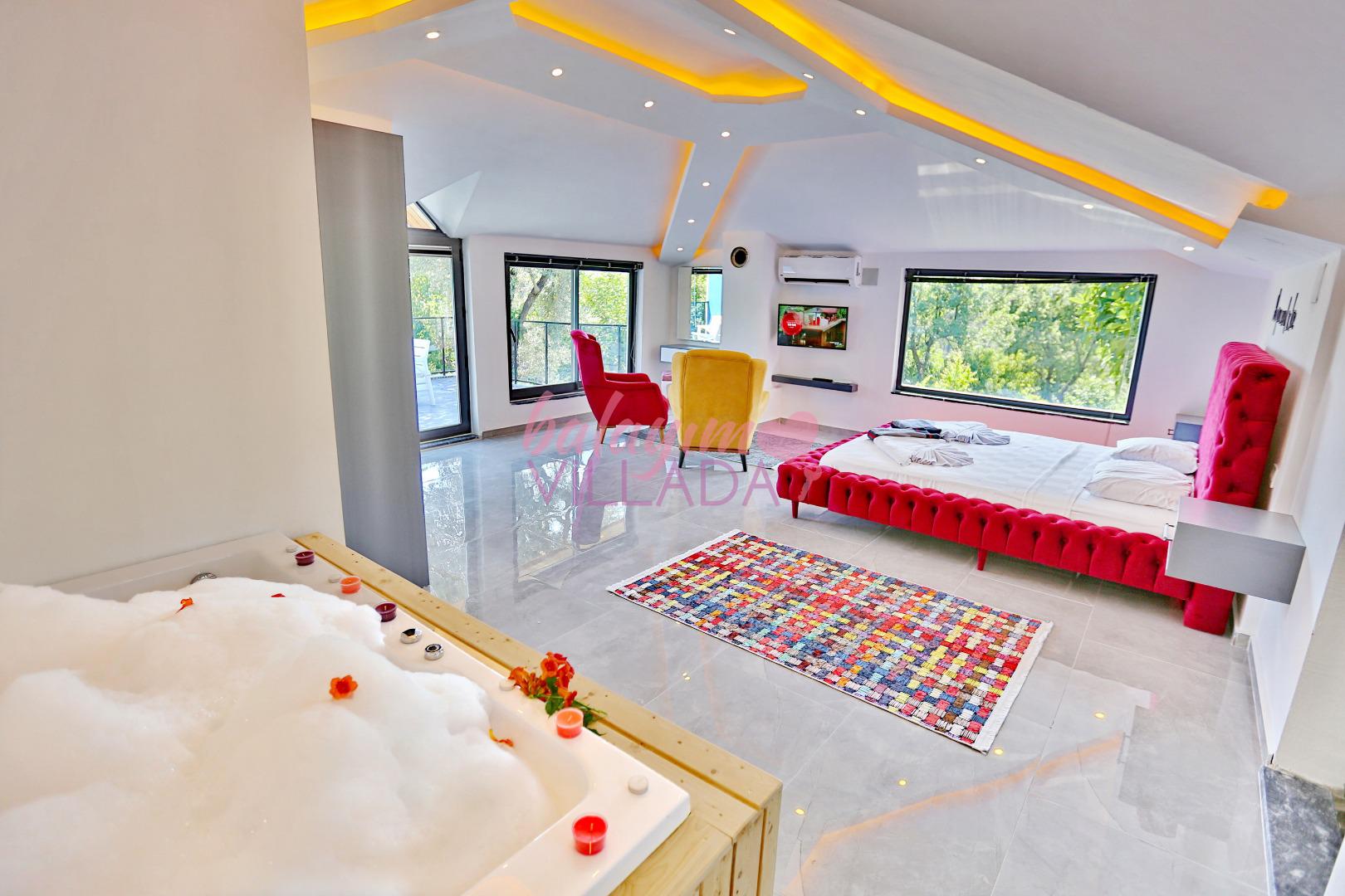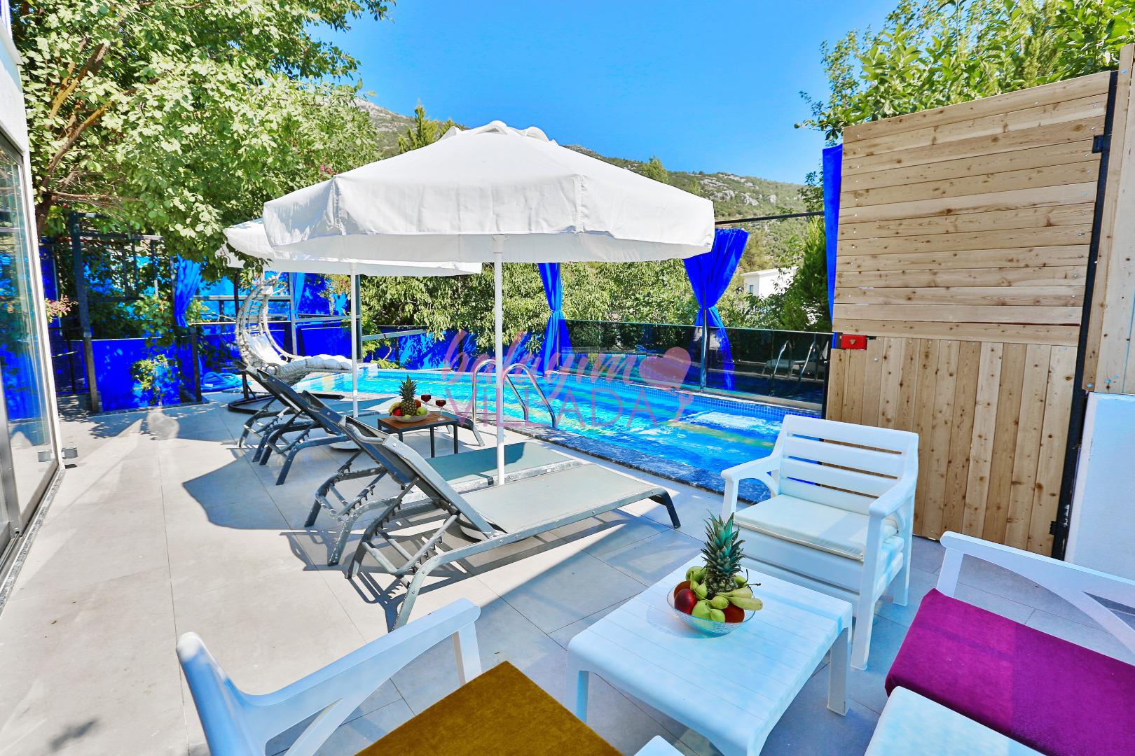 Villa Dorelli, Kalkan İslamlar Köyü’nde doğa içinde harika bir konuma sahip bir kiralık balayı villasıdır. Romantik bir balayına ya da baş başa keyifli bir tatile çıkmak isteyen çiftlerimiz için özel olarak hazırlanan villamız, terasındaki salıncağı, korunaklı havuzu, jakuzisi ve şık dekorasyonu ile keyifli bir tatil imkanı sunuyor. Havuzu dışarıdan görülmeyen villamız muhafazakar çiftlerimiz için de oldukça uygundur. Aynı zamanda villamızda keyifli bir tatil geçirebilmeniz için hamam ve sauna da vardır.