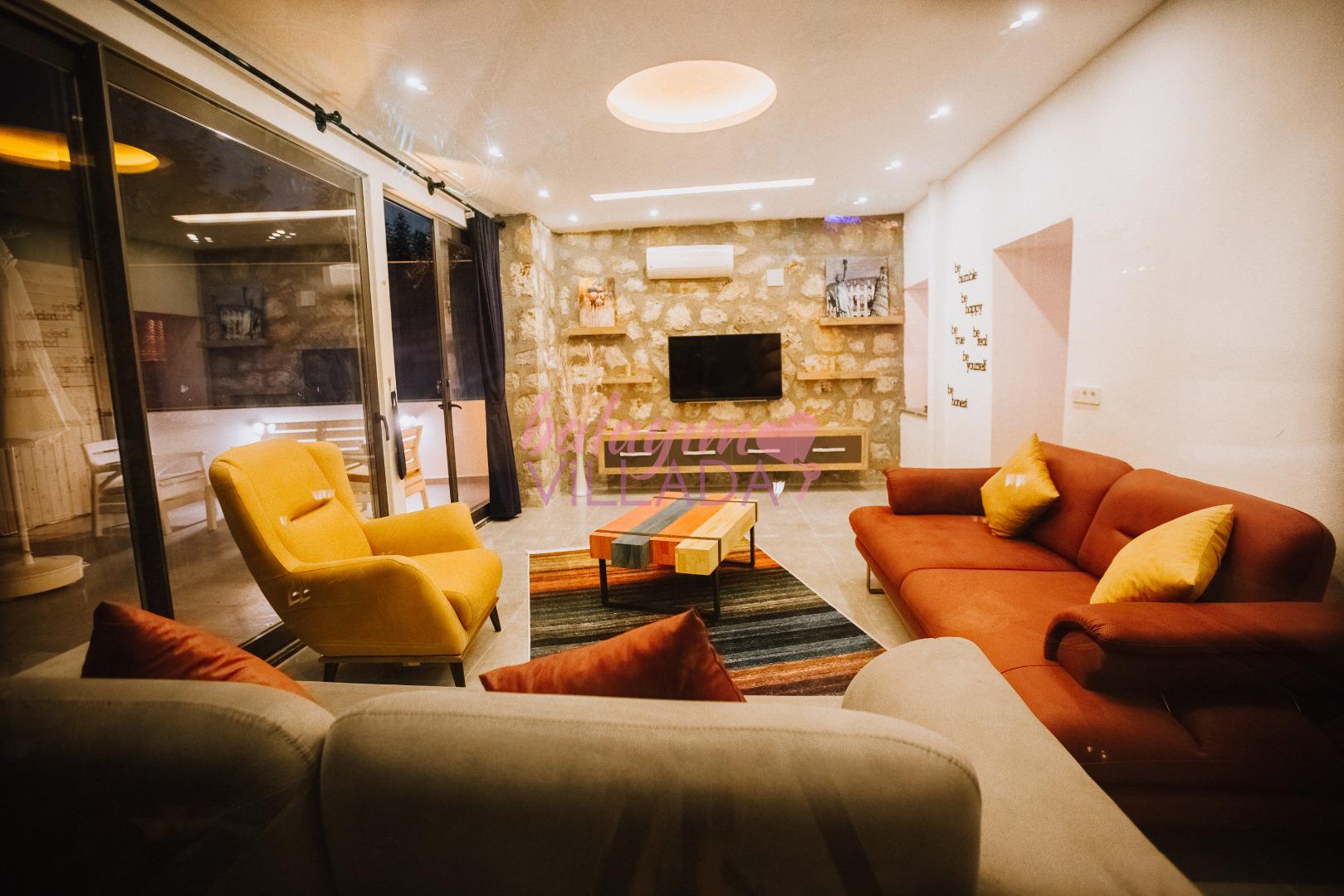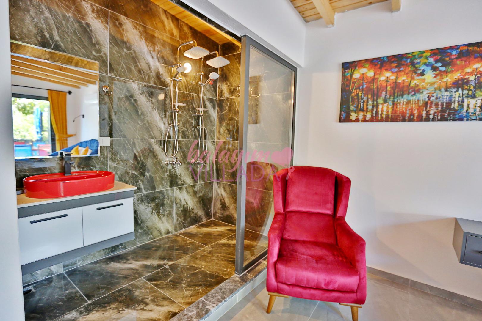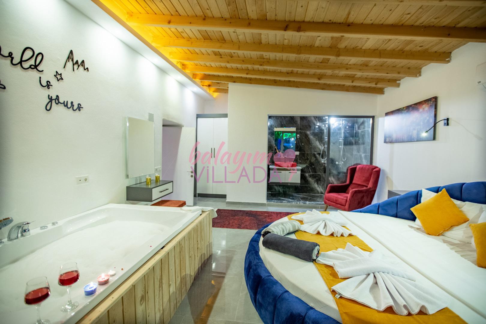 Villa Dorelli, Kalkan İslamlar Köyü’nde doğa içinde harika bir konuma sahip bir kiralık balayı villasıdır. Romantik bir balayına ya da baş başa keyifli bir tatile çıkmak isteyen çiftlerimiz için özel olarak hazırlanan villamız, terasındaki salıncağı, korunaklı havuzu, jakuzisi ve şık dekorasyonu ile keyifli bir tatil imkanı sunuyor. Havuzu dışarıdan görülmeyen villamız muhafazakar çiftlerimiz için de oldukça uygundur. Aynı zamanda villamızda keyifli bir tatil geçirebilmeniz için hamam ve sauna da vardır.