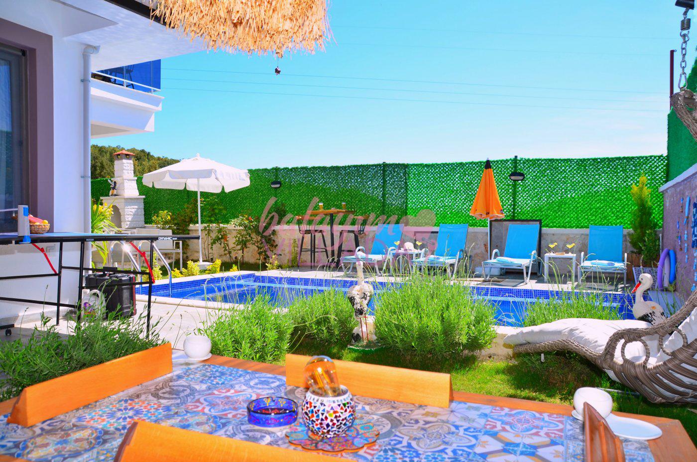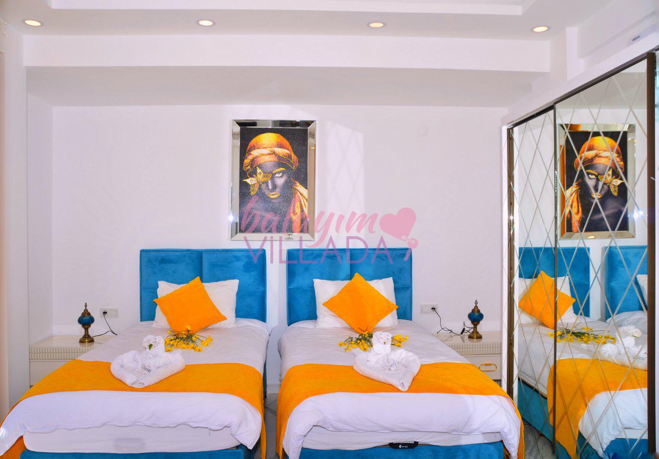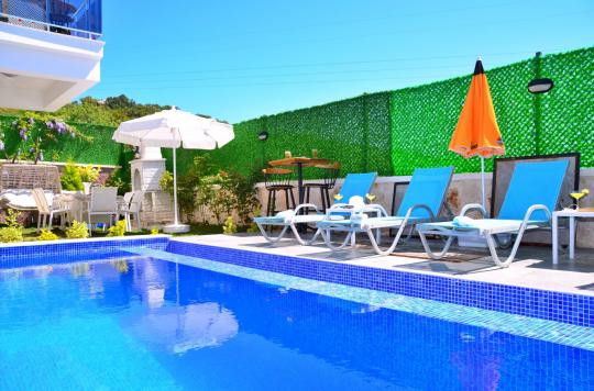 Villa Efulim, Kaş Ağullu bölgesinde yer alan balayı villamızdır. Renkli ve şık iç tasarımlı villamız baş başa tatile çıkmak isteyen çiftlerimiz için ideal bir seçenektir. Havuz terasında yemyeşil bir bahçesi bulunmaktadır. Doğa içerisinde yer alan villamızda balayı geçirmek isteyen çiftlerimize de güzel bir seçenek olacaktır. Villamızda yer alan sinema odası, kutu oyunları ve masa tenisi sayesinde eğlenceli anlar geçirebilirsiniz.