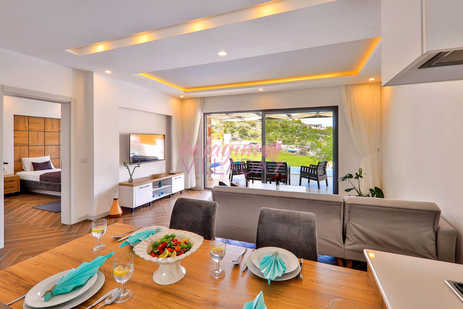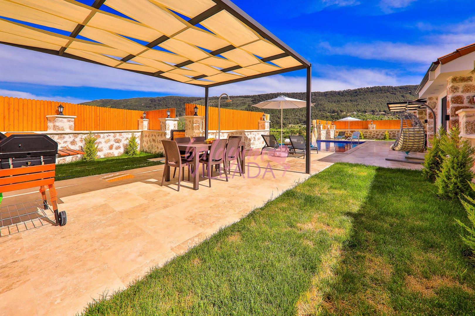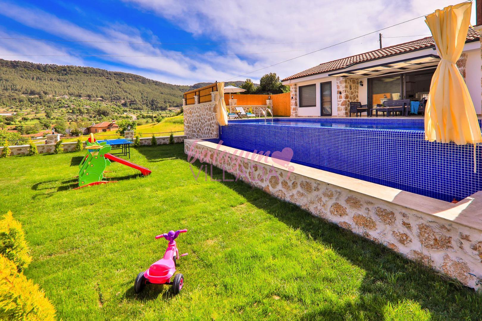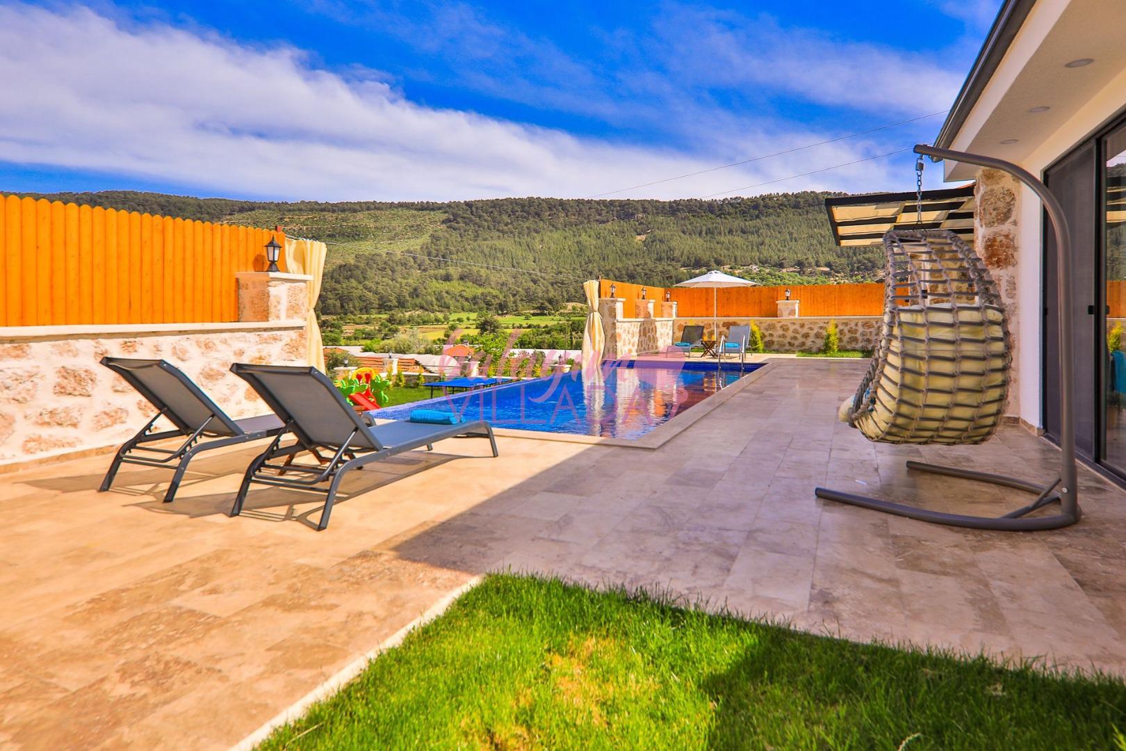 Villa Elçin Kalkan'ın Sarıbelen mevkiinde bulunan, şehrin gürültüsünden uzak bir konumda,2 yatak odasıyla,4 kişilik konaklama kapasitesine sahip,taş mimarisiyle,şık ve ferah bir dizayna sahiptir. Villamız doğa içinde konumlanmış olup siz değerli misafirlerimize gözlerden uzak tatil bir imkanı sunmaktadır. Muhafazakar ailelerin rahatlıkla tercih edebileceği korunaklı havuz bahçe alanı, çocuk oyun alanı, barbekü, oturma grubu, yemek masası gibi seçenekler de yer almaktadır. Geniş bahçesi ve konfor alanı ve tüm şıklığı ile tatilininizi süsleyecek olan Villa Elçin misafirlerini bekliyor.