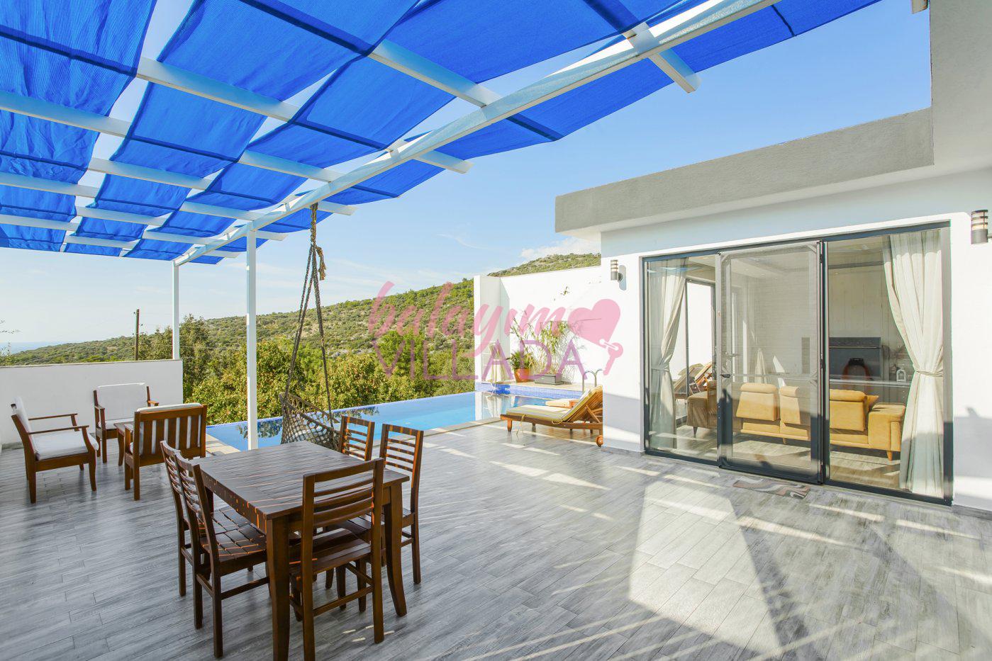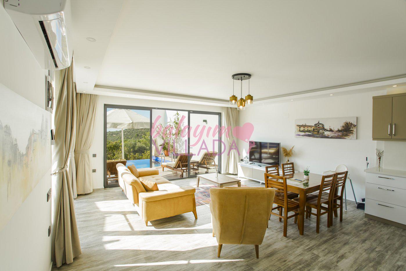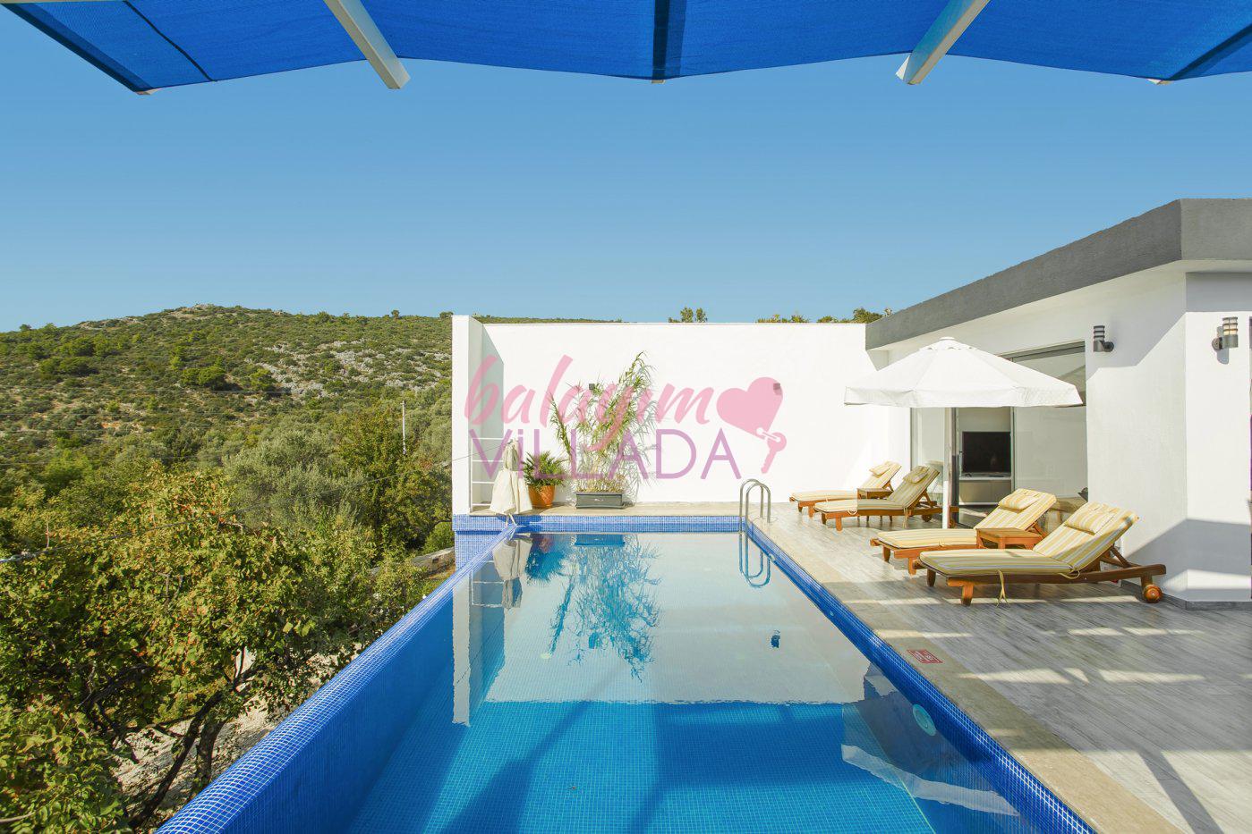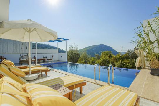 Villa Esin, Kalkan Üzümlü Mevkii'nde yer alan zeytin ağaçlarının yeşillikleri içinde ve korunaklı olan balayı villamızdır. Villamız doğa ile iç içe olmak isteyen çiftlerimiziçin ideal bir tercihtir. Havuz alanı korunaklı olan villamız baş başa romantik bir tatile çıkmak isteyen çiftlerimize uygundur.