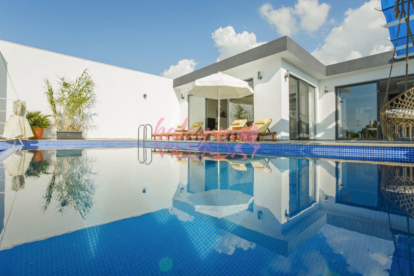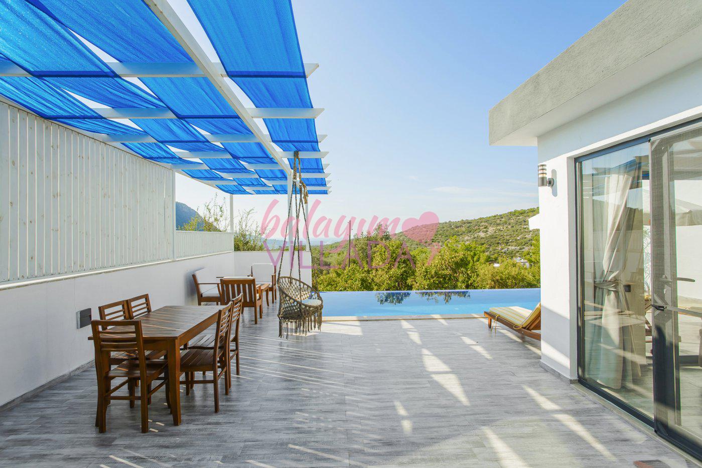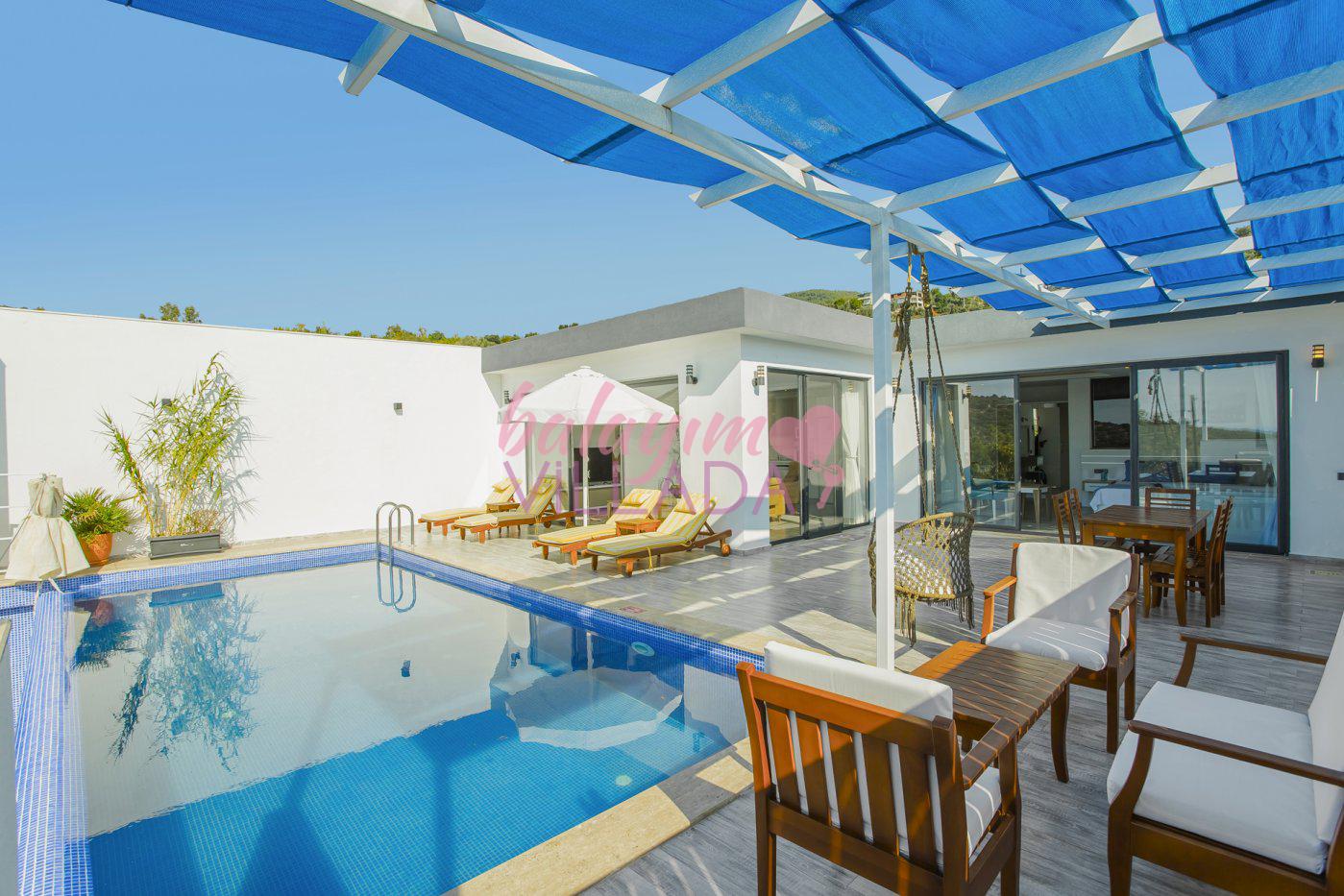 Villa Esin, Kalkan Üzümlü Mevkii'nde yer alan zeytin ağaçlarının yeşillikleri içinde ve korunaklı olan balayı villamızdır. Villamız doğa ile iç içe olmak isteyen çiftlerimiziçin ideal bir tercihtir. Havuz alanı korunaklı olan villamız baş başa romantik bir tatile çıkmak isteyen çiftlerimize uygundur.