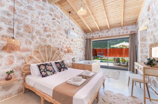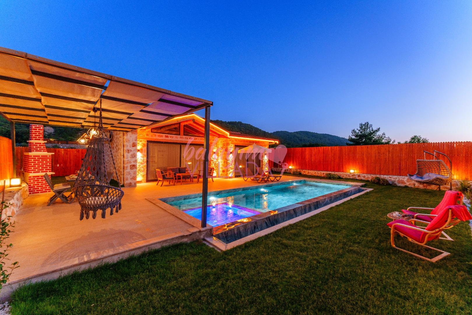 Villa Fidelya, Kalkan Sarıbelen Mevkii'nde bulunmaktadır. Korunaklı bir havuz terasına sahip olduğu için romantik baş başa tatile çıkmak isteyen muhafazakar balayı çiftleri için yabancı gözlerden uzak huzurlu bir tatil imkanı sağlar.