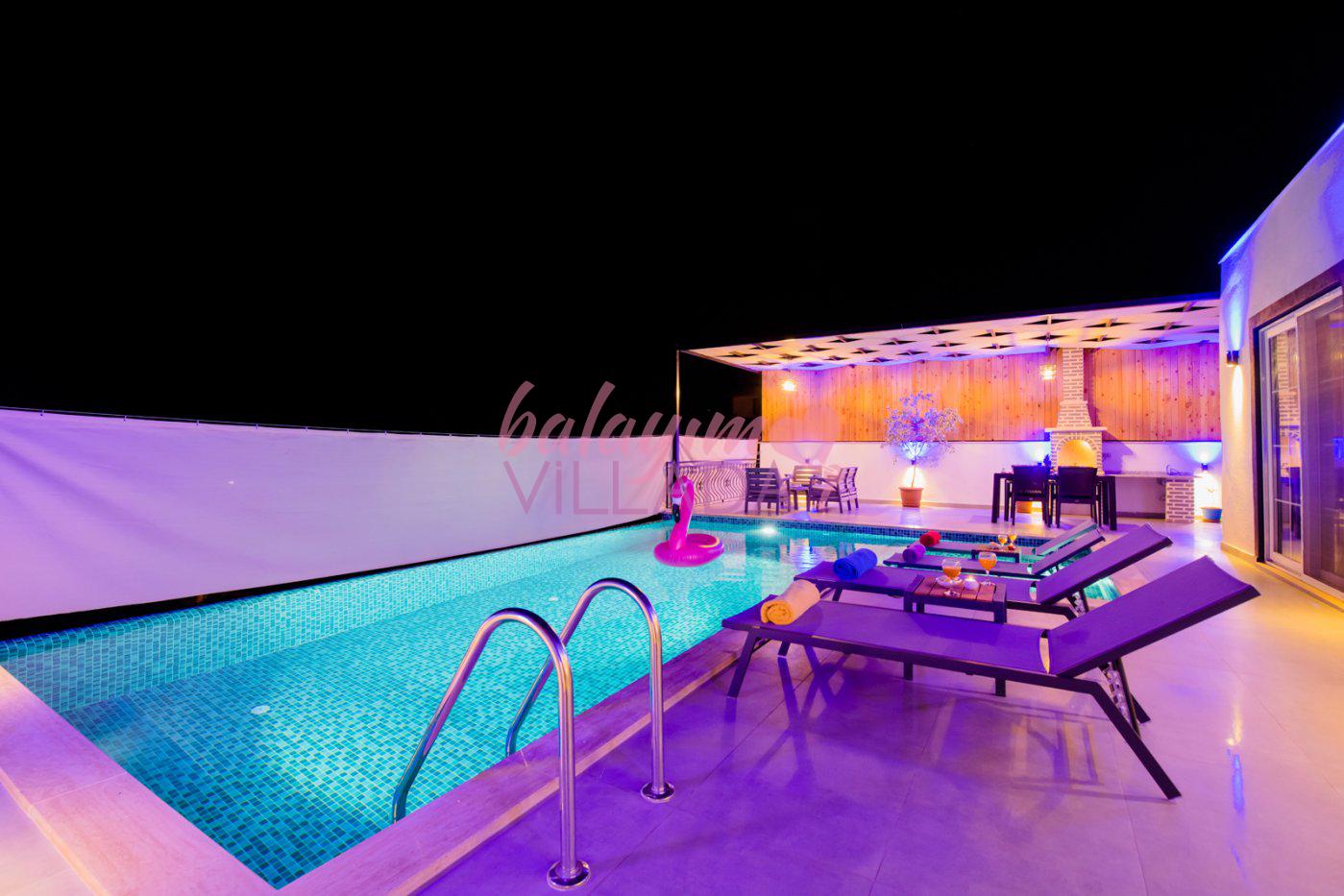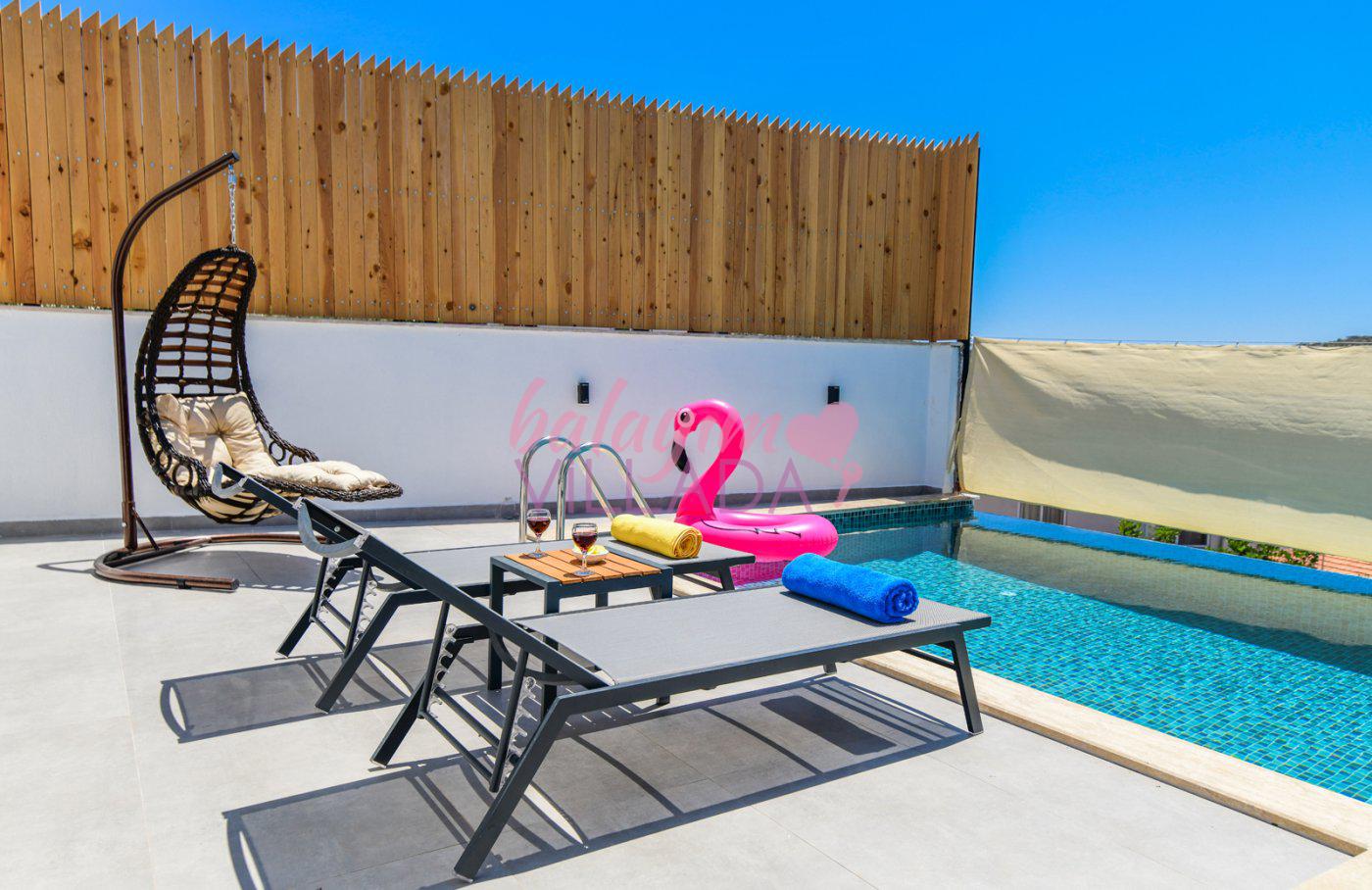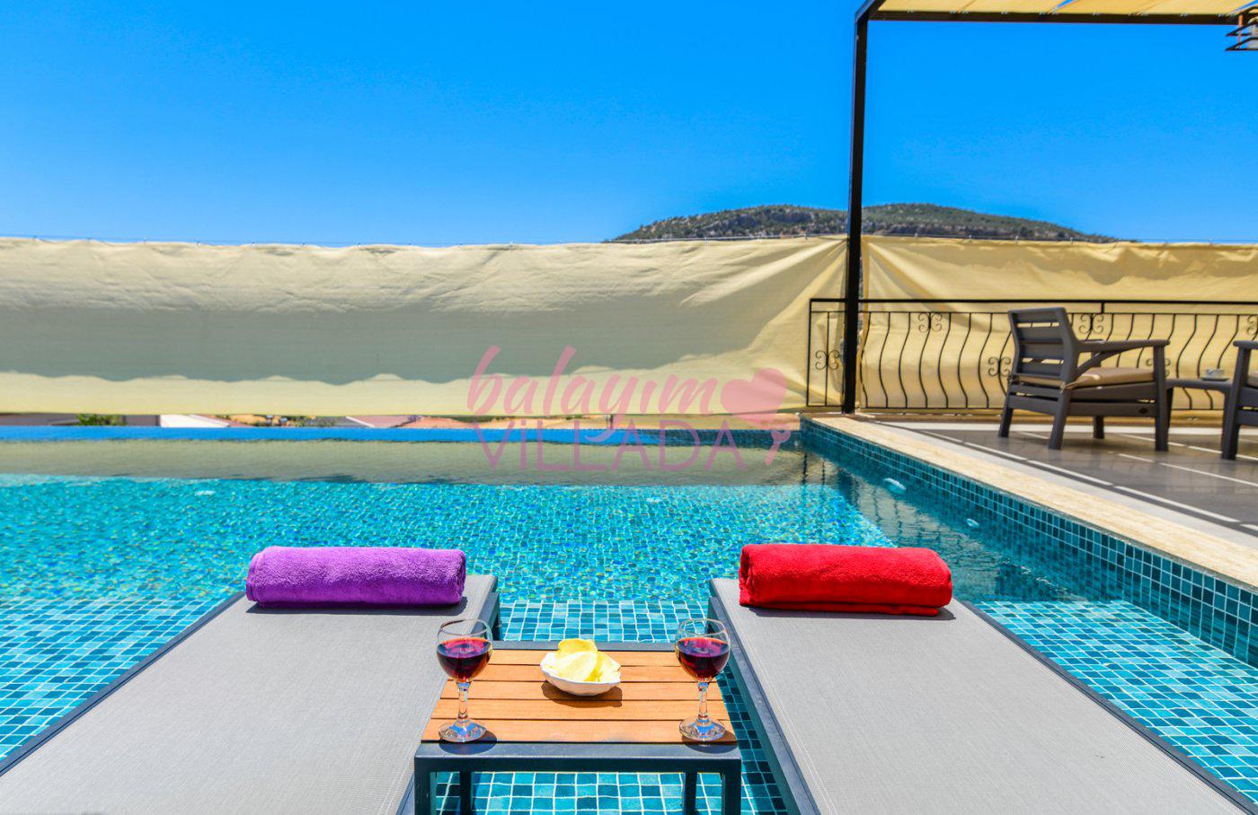 Villa Gıbrıs, Kalkan Ulugöl Mevkii'nde bulunan balayı için uygun olan merkeze ve denize yakın villamızdır. Villamız, içerisinde çiftlerimize oldukça hitap edecek jakuzi ve salıncak bulunmaktadır. Muhafazakar villamızın bahçe alanı dışarıdan görünmeyecek şekilde tasarlanmış olduğundan çiftlerimiz havuzu gönül rahatlığıyla kullanabilirsiniz.
