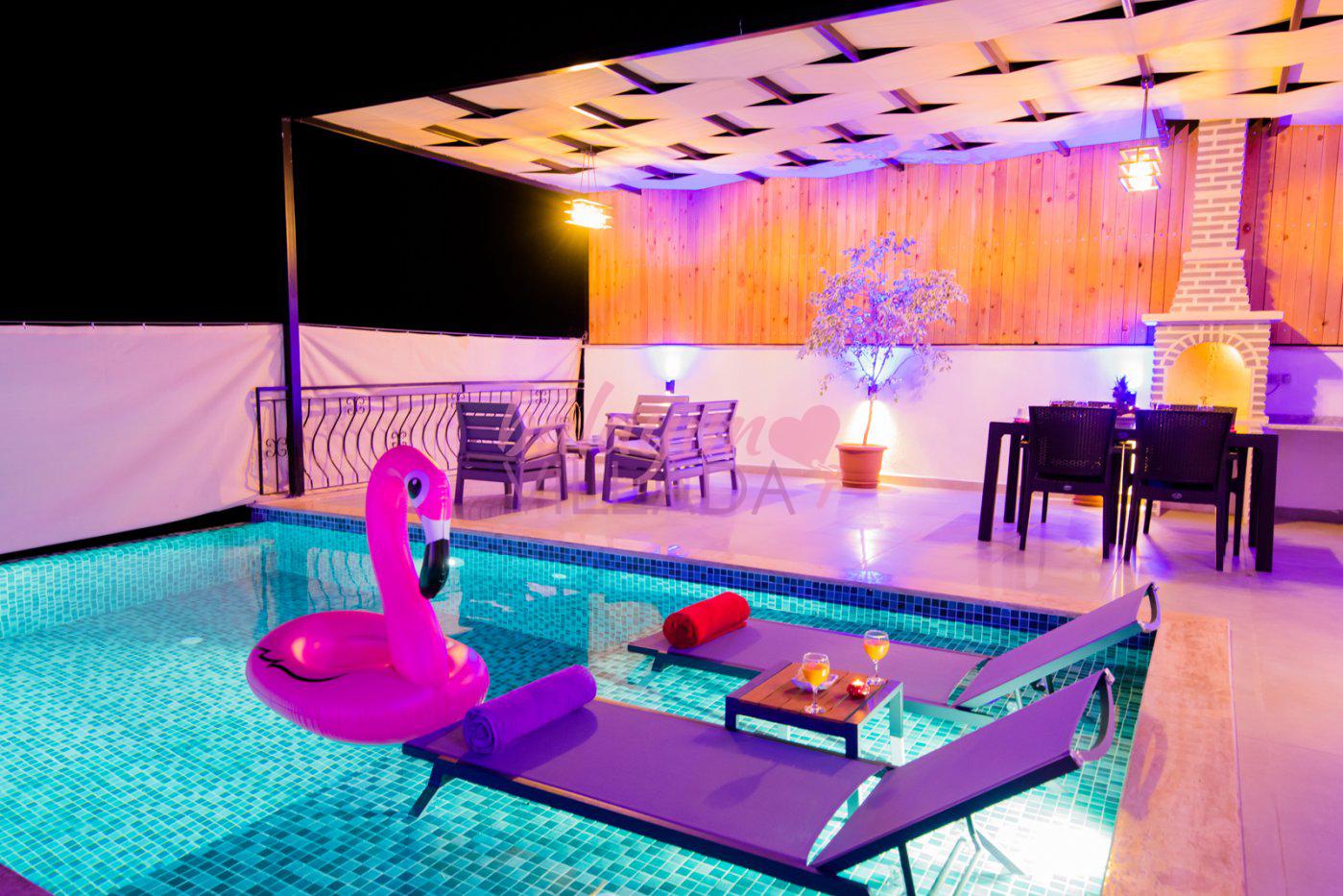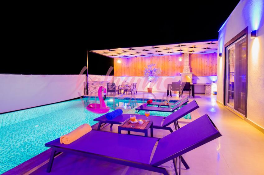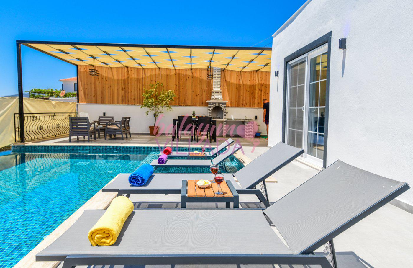 Villa Gıbrıs, Kalkan Ulugöl Mevkii'nde bulunan balayı için uygun olan merkeze ve denize yakın villamızdır. Villamız, içerisinde çiftlerimize oldukça hitap edecek jakuzi ve salıncak bulunmaktadır. Muhafazakar villamızın bahçe alanı dışarıdan görünmeyecek şekilde tasarlanmış olduğundan çiftlerimiz havuzu gönül rahatlığıyla kullanabilirsiniz.