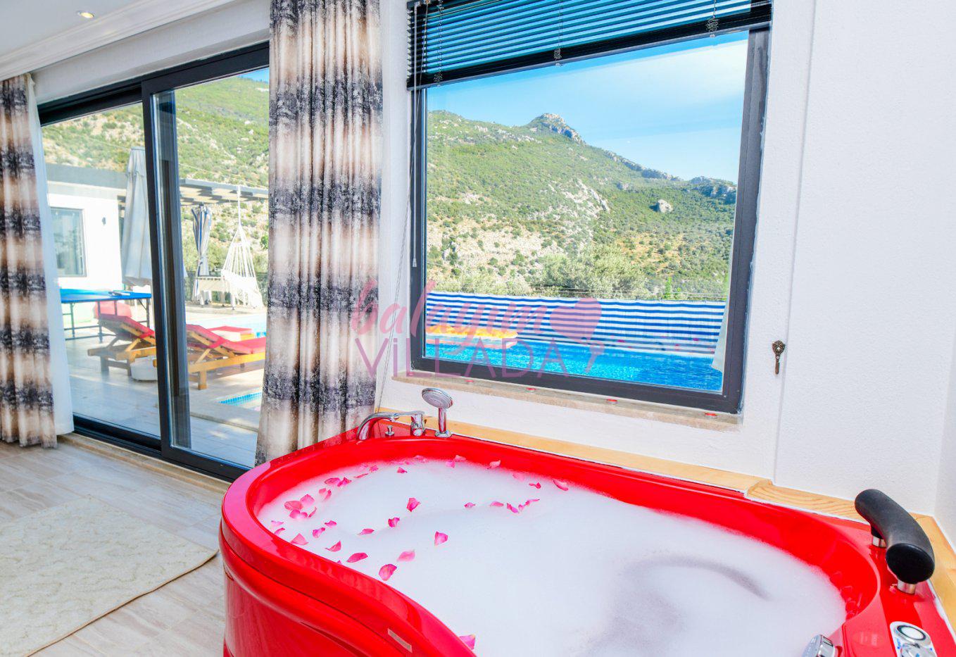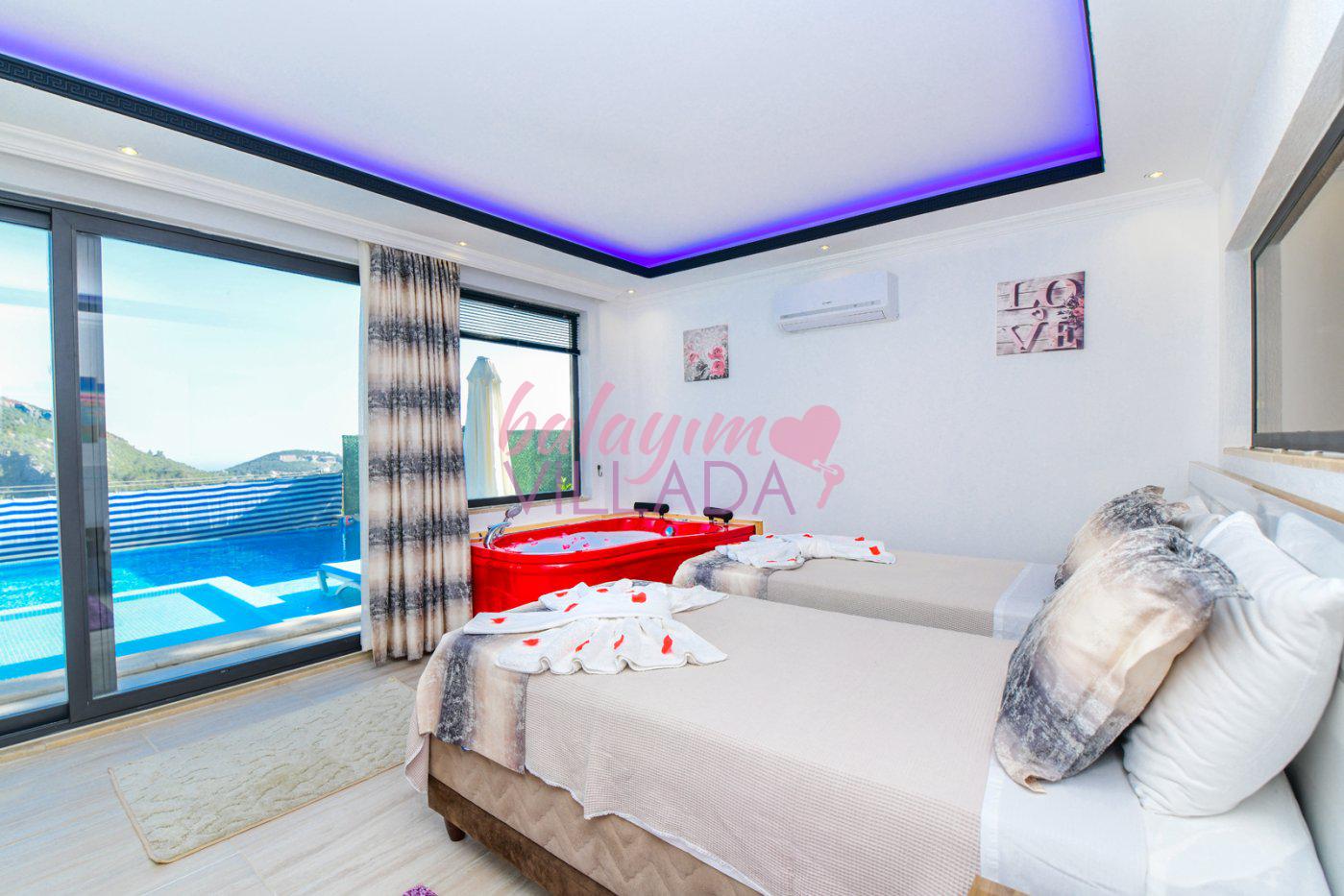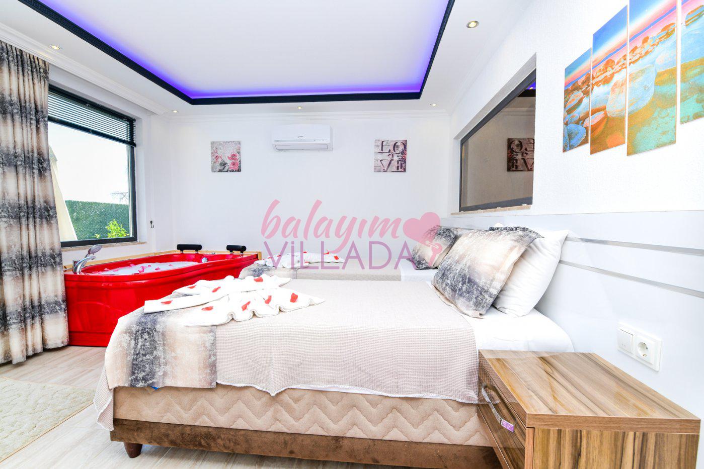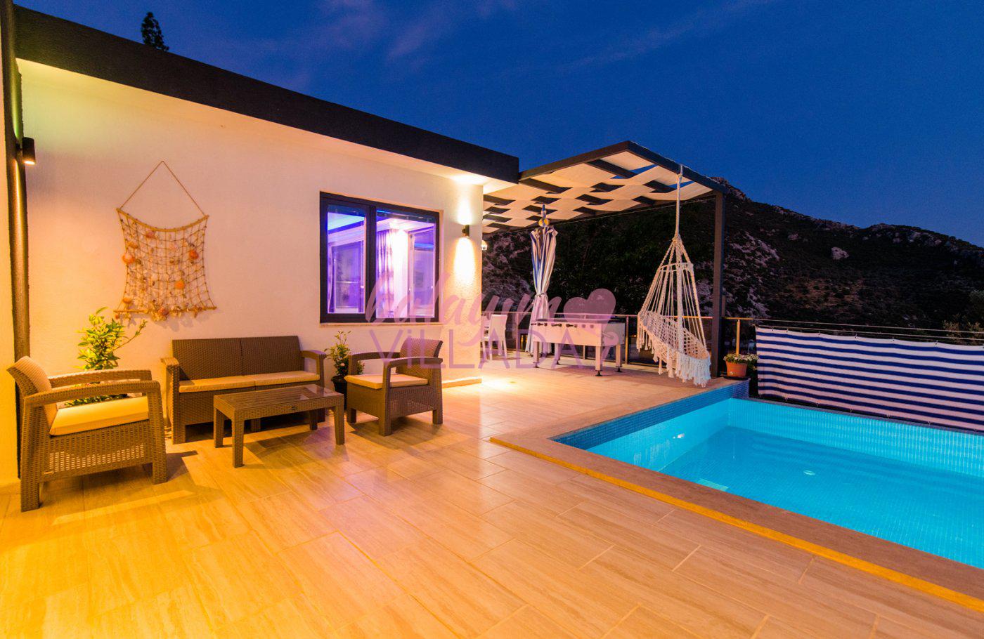 Kalkan İslamlar Köyü’nde bulunan Villa Gülay içerisinde 1 salon, 1 açık plan mutfak, 2 yatak odası, 2 banyo bulunmaktadır. Ayrıca bir yatak odasında jakuzi bulunmaktadır. Yeşillikler içerisinde bulunan villamızda şehir hayatının gürültülü atmosferinden biraz uzaklaşıp tatil yapmak isteyen balayı çiftlerimiz için harika bir seçenektir.