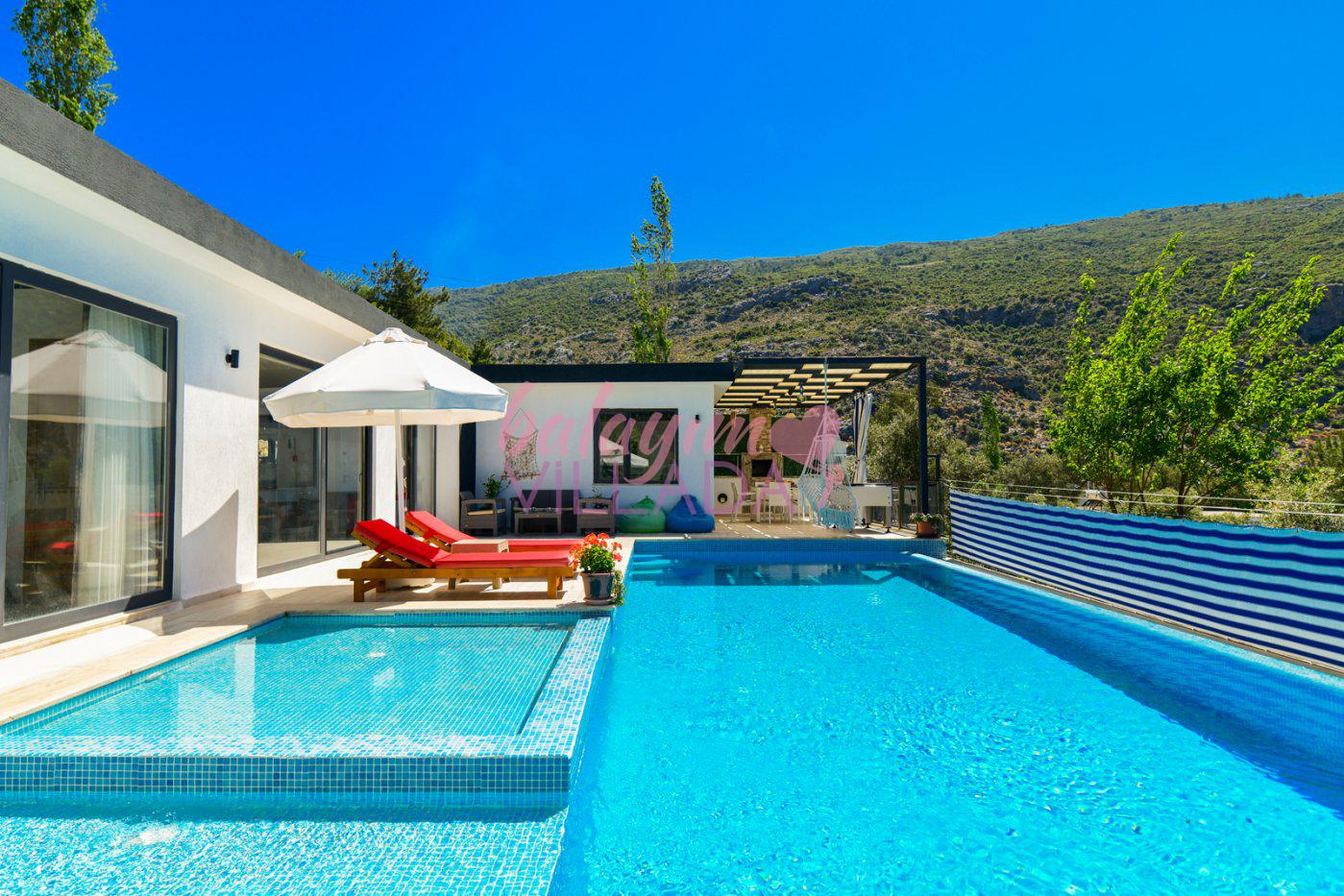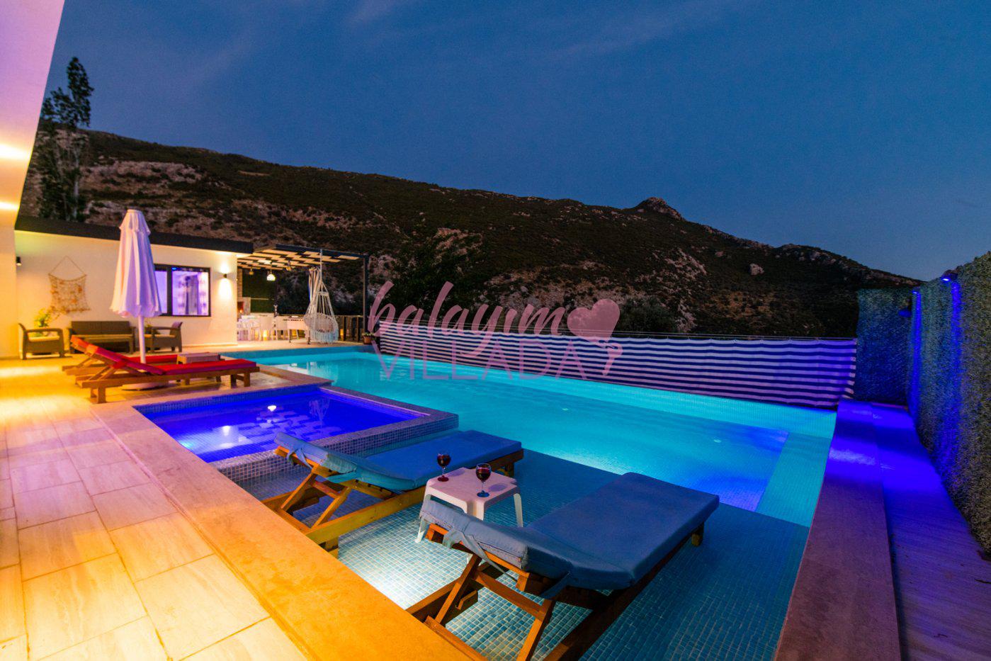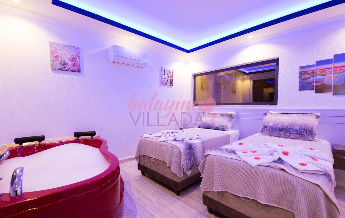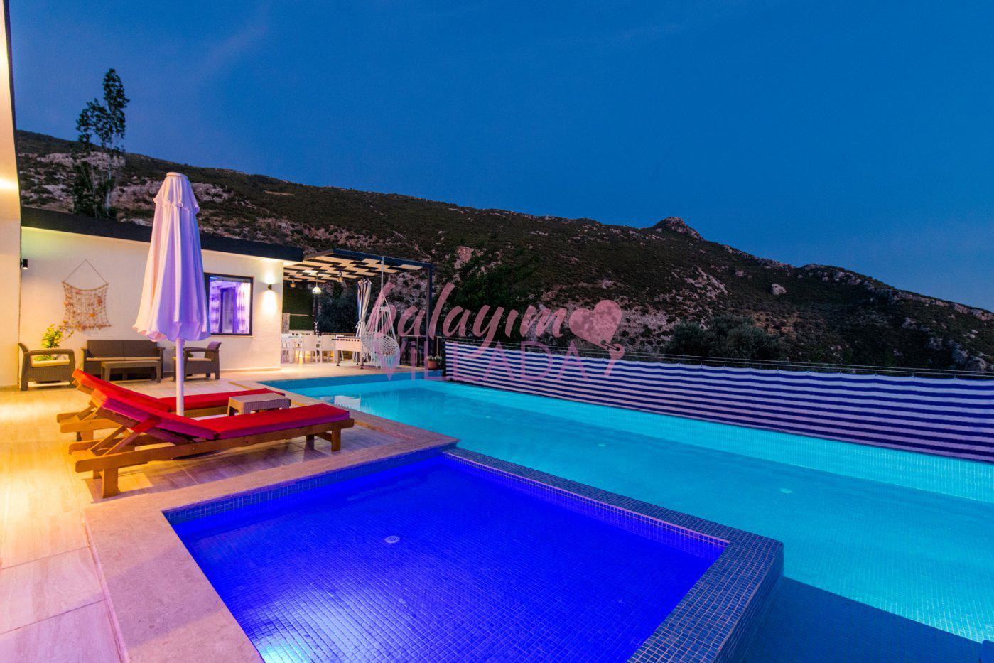Kalkan İslamlar Köyü’nde bulunan Villa Gülay içerisinde 1 salon, 1 açık plan mutfak, 2 yatak odası, 2 banyo bulunmaktadır. Ayrıca bir yatak odasında jakuzi bulunmaktadır. Yeşillikler içerisinde bulunan villamızda şehir hayatının gürültülü atmosferinden biraz uzaklaşıp tatil yapmak isteyen balayı çiftlerimiz için harika bir seçenektir.