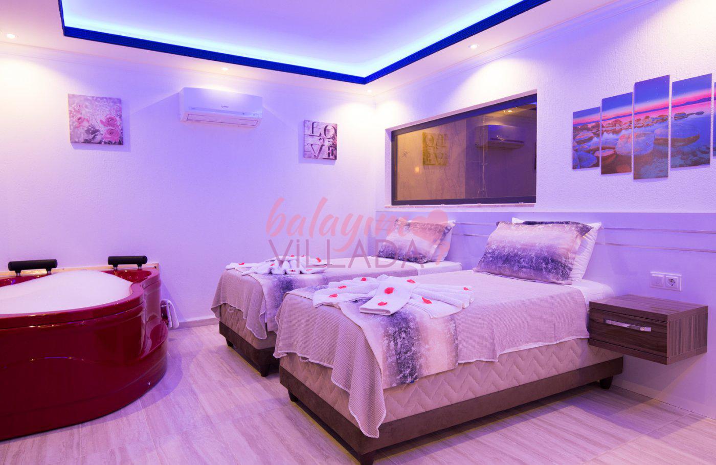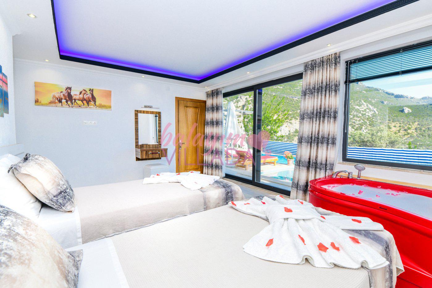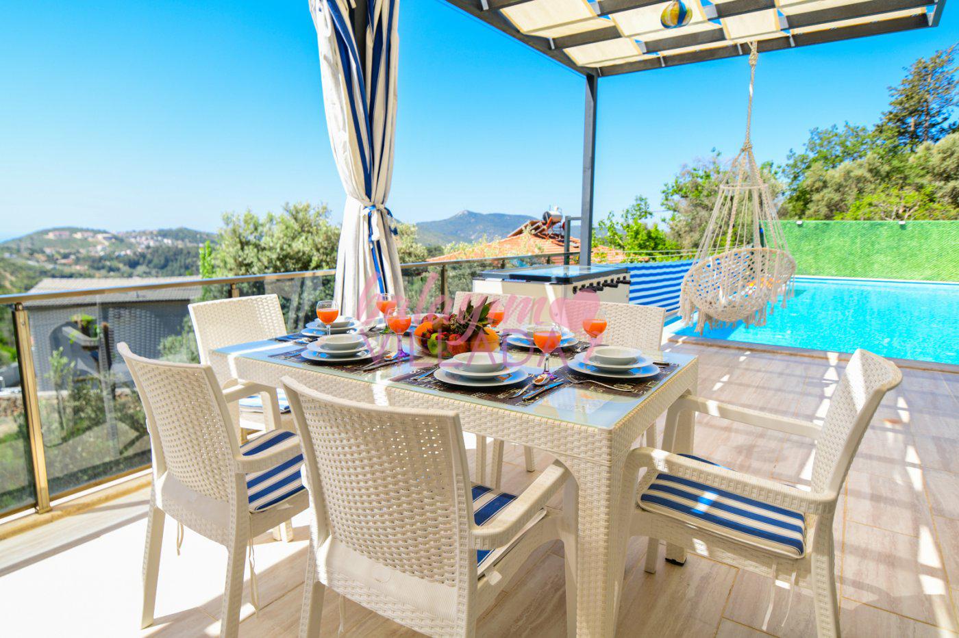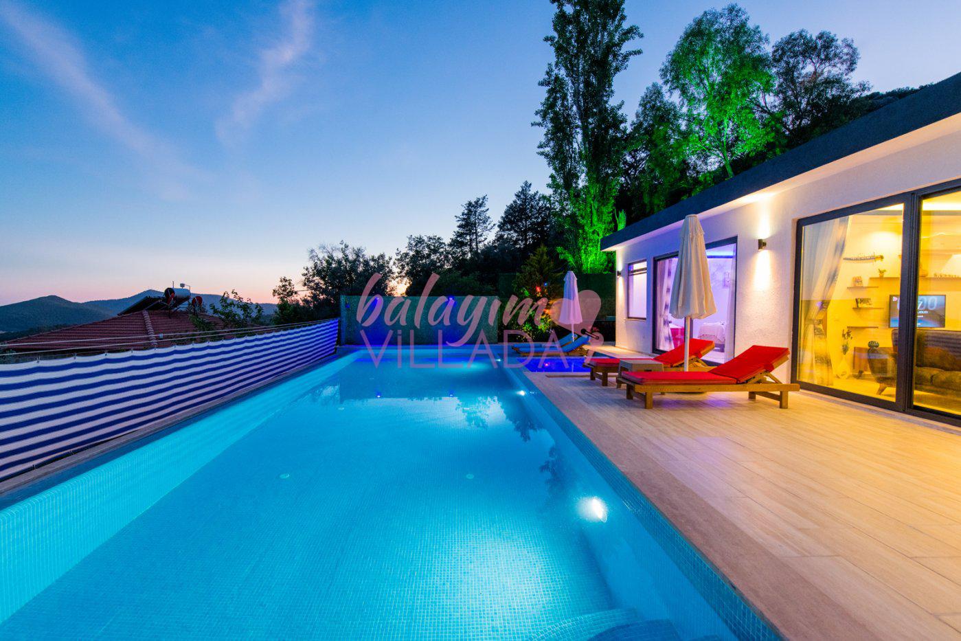 Kalkan İslamlar Köyü’nde bulunan Villa Gülay içerisinde 1 salon, 1 açık plan mutfak, 2 yatak odası, 2 banyo bulunmaktadır. Ayrıca bir yatak odasında jakuzi bulunmaktadır. Yeşillikler içerisinde bulunan villamızda şehir hayatının gürültülü atmosferinden biraz uzaklaşıp tatil yapmak isteyen balayı çiftlerimiz için harika bir seçenektir.