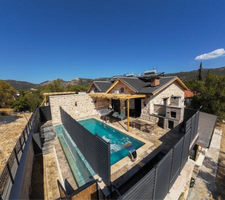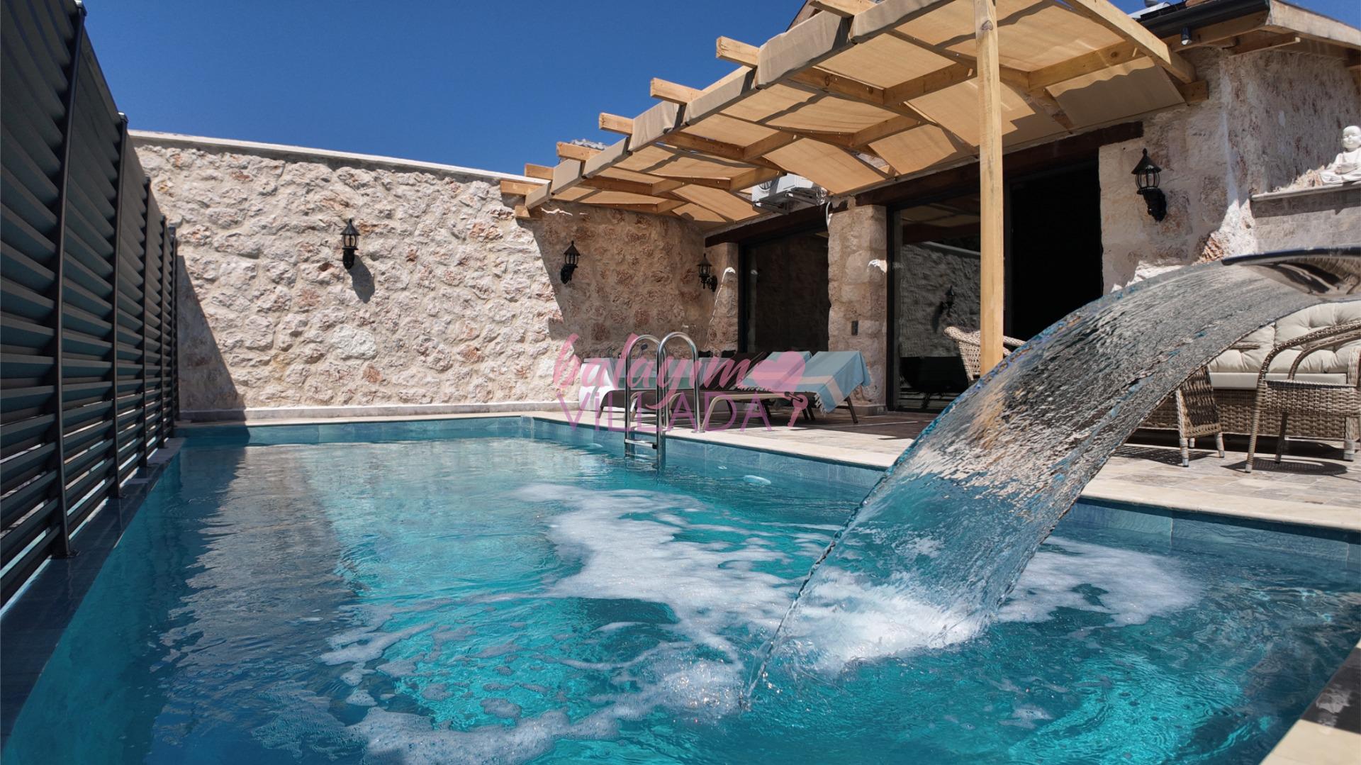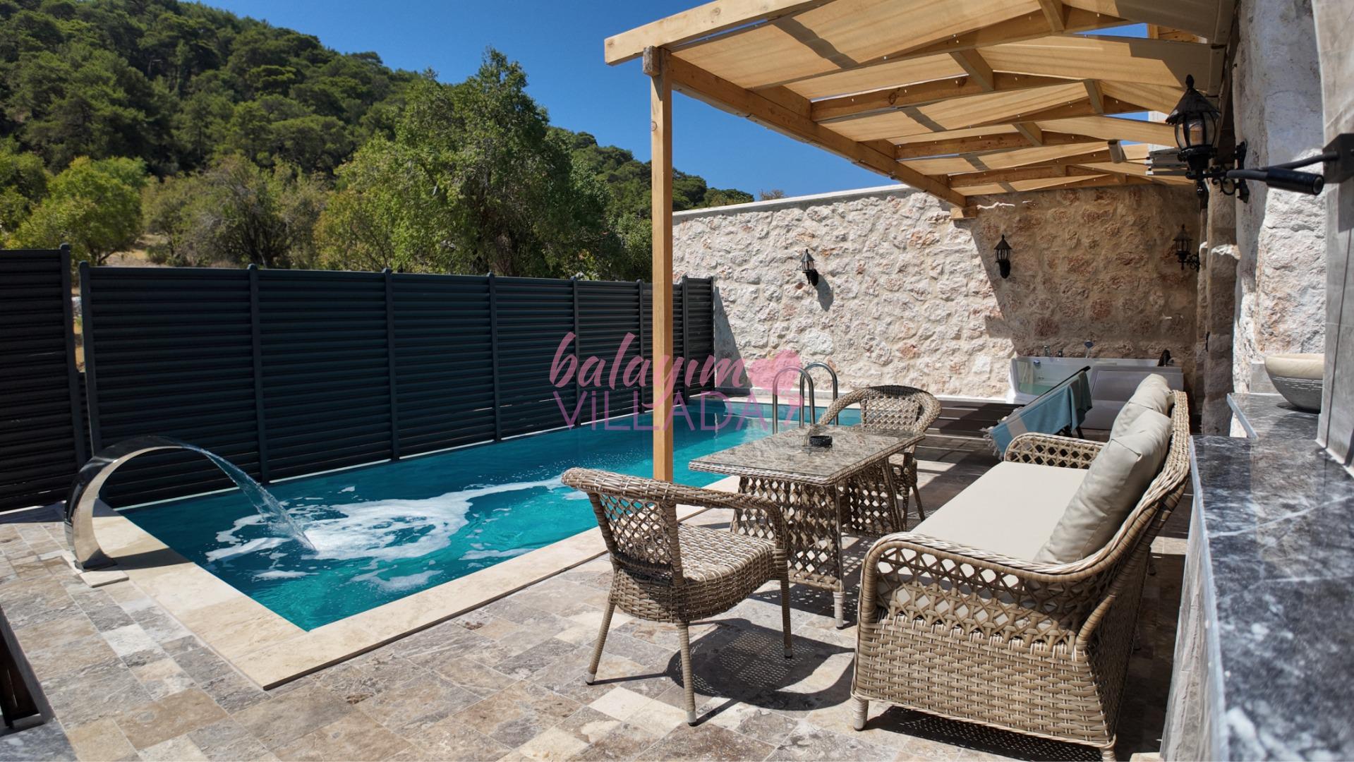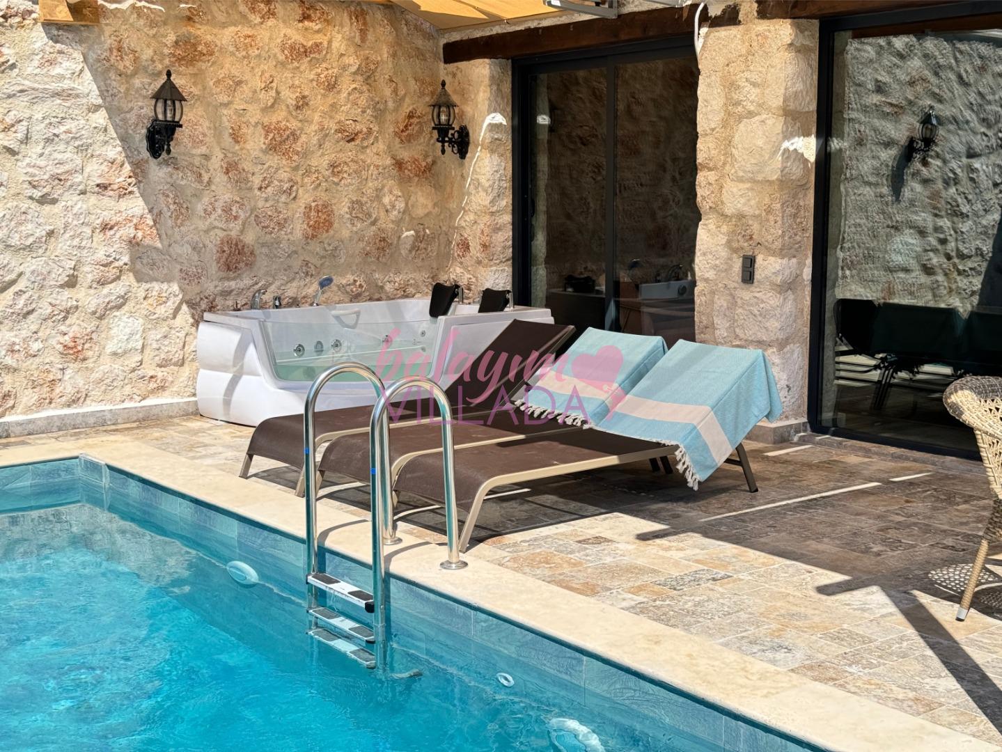 Villa Gülenden, Kalkan Sarıbelen Köyü’nde muhteşem bir doğa içinde bulunan muhafazakar jakuzili balayı villamızdır. Balayı çiftleri ya da romantik bir tatile çıkmak isteyen çiftlerimiz tarafından oldukça sık tercih edilen villamız, taş mimariye sahiptir. Villamız ahşap detaylarla bezenerek doğal ve keyifli bir yaşam alanı sunmaktadır. Özel korunaklı havuzu, havuz terasındaki keyifli jakuzisi ve oturma grubu ile tatil keyfinizi tamamlar. Şık yatak odası dekorasyonu ile villamızda keyifli zaman geçirebilirsiniz. Unutulmaz ve romantik bir tatil için Villa Gülenden harika bir seçenek.