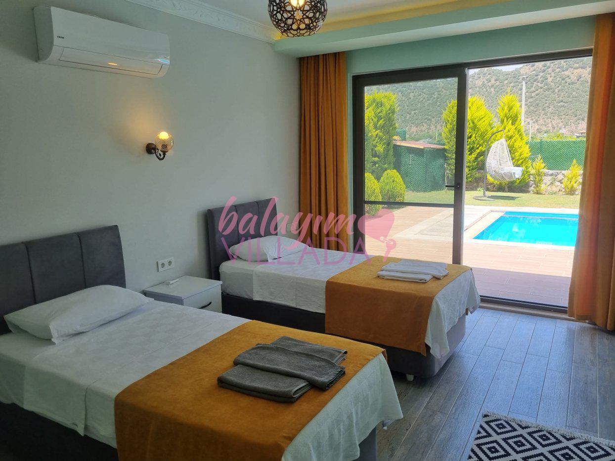 Villa Hayat 2, Fethiye'nin tarihi yapısı ile öne çıkan bölgesi olarak bilinen Kayaköy mevkiinde bulunan muhafazakar bahçeli balayı villasıdır. Villamızın yatak odasında çiftlerimize mükemmel bir tatil sunmak için jakuzi de bulunmaktadır. Villamızın havuz terası dışarıdan görünmemektedir ve gözlerden uzak tatil yapmak isteyen çiftler için oldukça uygun bir seçenektir.