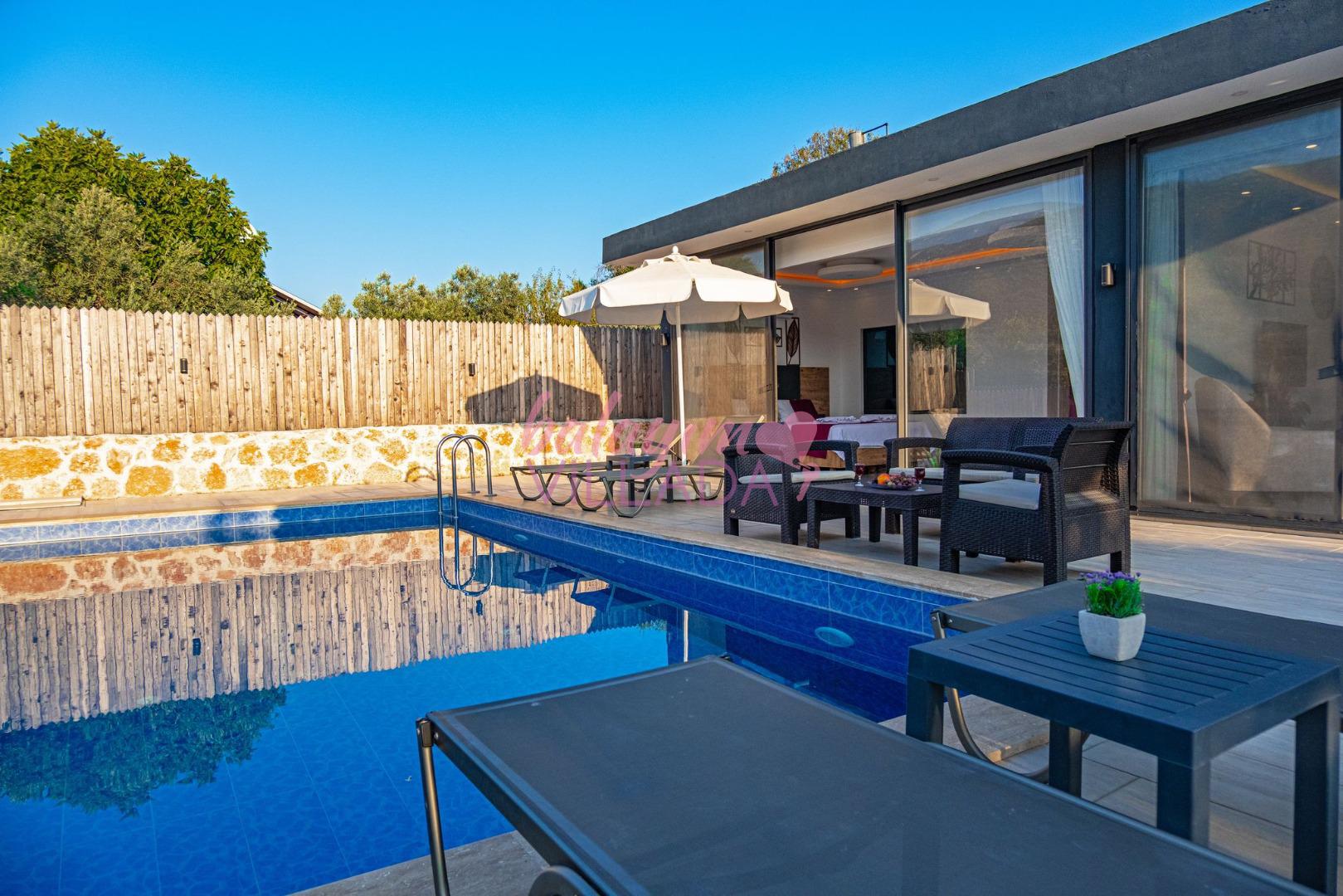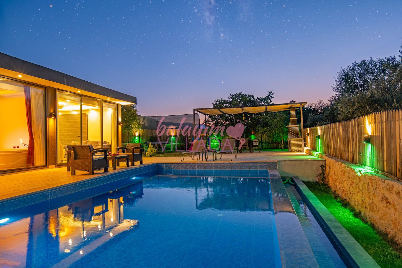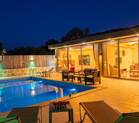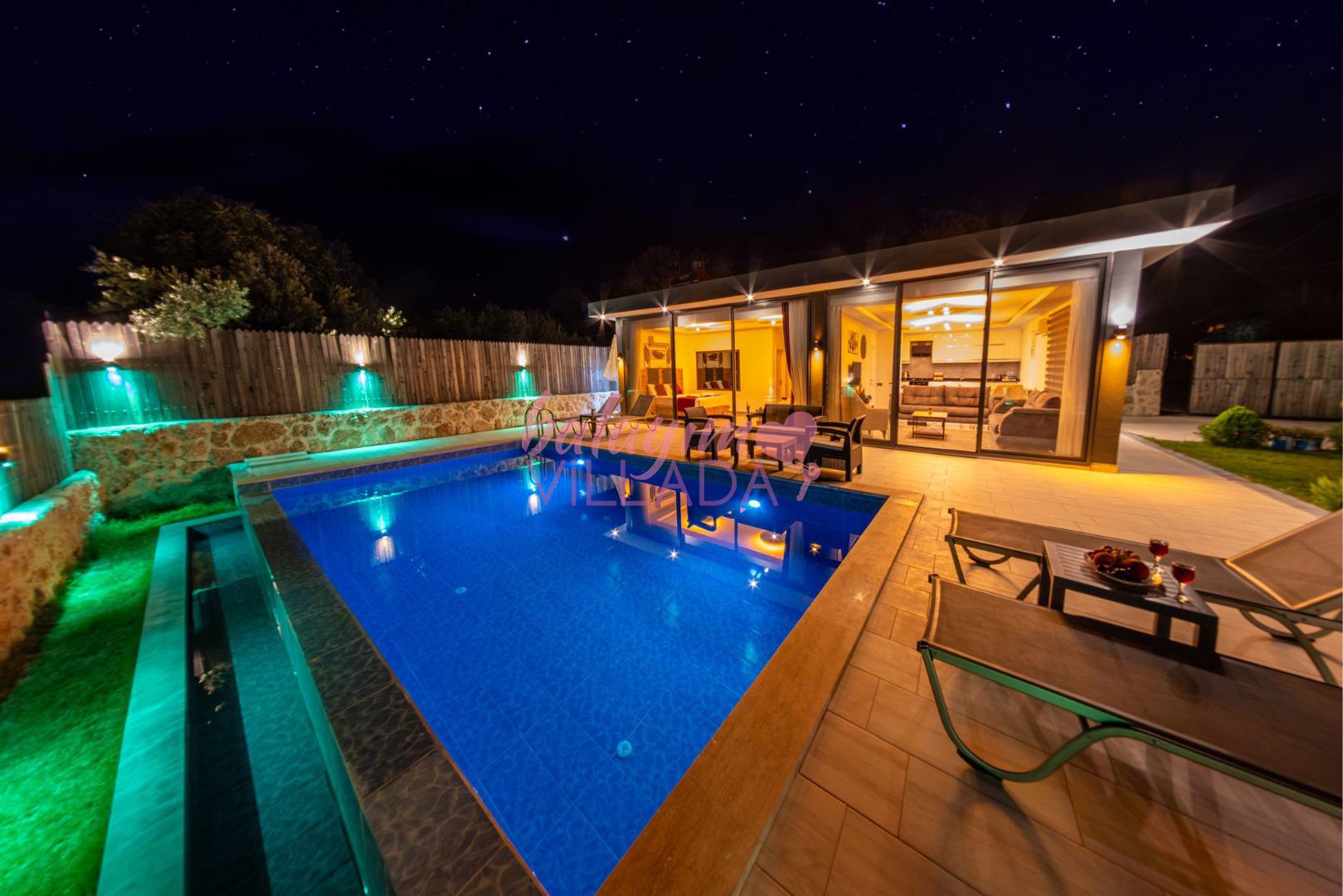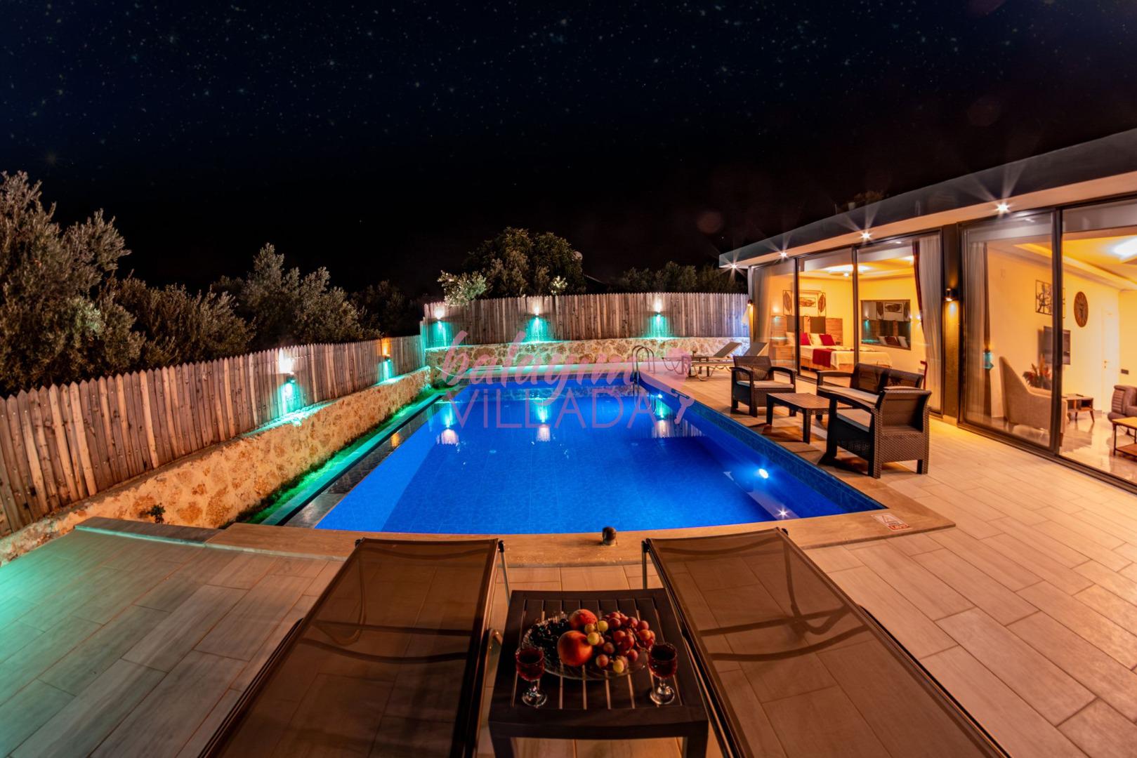 Villa Hisar Sarıbelen, Kalkan Sarıbelen bölgesinde doğa manzarasına sahip jakuzili ve muhafazakar balayı villasıdır. Balayı çiftleriimiz için oldukça kullanışlı olan villamızın geniş havuz terasında ve geniş bahçe alanında sessiz, sakin ve rahat bir tatil geçirebilirsiniz. Villamızın ebeveyn yatak odasında 2 kişilik geniş bir jakuzisi vardır. Tüm yılın yorgunluğunu burada atabilirsiniz. Villamız şık ve modern bir olarak dizayn edilmiştir.