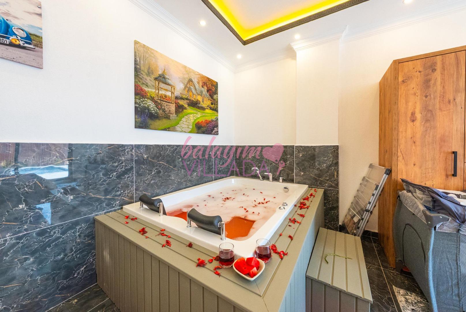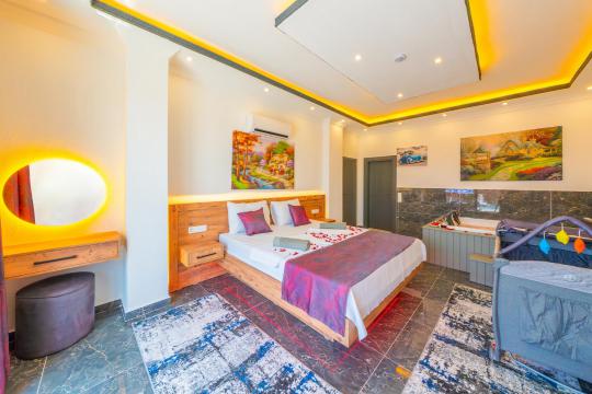 Romantik Bir Spa Deneyimi: Baş başa geçireceğiniz en özel anlar için yatak odasında konumlanan lüks jakuzi, doğanın huzur veren sesleri eşliğinde size tam bir arınma vaat eder.