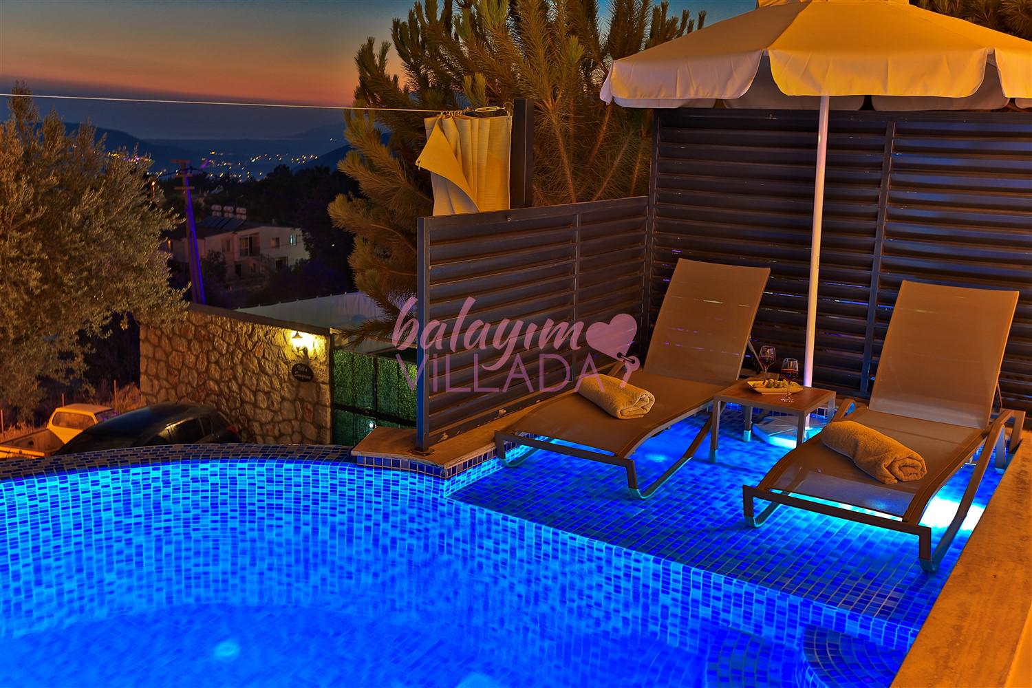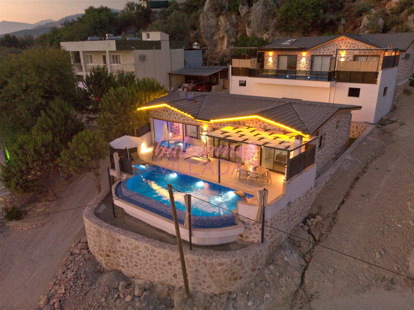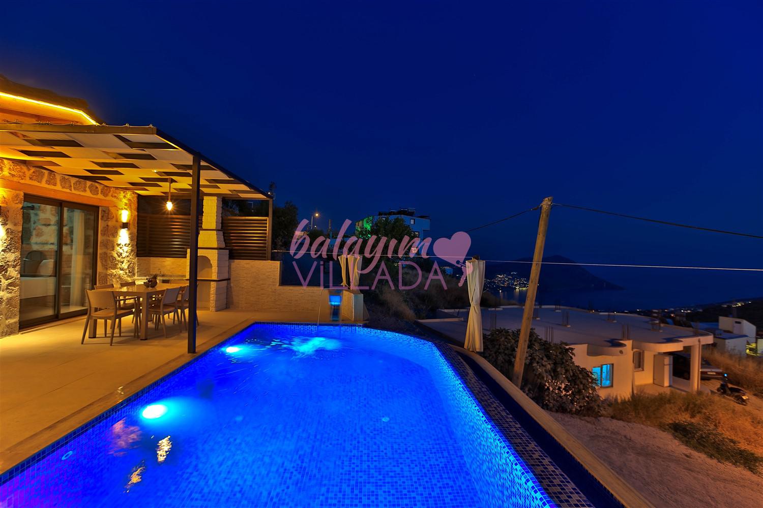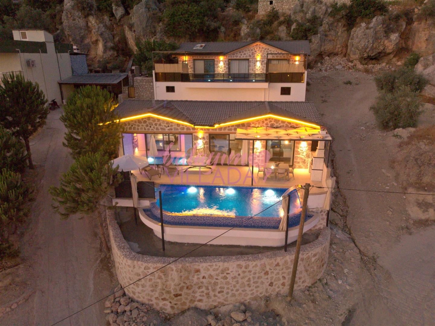 Villa Kızılkaya, Antalya'nın Kaş ilçesi Kalkan bölgesinin Akbel Mahallesinde yer alan, 2 yatak odası ile 4 kişi kapasiteli bir tatil villasıdır. Özel havuzlu, havuz alanı korunaklı ve muhteşem deniz manzaralı olan villamız, çekirdek aileler ve balayı çiftleri için oldukça uygun bir seçenektir. Villanın içinde, jakuzi özelliği de bulunan kapalı ısıtmalı havuzun yanı sıra bir Türk Hamamı da mevcuttur.