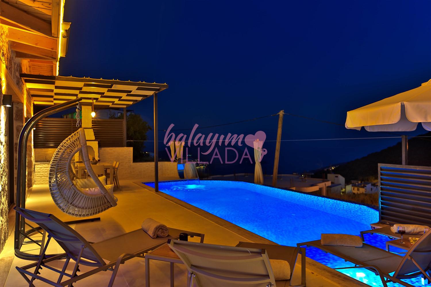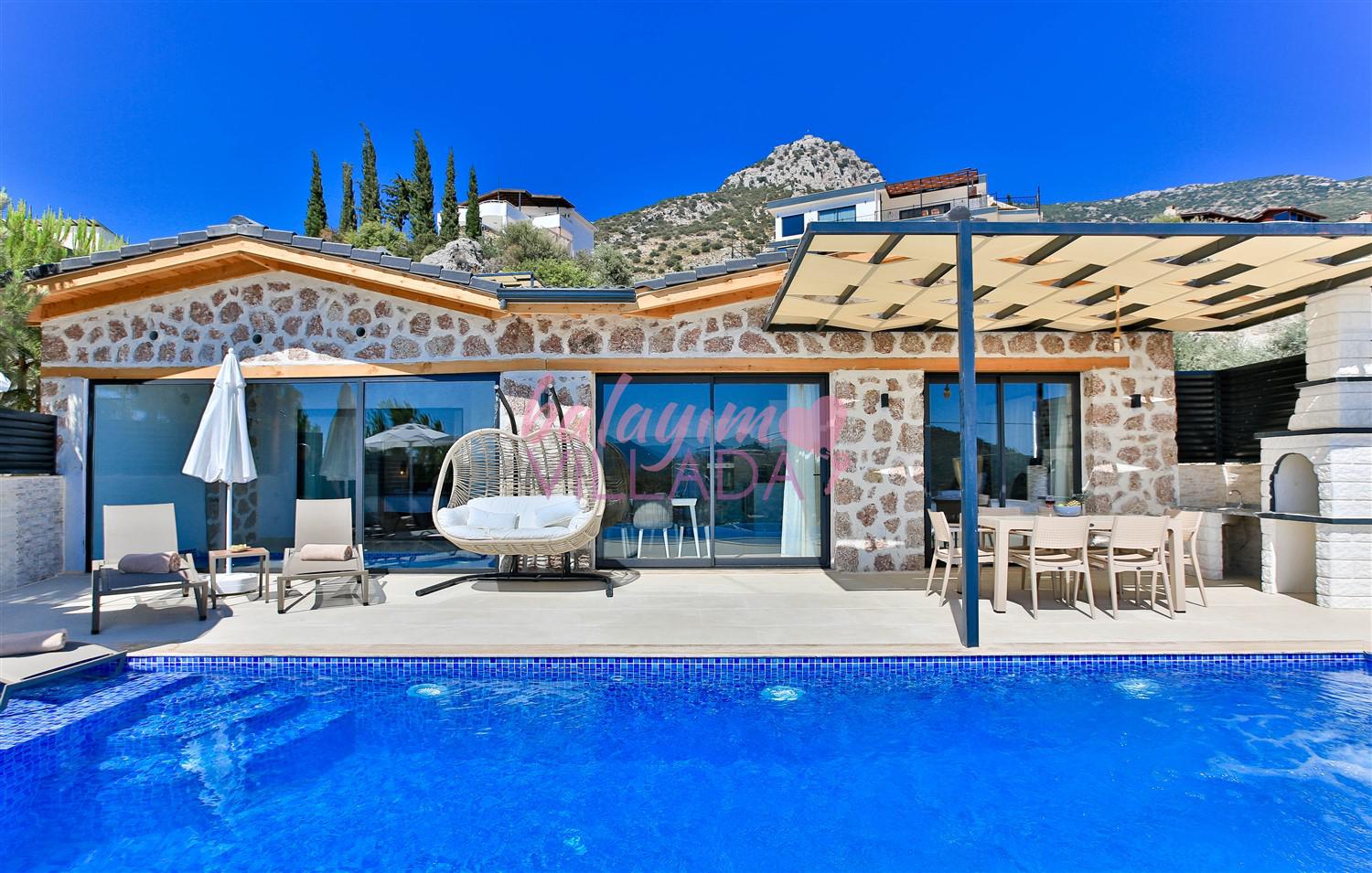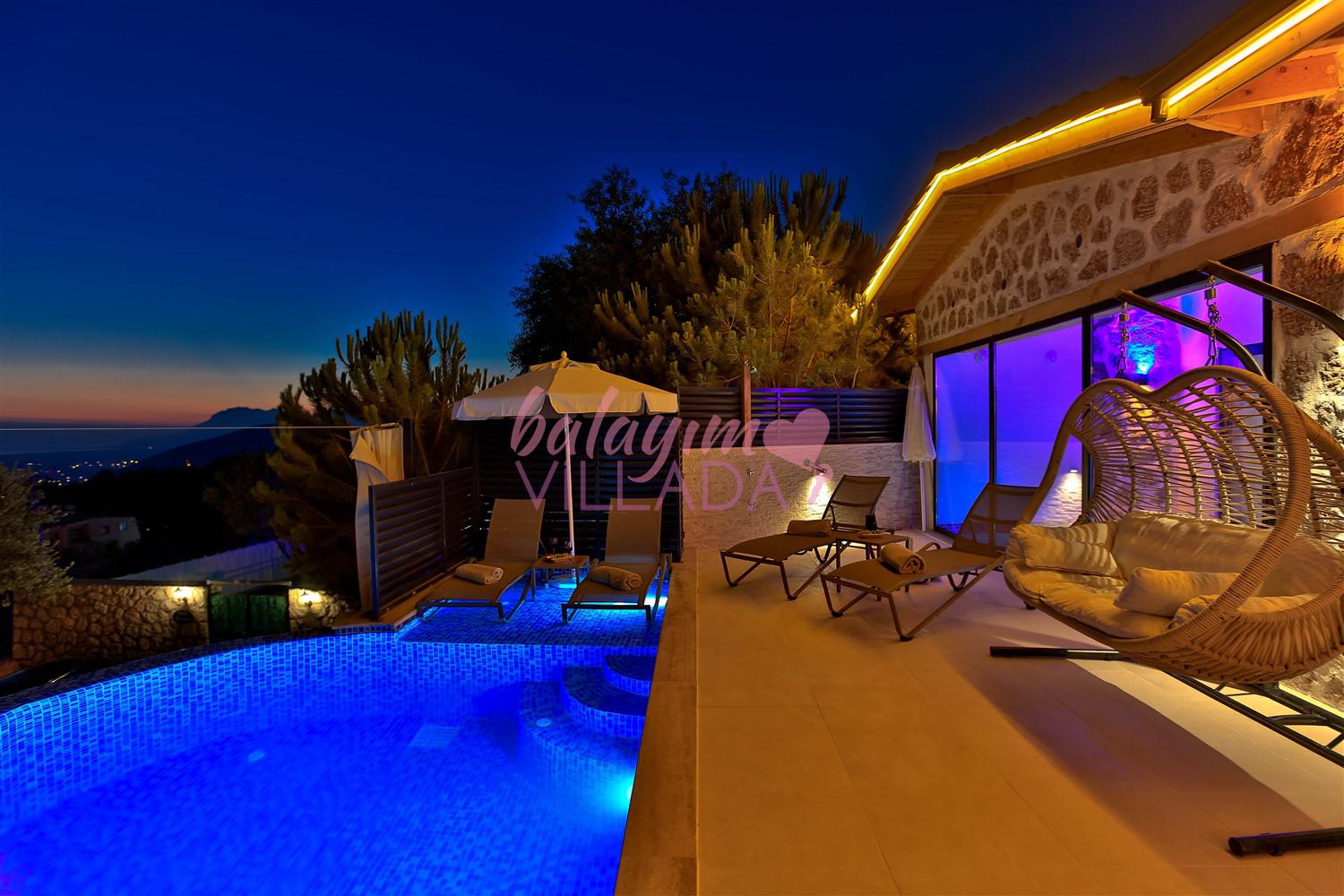 Villa Kızılkaya, Antalya'nın Kaş ilçesi Kalkan bölgesinin Akbel Mahallesinde yer alan, 2 yatak odası ile 4 kişi kapasiteli bir tatil villasıdır. Özel havuzlu, havuz alanı korunaklı ve muhteşem deniz manzaralı olan villamız, çekirdek aileler ve balayı çiftleri için oldukça uygun bir seçenektir. Villanın içinde, jakuzi özelliği de bulunan kapalı ısıtmalı havuzun yanı sıra bir Türk Hamamı da mevcuttur.