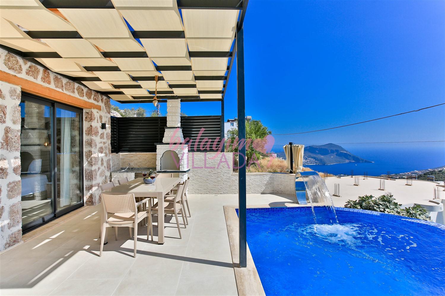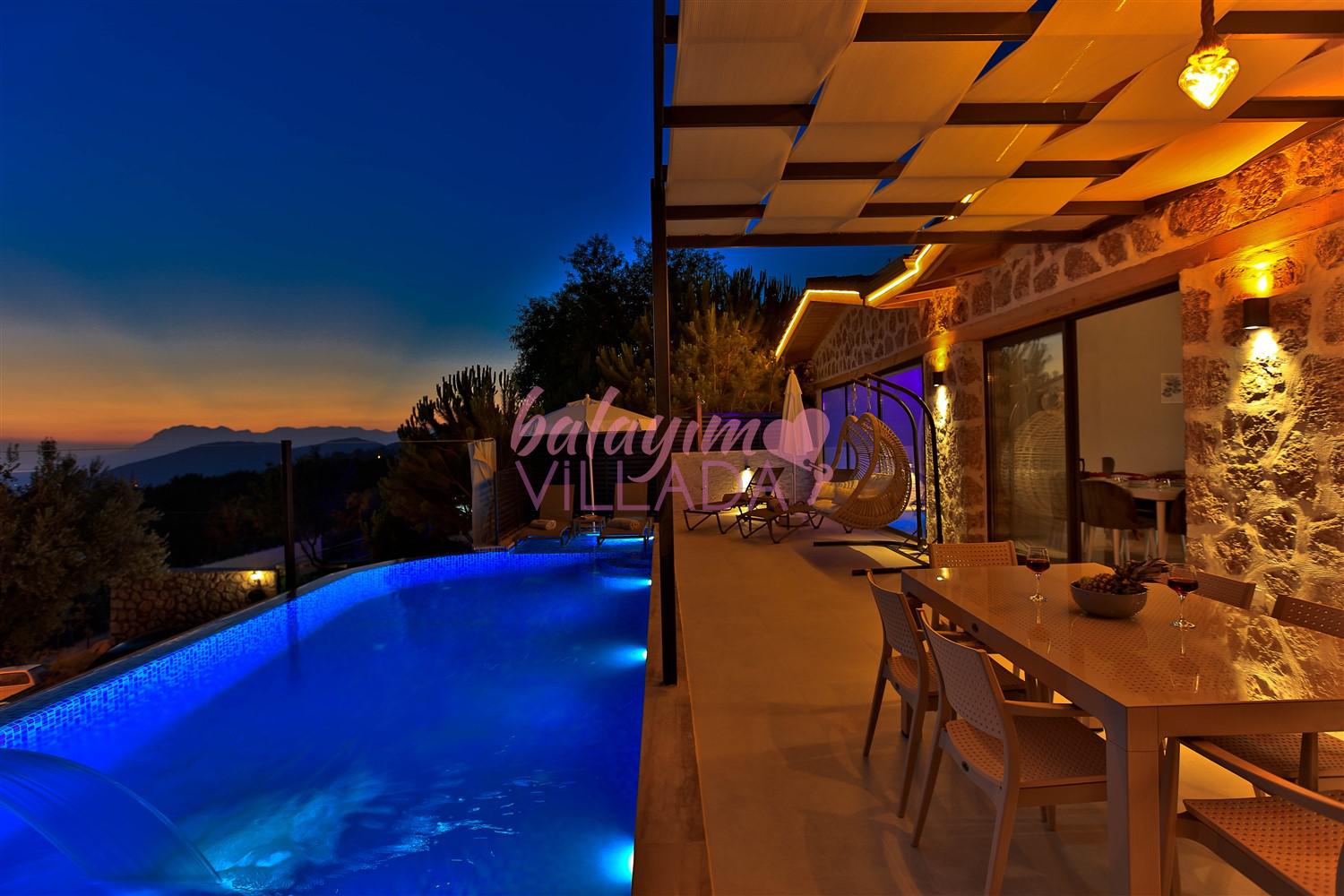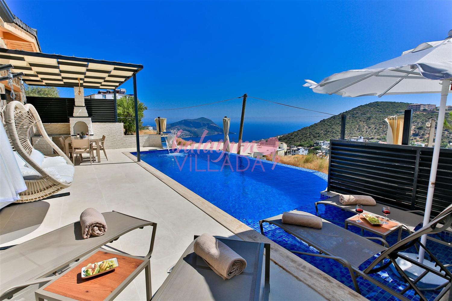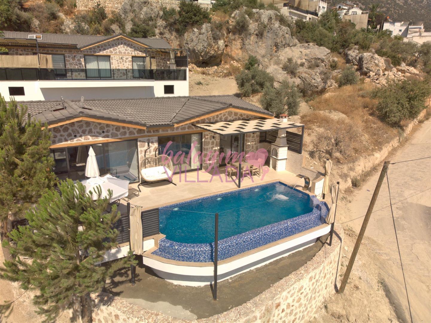 Villa Kızılkaya, Antalya'nın Kaş ilçesi Kalkan bölgesinin Akbel Mahallesinde yer alan, 2 yatak odası ile 4 kişi kapasiteli bir tatil villasıdır. Özel havuzlu, havuz alanı korunaklı ve muhteşem deniz manzaralı olan villamız, çekirdek aileler ve balayı çiftleri için oldukça uygun bir seçenektir. Villanın içinde, jakuzi özelliği de bulunan kapalı ısıtmalı havuzun yanı sıra bir Türk Hamamı da mevcuttur.