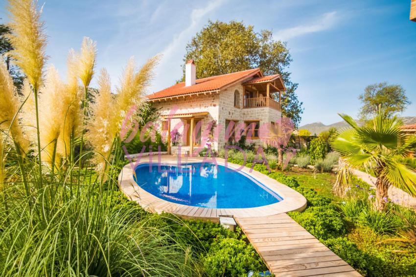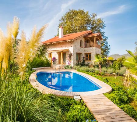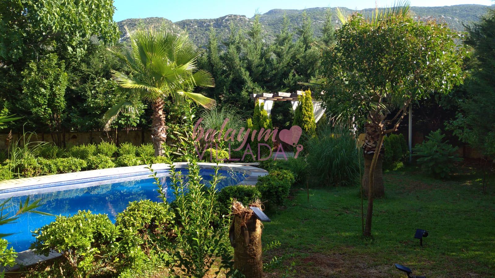 Villa Kumru, Kalkan Sarıbelen Köyü’nde muhteşem bir doğa içinde, balayı çiftleri ya da romantik bir tatile çıkmak isteyen çiftler için özel olarak hazırlanmıştır. Geniş bir bahçesi ve ferah kullanım alanları bulunan villamızın her detayı özenle düşünülerek hazırlanmıştır. Butik bir tasarıma sahip olan villamızın her köşesi misafirlerini hayran bırakacak niteliktedir. Taş mimariye sahip villamız ahşap detaylarla bezenerek doğal ve keyifli bir yaşam alanı sunmaktadır. Özel korunaklı havuzu, bahçesindeki keyifli salıncağı ve geniş sediri tatil keyfinizi tamamlar. Şık yatak odası dekorasyonu ve banyosunda bulunan estetik küvet villamıza özgü benzersiz detaylardan bazılarıdır. Unutulmaz ve romantik bir tatil için Villa Kumru harika bir seçenek.