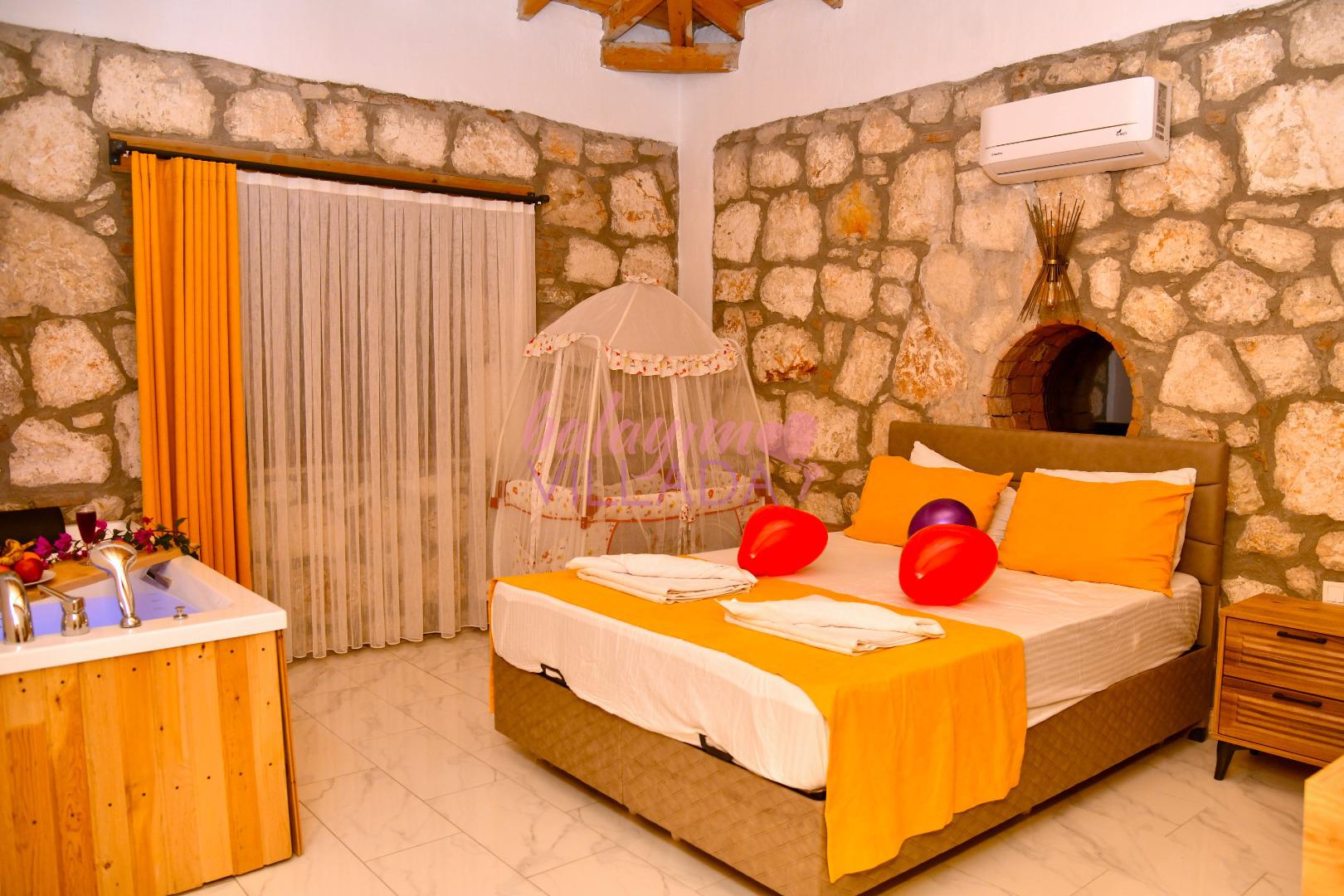 Dinlendirici Jakuzi Keyfi: Ebeveyn yatak odanızda yer alan jakuzi, tatilinize keyifli bir dokunuş katmak için özel olarak hazırlandı.