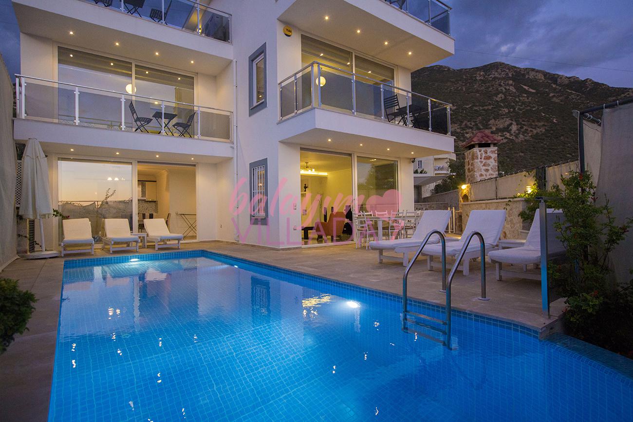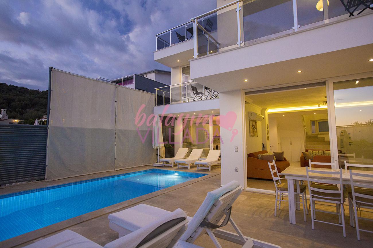 Kalkan merkezine yakın bir mesafede olan ve Kalkan’ın eşsiz manzarasını gören Ortaalan mevkisinde bulunan kiralık balayı villamız Mana’nın bütün yatak odalarından bu manzara görülmektedir. Modern iç ve dış mimarisi ile tatiliniz için her detayın düşünüldüğü villamız tam bir balayı villasıdır. Sakin bir konumda bulunan Villa Mana ile yılın bütün yorgunluğunu ve stresini atabilirsiniz.