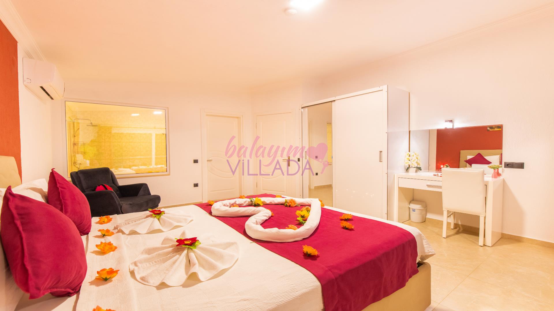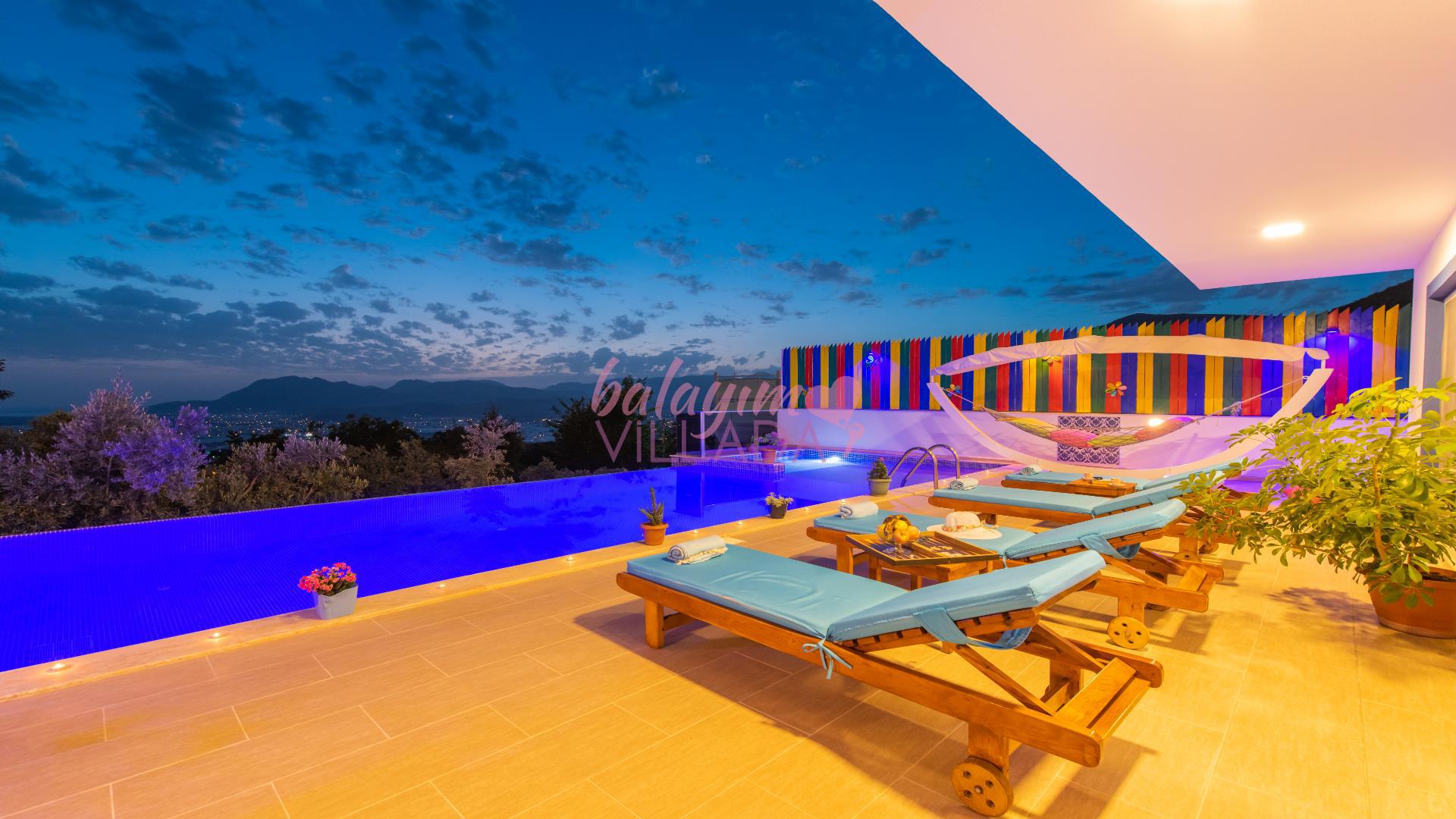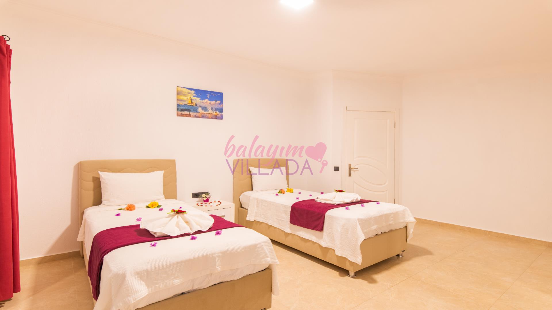Villa Manolya 1, Kalkan Üzümlü bölgesinden yer alan korunaklı, 2 yatak odalı villanın en alt katında ise hobi odası yer almaktadır. Oldukça geniş, müstakil yüzme havuzunun yan tarafında çocuk havuzu ve sığ havuz bulunmaktadır. Villa Manolya 1'in özel yüzme havuzu dışarıdan gözükmemektedir yani korunaklıdır. Bu özelliği ile doğa içerisinde muhteşem bir balayı tatili fırsatı sunmaktadır. Üzümlü bölgesinin yüksek konumda bulunmasıyla temiz havanın ve eşsiz doğa manzarasının tadını çıkarabileceksiniz, kuşların cıvıltısını ve doğanın o eşsiz sesini dinleyebilme fırsatı bulabileceksiniz. Şehrin gürültüsünden ve kalabalığından uzak harika bir tatil sizleri bekliyor Villamızda iki adet yatak odası ve iki adet banyo bulunmaktadır. Birinci yatak odası içerisinde iki adet tek kişilik yatakbanyo ve klima bulunmaktadır; İkinci yatak odası içerisinde bir adet çift kişilik yatak, banyo, jakuzi ve klima bulunmaktadır; Salon içerisinde mutfak, televizyon, oturma grubu, banyo ve klima mevcuttur.