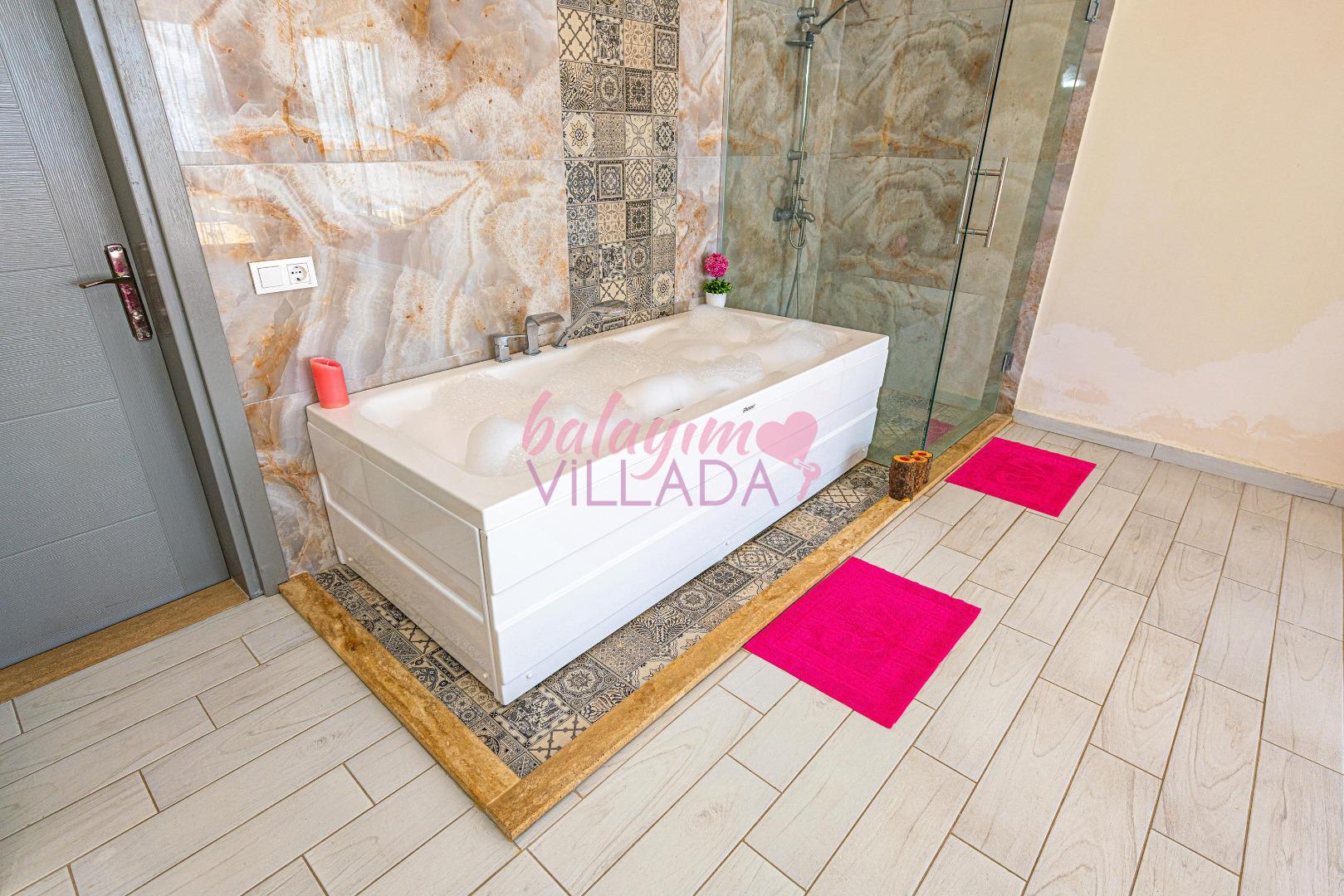Romantik Jakuzi Deneyimi: Yatak odanızda yer alan jakuzi, tatilinize romantizm ve dinginlik katan en özel detaylardan biridir.