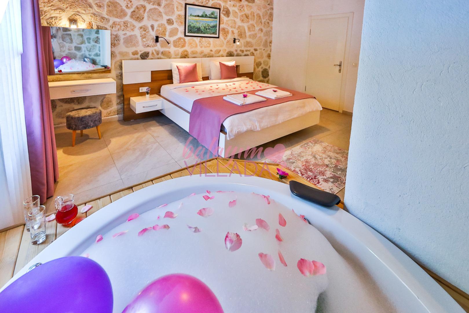 Keyif Dolu Detaylar: Şık bir tasarıma sahip yatak odanızdaki jakuzi, yıldızların altında geçen bir günün ardından en sevdiğiniz dinlenme köşesi olacak.